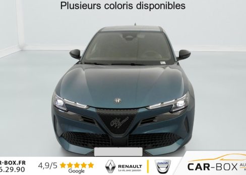 Pare-brise chauffant (uniquement la zone de reposdes essuie-glaces) : option incluse (valeur : 150 Eur TTC), Accoudoir AV, Rétroviseurs extérieurs à réglages électriques, Banquette AR rabattable 60/40, Allumage automatique des feux et des essuie-glaces, Direction assistée, Coques de rétroviseurs Noir brillant, Apple CarPlay / Android Auto sans fil, Détection de fatigue du conducteur, Système de démarrage sans clé, Prise USB AV type A + C (Charge et données), Radio DAB, Assistant de maintien dans la voie, Alerte de rappel de présence sur les sièges AR, Frein de parking électrique, Feux AR Full-Led, Détecteur d'angles morts, Peinture métallisée Gris Arese ou Bleu Navigli : option incluse (valeur : 980 Eur TTC), Jantes alliage 18" Fori avec pneumatiques été 215/55 R18 99V : option incluse (valeur : 880 Eur TTC), Vitres AV/AR électriques, Combiné d'instruments digital 10,25" Cannochiale, Sélecteur de mode de conduite DNA (3 modes), 6 airbags (Frontaux, latéreux et rideaux), Climatisation automatique mono-zone, Scudetto Leggenda, Body kit noir brillant, Volant en cuir multifonction, Pédalier et seuils de porte en aluminium, Eclairage d'ambiance (Cannocchiale, aérateurs latéraux et tunnel centrale), Sellerie Spiga, Freinage d'urgence autonome urbain (détection des usagers vulnérables), Régulateur de vitesse adaptatif intelligent avec lecture des panneaux, Pack Techno : Rétroviseur intérieur électro-chromatique Chargeur de téléphone à induction , Assistance de conduite semi-autonome (autoroute et trafic dense) Projecteurs adaptatifs Full-Led Matrix Système de navigation, réplicable sur le combiné d'instrument digital Système d'ouverture sans clé Rétroviseurs extérieurs rabattables électriquement avec détecteur d'angles morts Système audio à 6 HP Hayon mains libres Prise USB AR type 1 x C (Charge) Radars de stationnement 360° (AV/AR et latéraux) Caméra de recul avec lignes dynamiques, Rétroviseurs extérieurs chauffants et rabattables avec éclairage de courtoisie, Sièges chauffants (réglages électriques et fonction massage côté conducteur), ABS, ESP, TCS, Boîte automatique sequentiel 6 rapports, Detection de perte de pression des pneumatiques, Verrouillage centralisé, Vitres AR surteintées