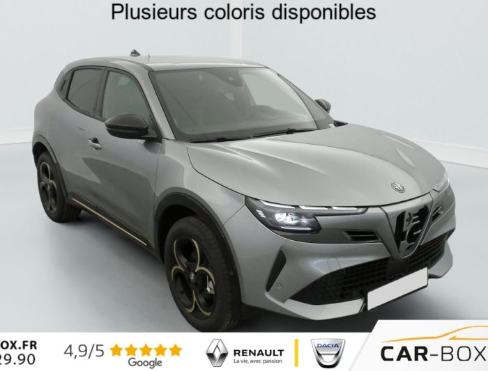 Hors frais de dossier1.2 Ibrida 145 ch eDCT6 Intensa, hybride, gris, 13/02/2026, Prolongation de la garantie constructeur de 24 à 36 Mois : option incluse (valeur : 550 Eur TTC), Accoudoir AV, Rétroviseurs extérieurs à réglages électriques, Banquette AR rabattable 60/40, Allumage automatique des feux et des essuie-glaces, Direction assistée, Coques de rétroviseurs Noir brillant, Apple CarPlay / Android Auto sans fil, Détection de fatigue du conducteur, Système de démarrage sans clé, Prise USB AV type A + C (Charge et données), Radio DAB, Assistant de maintien dans la voie, Alerte de rappel de présence sur les sièges AR, Radar de stationnement AR, Frein de parking électrique, Tapis de sol AV/AR, Feux AR Full-Led, Détecteur d’angles morts, Peinture métallisée Gris Arese : option incluse (valeur : 900 Eur TTC), Vitres AV/AR électriques, Combiné d’instruments digital 10, 25" Cannochiale, Sélecteur de mode de conduite DNA (3 modes), 6 airbags (Frontaux, latéreux et rideaux), Climatisation automatique mono-zone, Plancher de coffre ajustable, Pédalier et seuils de porte en aluminium, Palettes au volant, Insert Alcantara (planche de bord, tunnel central, contre porte), Eclairage d’ambiance (Cannocchiale, aérateurs latéraux et tunnel centrale), Alfa Connect Services, Capteur de pression des pneumatiques TPMS, Freinage d’urgence autonome urbain (détection des usagers vulnérables), Régulateur de vitesse adaptatif intelligent avec lecture des panneaux, Rétroviseurs extérieurs chauffants et rabattables avec éclairage de courtoisie, Sièges chauffants (réglages électriques et fonction massage coté conducteur), Pack Techno Veloce Projecteurs adaptatifs Full-Led Matrix, Assist. conduite semi-autonome, Système de navigation, réplicable sur le Combiné d’instrument digital, Hayon mains-libres, Caméra de recul avec lignes dynamiques, Radars de stationnement 360°, Système d’ouverture sans clé, Chargeur induction pour smartphone, Rétroviseurs intérieur électrochrome, Rétroviseurs extérieurs rabattables électriquement avec détecteur d’angles morts, Prise USB AR type 1 x C (Charge), Système audio à 6 HP : Rétroviseur intérieur électro-chromatique Chargeur de téléphone à induction, Assistance de conduite semi-autonome autoroute et trafic dense Projecteurs adaptatifs Full-Led Matrix Système de navigation, réplicable sur le Combiné d’instrument digital Système d’ouverture sans clé Rétroviseurs extérieurs rabattables électriquement avec détecteur d’angles morts Système audio à 6 HP Hayon mains libres Prise USB AR type 1 x C (Charge) Radars de stationnement 360° (AV, AR et latéraux) Caméra de recul avec lignes dynamiques, ABS, ESP, TCS, Scudetto Progresso couleur carrosserie, Body kit noir mat et inserts or, Appuie-têtes et accoudoir AV avec broderie Intensa et surpiqûres Havane, Volant sport multifonction en cuir et Alcantara avec surpiqûres Havane, Jantes alliage 18" Fori Oro avec pneumatiques été 215/55 R18 99V, Sellerie Intensa, Boîte automatique 6 rapports, Verrouillage centralisé, Vitres AR surteintées
