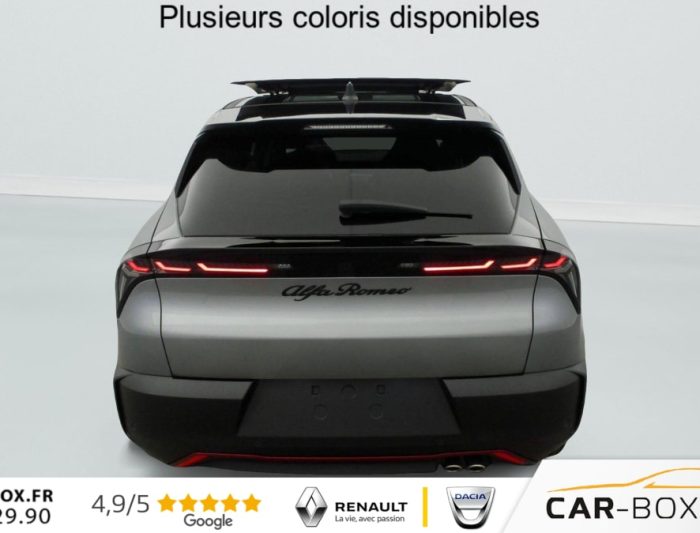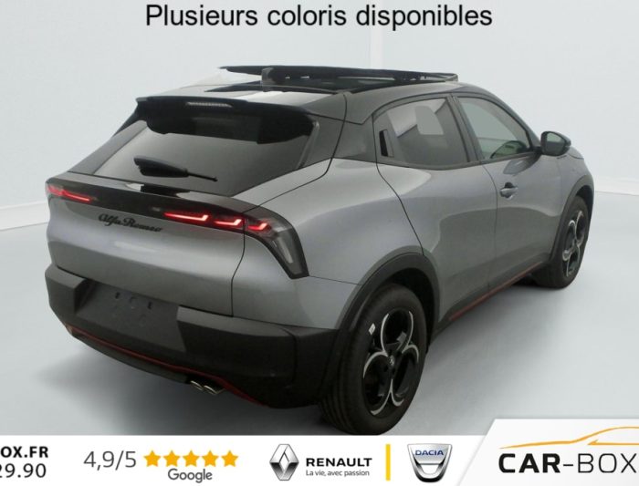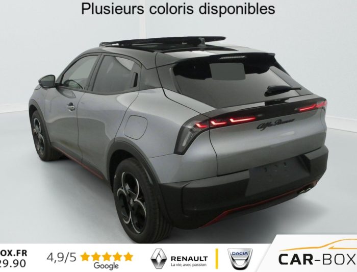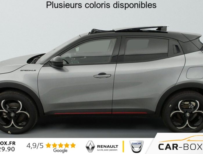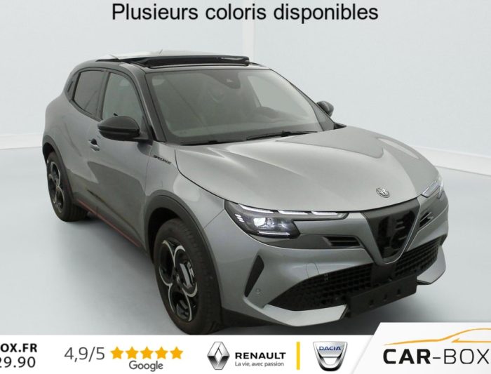 Hors frais de dossier1.2 Ibrida 145 ch eDCT6 Speciale, hybride, gris, 18/09/2025, Prolongation de la garantie constructeur de 24 à 36 Mois : option incluse (valeur : 550 Eur TTC), Accoudoir AV, Banquette AR rabattable 60/40, Allumage automatique des feux et des essuie-glaces, Direction assistée, Apple CarPlay / Android Auto sans fil, Détection de fatigue du conducteur, Système de démarrage sans clé, Prise USB AV type A + C (Charge et données), Radio DAB, Assistant de maintien dans la voie, Alerte de rappel de présence sur les sièges AR, Frein de parking électrique, Feux AR Full-Led, Assistance de conduite semi-autonome autoroute et trafic dense, Système de navigation, réplicable sur le Combiné d’instrument digital, Système d’ouverture sans clé, Système audio à 6 HP, Peinture Pastel Blanc Sempione, Peinture métallisée Bleu Navigli Toit Noir : option incluse (valeur : 1 200 Eur TTC), Jantes alliage 18" Fori avec pneumatiques été 215/55 R18 99V, Vitres AV/AR électriques, Combiné d’instruments digital 10, 25" Cannochiale, Sélecteur de mode de conduite DNA (3 modes), 6 airbags (Frontaux, latéreux et rideaux), Climatisation automatique mono-zone, Plancher de coffre ajustable, Scudetto Progresso, Volant en cuir multifonction, Pédalier et seuils de porte en aluminium, Palettes au volant, Eclairage d’ambiance (Cannocchiale, aérateurs latéraux et tunnel centrale), Capteur de pression des pneumatiques TPMS, Hayon mains libres, Freinage d’urgence autonome urbain (détection des usagers vulnérables), Prise USB AR type 1 x C (Charge), Régulateur de vitesse adaptatif intelligent avec lecture des panneaux, Pack Sport Speciale Sièges baquets SABELT (réglages électriques et chauffant coté conducteur), Volant sport en cuir et Alcantara, Insert Alcantara (planche de bord, tunnel central, contre-portes en soft-touch) : Insert Alcantara (planche de bord, tunnel central, contre porte) Sièges baquets SABELT (réglages électriques et chauffant coté conducteur) Volant Sport en cuir et Alcantara : option incluse (valeur : 2 500 Eur TTC), Pack Techno Speciale Projecteurs adaptatifs Full-Led Matrix, Radars de stationnement 360° (AV, AR et latéraux), Chargeur induction pour smartphone, Rétroviseurs extérieurs rabattables électriquement avec détecteur d’angles, Rétroviseurs intérieur électrochrome : Rétroviseur intérieur électro-chromatique Chargeur de téléphone à induction, Projecteurs adaptatifs Full-Led Matrix Rétroviseurs extérieurs rabattables électriquement avec détecteur d’angles morts Radars de stationnement 360° (AV, AR et latéraux) : option incluse (valeur : 1 500 Eur TTC), ABS, ESP, TCS, Boîte automatique 6 rapports, Verrouillage centralisé, Vitres AR surteintées, Toit ouvrant électrique : option incluse (valeur : 1 400 Eur TTC)