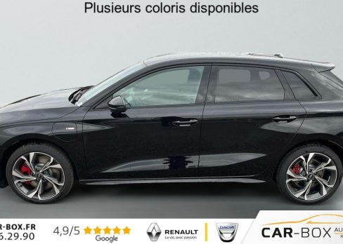 NOUVELLE 45 TFSI E HYBRIDE RECHARGEABLE 272 S tronic 6 S line, hybride, noir, 14/10/2025, Siège conducteur réglable électriquement : option incluse (valeur : 300 Eur TTC), Commande de désactivation de l’airbag passager AV, Boîtiers de rétroviseurs extérieurs dans la couleur de la carrosserie, ABS, Réception radio numérique (DAB), Boîtiers de rétroviseurs extérieurs en Noir, Condamnation centralisée des portes, Appel d’urgence Audi connect, Détecteur de pluie et de luminosité, Volant cuir Sport multifonctions Plus 3 branches avec méplat et palettes de commande au volant, Vitrage Privacy : lunette AR, vitres de portières AR et vitres latérales AR surteintées, Audi Drive Select, Direction assistée électromécanique, asservie à la vitesse, Rétroviseur intérieur jour/nuit automatique sans encadrement, Kit réparation, Sécurité enfant électrique, Contrôle de la pression des pneus, Peinture métallisées : option incluse (valeur : 900 Eur TTC), ESP, Phares à LED avec clignotants dynamiques AR, Appui lombaire à 4 axes pour les sièges AV : réglages électrique, horizontal et vertical, Audi phone box light, Audi Hold Assist, Jantes en alliage léger 18 », 5 branches en Y, Gris Graphite, tournées brillantes 8, 0 J x 18" 225/40 R18, Clé confort incluant déverrouillage du coffre par capteur (sans safelock) – Accès et démarrage du véhicule mains libres (keyless access) – Déverrouillage du hayon via la touche "coffre" de la télécommande ou en simulant un mouvement de pied dans la zone à l’AR du véhicule (ouverture et fermeture)., Rétroviseurs extérieurs réglables, dégivrants, rabattables électriquement avec fonction rabat automatique, Accoudoir central coulissant en longueur, avec inclinaison réglable, Pare-brise à vitrage acoustique, MMI Radio Plus, Audi pre sense front, Dispositif de limitation de vitesse, Outillage de bord, Rappel de ceinture de sécurité avec dispositif AR de détection d’occupation du siège, Pack extérieur S line, 2 ports de charge USB AR, I-Size et Top Tether pour les sièges AR extérieurs, Pack intérieur S line, Airbags latéraux à l’AV et système d’airbags de tête, Hayon assisté électriquement pour l’ouverture et la fermeture : option incluse (valeur : 450 Eur TTC), Sellerie tissu "Pouls" / Combinaison tissue pouls/en matière synthétiques avec estampage S, Pack Esthétique Noir Plus Reprend tous les éléments de Pack Esthétique Noir + anneaux Audi en noir sur l’AV et l’AR du véhicule et identification du modèle/moteur en noir : Pack Esthétique Noir Anneaux Audi en noir AV et AR du véhicule et identification modèle/moteur en noir, Applications décoratives en aluminium Spectre foncé (au tableau de bord), Détection de signalisation routière par caméra, Pack assistance M Caméra de recul : Caméra de recul, Pack climatisation plus Sièges AV chauffants, Climatisation confort automatique 3 zones : Sièges AV chauffants Climatisation automatique Confort 3 zones, Assistant de vitesse adaptatif, Pack connectivité Audi virtual cockpit plus, MMI Navigation plus, Audi Connect, Audi sound system, Audi Smartphone Interface : Audi Sound System Audi Virtual Cockpit Plus MMI Navigation plus avec MMI touch Audi connect Navigation & Infotainment Audi smartphone interface, Pack éclairage d’ambiance plus 30 couleurs diff. pour le profil de couleur personnalisé. l’éclairage de contour du tableau de bord, l’éclairage d’ambiance des portes AV et AR, l’éclairage de contour des portes AV et AR, le compartiment de rangement de la console centrale, l’éclairage des contours de la console centrale, porte-gobelets éclairés. en blanc :éclairage d’entrée sous les portes et des caves à pieds AV et AR – Miroirs de courtoisie éclairés, module de toit, à l’AV/AR, y les liseuses, Eclairage du compartiment : Miroirs de courtoisie éclairés 30 couleurs au choix pour un profil de couleur personnalisable Module de toit à LED, AV/AR y compris liseuses Eclairage du compartiment à bagages Eclairage des caves à pieds, à l’AV et à l’AR, en blanc Eclairage d’entrée sous les portes, à l’AV et à l’AR, en blanc Eclairage des contours de la console centrale Eclairage des contours du tableau de bord Eclairage d’ambiance des portes AV/AR Eclairage de contour des portes AV et AR Eclairage du compartiment de rangement de la console centrale Porte-gobelets éclairés, Assistant de maintien dans la voie, Etriers de freins rouges, Câble de recharge mode 3 pour recharge publique 11kW, Câble de recharge prise domestique, Vitres AR surteintées, Contrôle de la traction (TCS), Clé à fréquence radio (sans safelock) Verrouillage central "Keyless-Go" verrouille et déverrouille les portes, le capot de coffre et la trappe à carburant ; incluant ouverture/fermeture confort des vitres, Boîte automatique S Tronic 6 vitesses, Audi park assist plus avec caméra. L’aide au stationnement plus peut aider à entrer et à sortir des places de stationnement qui peuvent être limitées par des véhicules ou des objets. Le système prend le contrôle de la direction, de l’accélération, du freinage et du changement de vitesse, Pack intérieur sport combinaison tissu/matière synthétique Sièges sport à l’AV, Sellerie en combinaison tissu Pouls/similicuir avec estampagne S, Pédalier en acier inoxydable, Enjoliveurs de seuil de porte avec inserts en aluminium à l’AV, Dossier de banquette AR rabattable 60/40, Application de volant en style chrome, emblème S, poignées de volant en cuir perforé et couture contrastée, Pavillon en tissu noir, Accoudoir en matériaux synthétiques, Style aluminium à l’intérieur : Ciel de pavillon en tissu Noir Sièges AV Sport Pédalier et repose-pieds en acier inoxydable Style aluminium à l’intérieur Dossier de banquette AR rabattable 40:60 Enjoliveurs de seuil de porte avec inserts en aluminium à l’AV, éclairés, monogramme S Accoudoir de por