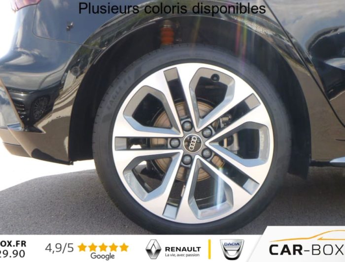 ABS, Accoudoir central coulissant en longueur, avec inclinaison reglable, Aide au stationnement avant et arriere , Airbags lateraux a l'AV et systeme d'airbags de tete, Alerte de fatigue , Alerte de survitesse , Appel d'urgence & service Audi connect, Appui lombaire a 4 axes pour les sieges AV, Audi Drive Select, Audi phone box light, Audi pre sense , Audi smartphone interface, Avertissement de franchissement de ligne , Avertissement distance de securite , Boitiers de retroviseurs exterieurs dans la couleur de la carrosserie, Cle confort incluant deverrouillage du coffre par capteur (avec Safelock) + Alarme antivol : option incluse (valeur : 500 Eur TTC), Commande de desactivation de l'airbag passager AV, Condamnation centralisee des portes, Controle de la pression des pneus, Detecteur de pluie et de luminosite, Detection de signalisation routiere par camera, Direction assistee electromecanique, asservie a la vitesse, Dossier de banquette AR rabattable 60/40, ESP, Extension de garantie 2 ans supplementaires (2 + 2) ou 120000 km : option incluse (valeur : 658 Eur TTC), Hayon assiste electriquement pour l'ouverture et la fermeture : option incluse (valeur : 450 Eur TTC), I-Size et Top Tether pour les sieges AR exterieurs, Jantes en alliage leger 18'', 5 branches en Y, Gris Graphite, tournees brillantes, Kit reparation, Leve-vitres avant et arriere electriques , MMI Radio Plus, Pack climatisation plus (Climatisation automatique Confort 3 zones, Sieges AV chauffants), Pack eclairage d'ambiance (pares-soleil avec miroirs de courtoisie eclaires, spots de lecture a LED) : option incluse (valeur : 0 Eur TTC), Pack exterieur S line, Park assist , Phares a LED avec clignotants dynamiques AV et AR, Prise 12V avant , Reception radio numerique (DAB), Regulateur de vitesse et limiteur de vitesse , Retroviseur interieur jour/nuit manuel, Retroviseurs exterieurs reglables electriquement, degivrants, Securite enfants electriques des vitres AR , Siege conducteur a reglage electrique : option incluse (valeur : 0 Eur TTC), Style aluminium a l'interieur, Systeme Start & Stop avec recuperation d'energie au freinage, Vitrage Privacy : lunette AR, vitres de portieres AR et vitres laterales AR surteintees, Vitres AR surteintees, Volant cuir multifonctions plus 3 branches avec palettes de commande au volant, 2 ports de charge USB-C AR, 2 prises USB-C avant