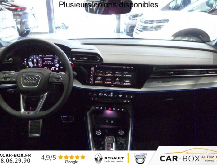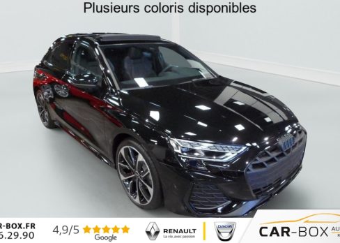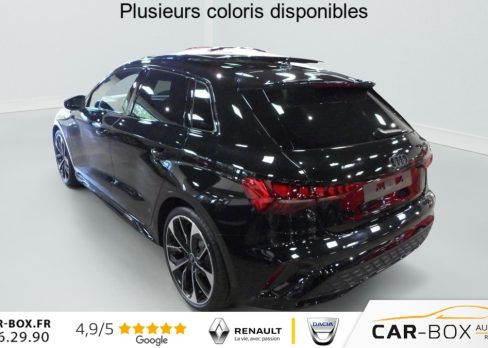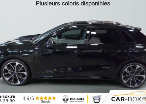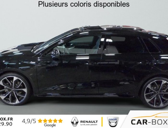 Audi Smartphone Interface, Clé confort incluant déverrouillage du coffre par capteur (sans safelock) - Accès et démarrage du véhicule mains libres (keyless access) - Déverrouillage du hayon via la touche "coffre" de la télécommande ou en simulant un mouvement de pied dans la zone, Jantes alu 19" Design Edge à 5 doubles branches, Son Premium SONOS 3D, Commande de désactivation de l'airbag passager AV, Boîtiers de rétroviseurs extérieurs dans la couleur de la carrosserie, ABS, Réception radio numérique (DAB), Caméra de recul, Sièges AV Sport, Style aluminium à l'intérieur, Appel d'urgence Audi connect, Ecrous de roues antivol, Tapis de sol AV/AR, Détecteur de pluie et de luminosité, Volant cuir Sport multifonctions Plus 3 branches avec méplat et palettes de commande au volant, Vitrage Privacy : lunette AR, vitres de portières AR et vitres latérales AR surteintées, Audi Drive Select, Préparation pour crochet d'attelage : option incluse (valeur : 200 Eur TTC), Direction assistée électromécanique, asservie à la vitesse, Rétroviseur intérieur jour/nuit automatique sans encadrement, Sièges AV réglables manuellement Hauteur et positionnement en longueur, Inclinaison de dossier, Hauteur des appuie-tête et des ceintures, Kit réparation, Sécurité enfant électrique, Trousse de secours, triangle de présignalisation et 2 vestes de sécurité, Contrôle de la pression des pneus, Peinture métallisées : option incluse (valeur : 900 Eur TTC), ESP, Phares à LED avec clignotants dynamiques AR, Appui lombaire à 4 axes pour les sièges AV : réglages électrique, horizontal et vertical, Audi phone box light, Audi Sound System, Audi Hold Assist, Phares Matrix LED avec clignotants dynamiques (AV et AR) : option incluse (valeur : 850 Eur TTC), Accoudoir central coulissant en longueur, avec inclinaison réglable, Dossier de banquette AR rabattable 40:60, Pare-brise à vitrage acoustique, Audi Connect Appel d'urgence, MMI Radio Plus, Audi pre sense front, Dispositif de limitation de vitesse, Outillage de bord, Rappel de ceinture de sécurité avec dispositif AR de détection d'occupation du siège, 2 ports de charge USB AR, Audi Virtual Cockpit Plus, I-Size et Top Tether pour les sièges AR extérieurs, Airbags latéraux à l'AV et système d'airbags de tête, MMI Navigation plus avec MMI touch, Phares AV halogènes, Accoudoir de portière en matière synthétiques, Sellerie tissu "Pouls" / Combinaison tissue pouls/en matière synthétiques avec estampage S, Applications décoratives en aluminium Spectre foncé (au tableau de bord), Audi connect Navigation & Infotainment, Détection de signalisation routière par caméra, Pack assistance M Caméra de recul : Caméra de recul , Pack climatisation plus Sièges AV chauffants, Climatisation confort automatique 3 zones : Climatisation automatique Confort 3 zones Sièges AV chauffants : option incluse (valeur : 400 Eur TTC), Audi smartphone interface, Assistant de vitesse adaptatif, Toit ouvrant panoramique en verre : option incluse (valeur : 1 400 Eur TTC), Pack éclairage d'ambiance plus 30 couleurs diff. pour le profil de couleur personnalisé. l'éclairage de contour du tableau de bord, l'éclairage d'ambiance des portes AV et AR, l'éclairage de contour des portes AV et AR, le compartiment de rangement de la : 30 couleurs au choix pour un profil de couleur personnalisable Eclairage d'ambiance des portes AV/AR Eclairage d'entrée sous les portes, à l'AV et à l'AR, en blanc Eclairage de contour des portes AV et AR Eclairage des caves à pieds, à l'AV et à l'AR, en blanc Eclairage des contours de la console centrale Eclairage des contours du tableau de bord Eclairage du compartiment à bagages Eclairage du compartiment de rangement de la console centrale Miroirs de courtoisie éclairés Module de toit à LED, AV/AR y compris liseuses Porte-gobelets éclairés , Assistant de maintien dans la voie, Pack assistance route - Régulateur de vitesse adaptatif avec assistance d'urgence et contrôle prédictif - Reconnaissance des panneaux de signalisation par caméra - Park assist plus avec système de stationnement avec affichage à 360 - Assistance latéral : Aide à l'embardée et aide au virage Assistance latérale avec alerte de sortie et assistance au trafic transversal AR Audi Pre Sense Basic avec Audi pre sense rear Park assist plus avec système de stationnement avec affichage à 360 Reconnaissance des panneaux de signalisation par caméra Régulateur de vitesse adaptatif avec assistance d'urgence et contrôle prédictif : option incluse (valeur : 860 Eur TTC), Pack éclairage d'ambiance pro 5 profils de couleurs prédéfinis et interactifs activé via l'Audi Drive Select : 5 profils de couleurs prédéfinis et interactifs peuvent être activé via l'Audi Drive Select : option incluse (valeur : 300 Eur TTC), Vitres AR surteintées, Contrôle de la traction (TCS), Clé à fréquence radio (sans safelock) Verrouillage central "Keyless-Go" verrouille et déverrouille les portes, le capot de coffre et la trappe à carburant ; incluant ouverture/fermeture confort des vitres, Boîte automatique S Tronic 7 vitesses, Ciel de pavillon en tissu Noir, Système Start & Stop avec récupération d'énergie au freinage