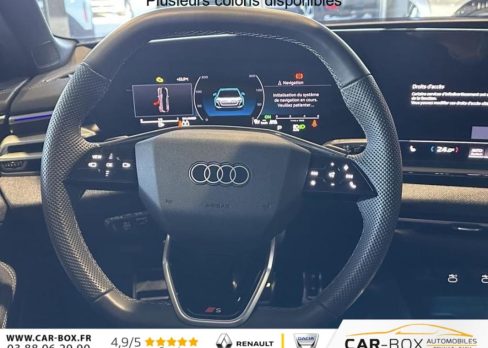 Assistance au freinage d'urgence à l'AV Scanne la zone située devant le véhicule et peut, en fonction de la situation et de la vitesse, avertir de l'imminence d'une collision et déclencher les mesures de freinage appropriées. Les piétons et les cyclistes, Assistant d'intersection AV Surveille la zone située devant et sur le côté du véhicule aux intersections et aux sorties de route à l'aide des capteurs radar intégrés à l'AV du véhicule. Dans les limites du système, il détecte les objets en mouvement tels, Navigation MMI avec MMI touch Le système de navigation MMI plus avec MMI touch offre : - l'écran panoramique MMI avec technologie OLED, comprenant l'Audi virtual cockpit plus avec écran de 11,9 pouces ainsi que l'écran MMI touch de14,5, Audi phone box, ABS, ESC, Réception radio numérique (DAB), Contrôle de pression des pneumatiques, Direction progressive, Dossier de banquette AR rabattable à distance et en trois parties 40 : 20 : 40 ou complètement, Audi Drive Select Permet de sélectionner différents modes de conduite: Efficiency, Confort, Dynamic, Lift, Individual. Les systèmes et équipements du véhicules s'adaptent suivant le mode sélectionné, Clé à fréquence radio (sans safelock), Tapis de sol AV/AR, Vitrage Privacy : lunette AR, vitres de portières AR et vitres latérales AR surteintées, ESP, Ecrous de roues antivol, Hayon de coffre à ouverture et fermeture électrique, Rampes de pavillon en aluminium, Audi Virtual Cockpit Plus, Filet de séparation, Airbag conducteur et passager avec désactivation de l'airbag du siège passager, Appel d'urgence et service Audi connect avec Audi connect Remote & Control Audi connect appel d'urgence & service permet, par exemple, dans le cas d'un accident grave, un appel d'urgence est automatiquement généré au centre d'appels d'urgence Audi. Un ser, Pédalier et repose-pieds en acier inoxydable, Audi connect Navigation & Infotainment, Assistant d'évitement et assistant de braquage, Sécurité enfant commandée électrique, Volant multifonction S en cuir à trois branches avec palettes, Jantes style à 5 branches doubles en V, Gris Graphite, tournées brillantes 8,0J x 19, pneus 245/40 R19, Sonorité extérieure Système acoustique permettant de produire un avertissement sonore à l'extérieur du véhicule à faible vitesse dans le but d'accroître la sécurité routière, Pack style brillant, Boîtiers de rétroviseurs dans la teinte du véhicule, Réglage du volant manuel, Limiteur de vitesse basé sur la détection de signalisation routière, Détection des panneaux de signalisation par caméra, Avertissement de contrôle de la banquette AR, Fixation de siège pour enfant i-Size côté passager AV et i-Size et Top Tether pour les sièges AR extérieurs, Préparation pour dispositif d'attelage, Châssis Sport Meilleure dynamique de conduite, une tenue de route agile et une allure sportive (Châssis abaissé de 20mm), Pack extérieur S line, Sièges Sport avec monogramme S, Eléments d'équipement intérieur en haut et en bas avec couture contrastée, Eléments de la console centrale Noir Brillant, Garniture du tableau de bord, des contre-portes et des accoudoirs de portes en tissu Kaskade, Seuils de porte avec inserts en aluminium à l'AV, éclairés, avec monogramme S, Kit anti-crevaison, Indicateur de perte de pression des pneumatiques, Pack Tech - Caméra de recul - Régulateur de vitesse adaptatif - Park assist plus - Système d'aide au stationnement plus - Projecteurs à LED plus - Assistant feux de route - Bloc de feux AR à LED pro - Climatisation automatique 3 zones - Rétroviseu : Alerte de sortie de voie Assistant de feux de route Assistant de vitesse adaptatif Le régulateur de vitesse adaptatif aide le conducteur en maintenant la vitesse et la distance par rapport au véhicule qui le précède Audi Application Store et smartphone interface Téléchargez des applications via l'Audi Application Store ou utilisez les application de votre smartphone via la Smartphone interface (prend en charge Android Auto et Apple Car Play) Audi Sound System 10 HPs incluant un HP central et un subwoofer ; amplificateur à 6 canaux avec une puissance totale de 180 watts Bloc de feux AR à LED pro Clignotants dynamiques et séquences lumineuses Caméra de recul Climatisation automatique 3 zones Park assist plus Le système d'assistance contrôle la direction, l'accélération et le freinage et coupe le moteur afin d'offrir un stationnement en toute sérénité Projecteurs a LED plus Projection de logo dans les rétroviseurs extérieurs Rétroviseur intérieur à réglage jour/nuit automatique Rétroviseurs extérieurs réglables dégivrants et rabattables électriquement à réglage jour/nuit automatique des 2 côtés Système d'aide au stationnement plus avec indicateur de distance Aide à entrer et sortir des places de stationnement et à manoeuvrer en AV et en AR grâce à des signaux acoustiques et à un affichage visuel de la trajectoire de conduite virtuelle , Airbags latéraux à l'AV avec système d'airbags rideaux et airbag central à l'AV, Contrôle de la traction (TCS), Motorisation avec technologie hybridation légère MHEV plus, Boîte automatique S Tronic 7 vitesses, Pack intérieur S line tissu Sellerie tissu, Appuis lombaires, Sièges AV chauffants, Sièges AV à réglage manuel, Eclairage d'ambiance Plus, Inserts décoratifs en aluminium mat brossé avec marquage linéaire anthracite, Applications intérieures style a : Application intérieures en style aluminium Appui lombaires Eclairage d'ambiance plus 30 couleurs disponibles Inserts décoratifs en aluminium mat brossé Sellerie tissu Kaskade Sièges AV à réglage manuel Sièges AV chauffants , Verrouillage centralisé, Ciel de pavillon en tissu noir