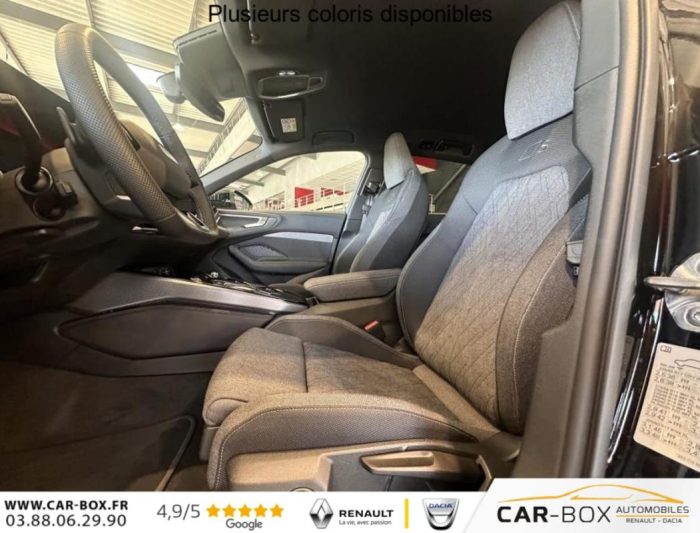 Assistance au freinage d'urgence à l'AV Scanne la zone située devant le véhicule et peut, en fonction de la situation et de la vitesse, avertir de l'imminence d'une collision et déclencher les mesures de freinage appropriées. Les piétons et les cyclistes, Assistant d'intersection AV Surveille la zone située devant et sur le côté du véhicule aux intersections et aux sorties de route à l'aide des capteurs radar intégrés à l'AV du véhicule. Dans les limites du système, il détecte les objets en mouvement tels, Navigation MMI avec MMI touch Le système de navigation MMI plus avec MMI touch offre : - l'écran panoramique MMI avec technologie OLED, comprenant l'Audi virtual cockpit plus avec écran de 11,9 pouces ainsi que l'écran MMI touch de14,5, Audi phone box, ABS, ESC, Réception radio numérique (DAB), Contrôle de pression des pneumatiques, Direction progressive, Dossier de banquette AR rabattable à distance et en trois parties 40 : 20 : 40 ou complètement, Audi Drive Select Permet de sélectionner différents modes de conduite: Efficiency, Confort, Dynamic, Lift, Individual. Les systèmes et équipements du véhicules s'adaptent suivant le mode sélectionné, Clé à fréquence radio (sans safelock), Tapis de sol AV/AR, Vitrage Privacy : lunette AR, vitres de portières AR et vitres latérales AR surteintées, ESP, Ecrous de roues antivol, Hayon de coffre à ouverture et fermeture électrique, Rampes de pavillon en aluminium, Audi Virtual Cockpit Plus, Filet de séparation, Airbag conducteur et passager avec désactivation de l'airbag du siège passager, Appel d'urgence et service Audi connect avec Audi connect Remote & Control Audi connect appel d'urgence & service permet, par exemple, dans le cas d'un accident grave, un appel d'urgence est automatiquement généré au centre d'appels d'urgence Audi. Un ser, Pédalier et repose-pieds en acier inoxydable, Audi connect Navigation & Infotainment, Assistant d'évitement et assistant de braquage, Sécurité enfant commandée électrique, Volant multifonction S en cuir à trois branches avec palettes, Jantes style à 5 branches doubles en V, Gris Graphite, tournées brillantes 8,0J x 19, pneus 245/40 R19, Sonorité extérieure Système acoustique permettant de produire un avertissement sonore à l'extérieur du véhicule à faible vitesse dans le but d'accroître la sécurité routière, Pack style brillant, Boîtiers de rétroviseurs dans la teinte du véhicule, Réglage du volant manuel, Limiteur de vitesse basé sur la détection de signalisation routière, Détection des panneaux de signalisation par caméra, Avertissement de contrôle de la banquette AR, Fixation de siège pour enfant i-Size côté passager AV et i-Size et Top Tether pour les sièges AR extérieurs, Préparation pour dispositif d'attelage, Châssis Sport Meilleure dynamique de conduite, une tenue de route agile et une allure sportive (Châssis abaissé de 20mm), Pack extérieur S line, Sièges Sport avec monogramme S, Eléments d'équipement intérieur en haut et en bas avec couture contrastée, Eléments de la console centrale Noir Brillant, Garniture du tableau de bord, des contre-portes et des accoudoirs de portes en tissu Kaskade, Seuils de porte avec inserts en aluminium à l'AV, éclairés, avec monogramme S, Kit anti-crevaison, Indicateur de perte de pression des pneumatiques, Pack Tech - Caméra de recul - Régulateur de vitesse adaptatif - Park assist plus - Système d'aide au stationnement plus - Projecteurs à LED plus - Assistant feux de route - Bloc de feux AR à LED pro - Climatisation automatique 3 zones - Rétroviseu : Alerte de sortie de voie Assistant de feux de route Assistant de vitesse adaptatif Le régulateur de vitesse adaptatif aide le conducteur en maintenant la vitesse et la distance par rapport au véhicule qui le précède Audi Application Store et smartphone interface Téléchargez des applications via l'Audi Application Store ou utilisez les application de votre smartphone via la Smartphone interface (prend en charge Android Auto et Apple Car Play) Audi Sound System 10 HPs incluant un HP central et un subwoofer ; amplificateur à 6 canaux avec une puissance totale de 180 watts Bloc de feux AR à LED pro Clignotants dynamiques et séquences lumineuses Caméra de recul Climatisation automatique 3 zones Park assist plus Le système d'assistance contrôle la direction, l'accélération et le freinage et coupe le moteur afin d'offrir un stationnement en toute sérénité Projecteurs a LED plus Projection de logo dans les rétroviseurs extérieurs Rétroviseur intérieur à réglage jour/nuit automatique Rétroviseurs extérieurs réglables dégivrants et rabattables électriquement à réglage jour/nuit automatique des 2 côtés Système d'aide au stationnement plus avec indicateur de distance Aide à entrer et sortir des places de stationnement et à manoeuvrer en AV et en AR grâce à des signaux acoustiques et à un affichage visuel de la trajectoire de conduite virtuelle , Airbags latéraux à l'AV avec système d'airbags rideaux et airbag central à l'AV, Contrôle de la traction (TCS), Motorisation avec technologie hybridation légère MHEV plus, Boîte automatique S Tronic 7 vitesses, Pack intérieur S line tissu Sellerie tissu, Appuis lombaires, Sièges AV chauffants, Sièges AV à réglage manuel, Eclairage d'ambiance Plus, Inserts décoratifs en aluminium mat brossé avec marquage linéaire anthracite, Applications intérieures style a : Application intérieures en style aluminium Appui lombaires Eclairage d'ambiance plus 30 couleurs disponibles Inserts décoratifs en aluminium mat brossé Sellerie tissu Kaskade Sièges AV à réglage manuel Sièges AV chauffants , Verrouillage centralisé, Ciel de pavillon en tissu noir