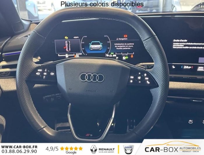 Hors frais de dossierAVANT TDI Hybride 204 ch S tronic 7 S line, hybride diesel électrique, noir, 13/05/2025, Assistance au freinage d’urgence à l’AV Scanne la zone située devant le véhicule et peut, en fonction de la situation et de la vitesse, avertir de l’imminence d’une collision et déclencher les mesures de freinage appropriées. Les piétons et les cyclistes, Assistant d’intersection AV Surveille la zone située devant et sur le côté du véhicule aux intersections et aux sorties de route à l’aide des capteurs radar intégrés à l’AV du véhicule. Dans les limites du système, il détecte les objets en mouvement tels, Navigation MMI avec MMI touch Le système de navigation MMI plus avec MMI touch offre : – l’écran panoramique MMI avec technologie OLED, comprenant l’Audi virtual cockpit plus avec écran de 11, 9 pouces ainsi que l’écran MMI touch de14, 5, Audi phone box, ABS, ESC, Réception radio numérique (DAB), Contrôle de pression des pneumatiques, Direction progressive, Dossier de banquette AR rabattable à distance et en trois parties 40 : 20 : 40 ou complètement, Audi Drive Select Permet de sélectionner différents modes de conduite: Efficiency, Confort, Dynamic, Lift, Individual. Les systèmes et équipements du véhicules s’adaptent suivant le mode sélectionné, Clé à fréquence radio (sans safelock), Tapis de sol AV/AR, Vitrage Privacy : lunette AR, vitres de portières AR et vitres latérales AR surteintées, ESP, Ecrous de roues antivol, Hayon de coffre à ouverture et fermeture électrique, Rampes de pavillon en aluminium, Audi Virtual Cockpit Plus, Filet de séparation, Airbag conducteur et passager avec désactivation de l’airbag du siège passager, Appel d’urgence et service Audi connect avec Audi connect Remote & Control Audi connect appel d’urgence & service permet, par exemple, dans le cas d’un accident grave, un appel d’urgence est automatiquement généré au centre d’appels d’urgence Audi. Un ser, Pédalier et repose-pieds en acier inoxydable, Audi connect Navigation & Infotainment, Assistant d’évitement et assistant de braquage, Sécurité enfant commandée électrique, Volant multifonction S en cuir à trois branches avec palettes, Jantes style à 5 branches doubles en V, Gris Graphite, tournées brillantes 8, 0J x 19, pneus 245/40 R19, Sonorité extérieure Système acoustique permettant de produire un avertissement sonore à l’extérieur du véhicule à faible vitesse dans le but d’accroître la sécurité routière, Pack style brillant, Boîtiers de rétroviseurs dans la teinte du véhicule, Réglage du volant manuel, Limiteur de vitesse basé sur la détection de signalisation routière, Détection des panneaux de signalisation par caméra, Avertissement de contrôle de la banquette AR, Fixation de siège pour enfant i-Size côté passager AV et i-Size et Top Tether pour les sièges AR extérieurs, Préparation pour dispositif d’attelage, Châssis Sport Meilleure dynamique de conduite, une tenue de route agile et une allure sportive (Châssis abaissé de 20mm), Pack extérieur S line, Sièges Sport avec monogramme S, Eléments d’équipement intérieur en haut et en bas avec couture contrastée, Eléments de la console centrale Noir Brillant, Garniture du tableau de bord, des contre-portes et des accoudoirs de portes en tissu Kaskade, Seuils de porte avec inserts en aluminium à l’AV, éclairés, avec monogramme S, Kit anti-crevaison, Indicateur de perte de pression des pneumatiques, Pack Tech – Caméra de recul – Régulateur de vitesse adaptatif – Park assist plus – Système d’aide au stationnement plus – Projecteurs à LED plus – Assistant feux de route – Bloc de feux AR à LED pro – Climatisation automatique 3 zones – Rétroviseu : Alerte de sortie de voie Assistant de feux de route Assistant de vitesse adaptatif Le régulateur de vitesse adaptatif aide le conducteur en maintenant la vitesse et la distance par rapport au véhicule qui le précède Audi Application Store et smartphone interface Téléchargez des applications via l’Audi Application Store ou utilisez les application de votre smartphone via la Smartphone interface (prend en charge Android Auto et Apple Car Play) Audi Sound System 10 HPs incluant un HP central et un subwoofer ; amplificateur à 6 canaux avec une puissance totale de 180 watts Bloc de feux AR à LED pro Clignotants dynamiques et séquences lumineuses Caméra de recul Climatisation automatique 3 zones Park assist plus Le système d’assistance contrôle la direction, l’accélération et le freinage et coupe le moteur afin d’offrir un stationnement en toute sérénité Projecteurs a LED plus Projection de logo dans les rétroviseurs extérieurs Rétroviseur intérieur à réglage jour/nuit automatique Rétroviseurs extérieurs réglables dégivrants et rabattables électriquement à réglage jour/nuit automatique des 2 côtés Système d’aide au stationnement plus avec indicateur de distance Aide à entrer et sortir des places de stationnement et à manoeuvrer en AV et en AR grâce à des signaux acoustiques et à un affichage visuel de la trajectoire de conduite virtuelle, Airbags latéraux à l’AV avec système d’airbags rideaux et airbag central à l’AV, Contrôle de la traction (TCS), Motorisation avec technologie hybridation légère MHEV plus, Boîte automatique S Tronic 7 vitesses, Pack intérieur S line tissu Sellerie tissu, Appuis lombaires, Sièges AV chauffants, Sièges AV à réglage manuel, Eclairage d’ambiance Plus, Inserts décoratifs en aluminium mat brossé avec marquage linéaire anthracite, Applications intérieures style a : Application intérieures en style aluminium Appui lombaires Eclairage d’ambiance plus 30 couleurs disponibles Inserts décoratifs en aluminium mat brossé Sellerie tissu Kaskade Sièges AV à réglage manuel Sièges AV chauffants, Verrouillage centralisé, Ciel de pavillon en tissu n