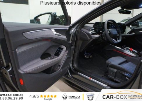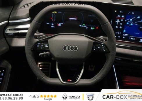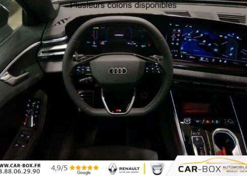 Jantes, style à 5 branches doubles, Gris Graphite, tournées brillantes [C7G], Réception radio numérique (DAB), Système de contrôle de pression des pneus, Hayon de coffre à ouverture et fermeture électrique, Audi Sound System, Alerte de sortie de voie, Clé confort (sans SAFELOCK), Extérieur S line, Filet de séparation, Pédalier et repose-pieds en acier inoxydable, Détecteur de fatigue, Régulateur de vitesse adaptatif, Dispositif d'attelage : option incluse (valeur : 1 500 Eur TTC), Assistant d'évitement et assistant de braquage, Sécurité enfant commandée électrique, Teinte nacrée : option incluse (valeur : 1 300 Eur TTC), Toit panoramique en verre avec transparence activable/désactivable : option incluse (valeur : 2 800 Eur TTC), Réglage du volant manuel, Limiteur de vitesse basé sur la détection de signalisation routière, Détection des panneaux de signalisation par caméra, Assistant d'intersection AV Surveille la zone située devant et sur le côté du véhicule aux intersections et aux sorties de route à l'aide des capteurs radar intégrés à l'AV du véhicule. Dans les limites du système, il détecte les objets en mouvement tels que les voitures qui s'approchent. Le système fonctionne dans une plage de vitesse allant jusqu'à 65 km/h. Dans les situations jugées critiques, le système émet des messages d'avertissement en plusieurs étapes. Tout d'abord, un avertissement visuel et sonore est émis., Assistance au freinage d'urgence à l'AV Scanne la zone située devant le véhicule et peut, en fonction de la situation et de la vitesse, avertir de l'imminence d'une collision et déclencher les mesures de freinage appropriées. Les piétons et les cyclistes peuvent être détectés jusqu'à une vitesse d'environ 85 km/h et les véhicules jusqu'à la vitesse maximale. Si une collision frontale imminente est détectée, le système émet un avertissement visuel, acoustique et haptique. Afin de réduire la vitesse ou d'éviter une collision., Avertissement de contrôle de la banquette AR, Fixation de siège pour enfant i-Size côté passager AV et i-Size et Top Tether pour les sièges AR extérieurs, Sièges Sport avec monogramme S, Seuils de porte avec inserts en aluminium à l'AV, éclairés, avec monogramme S, Pack Tech : Lave projecteurs Projection de logo dans les rétroviseurs extérieurs Projecteurs Matrix LED Fonction Matrix Rétroviseur intérieur à réglage jour/nuit automatique Rétroviseurs extérieurs réglables dégivrants et rabattables électriquement à réglage jour/nuit automatique des 2 côtés Bloc de feux AR à LED pro Climatisation automatique 4 zones Caméras périmétriques, Audi Application Store et smartphone interface, Audi Virtual cockpit plus Combiné d'instruments entièrement numérique de 11,9" avec technologie OLED, Airbags à l'AV, airbag du passager AV désactivable, Kit anti-crevaison, Audi Drive Select, Airbags latéraux à l'AV avec système d'airbags rideaux et airbag central à l'AV, Système d'avertissement acoustique du véhicule, Eclairage intérieur Module de toit à LED AV et AR, y compris liseuses, Miroirs de courtoisie côté conducteur et passager, éclairés, Eclairage du compartiment de rangement sous l'accoudoir central, Eclairage de la boîte à gants, Eclairage de la zone des pieds AV, Eclairage du compartiment à bagages, Éclairage de courtoisie du hayon, Rangement pour téléphone avec fonction de chargement par induction, Audi hold assist: Système d'aide au stationnement plus avec indicateur de distance, Assistant aux manoeuvres de stationnement plus, Volant sport multifonction en cuir avec palettes, Pack Esthétique Noir : Pack Esthétique Noir Plus Poignées de portes noires Embouts de sortie d'échappement chromés foncés Rails de toit noirs Boîtiers de rétroviseurs extérieur noirs : option incluse (valeur : 1 100 Eur TTC), Chauffage et ventilation stationnaires : option incluse (valeur : 1 700 Eur TTC), Pack intérieur S line tissu : Appui lombaires Application intérieures en style aluminium Eléments d'équipement intérieur en haut et en bas avec couture contrastée Eclairage d'ambiance plus 30 couleurs disponibles Pavillon en tissu noir Sièges AV à réglage manuel Inserts décoratifs en aluminium mat brossé avec marquage linéaire Anthracite Sellerie Tissu Kaskade avec surpiqûres en losange et emblème S : option incluse (valeur : 0 Eur TTC), Boîte automatique S Tronic 7 vitesses, Dossier de banquette AR rabattable en 3 parties 40:20 :40 ou complètement, Vitrage Privacy Lunette AR, vitres de portières AR et vitres latérales AR surteintées : option incluse (valeur : 550 Eur TTC), Sièges AV chauffants, Vitres AV électriques, Châssis Sport