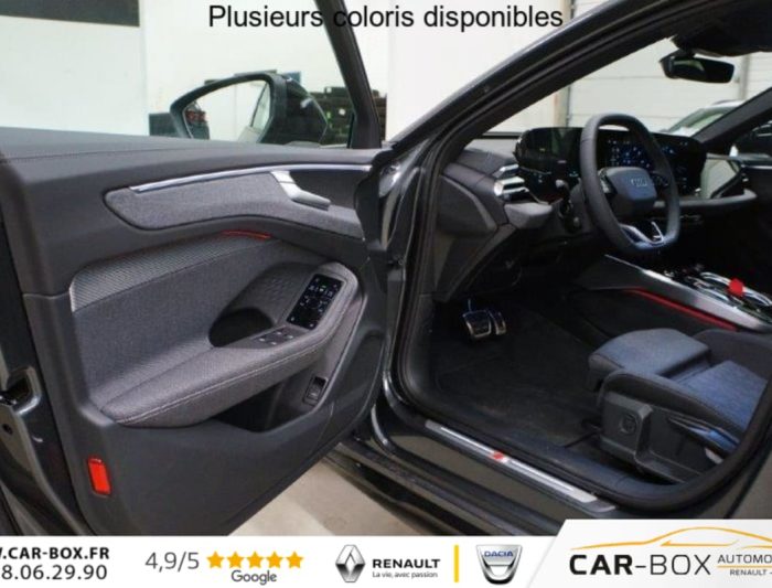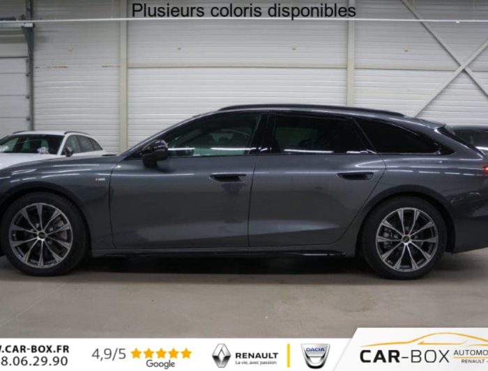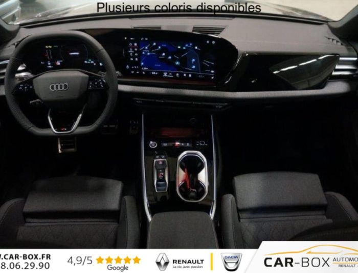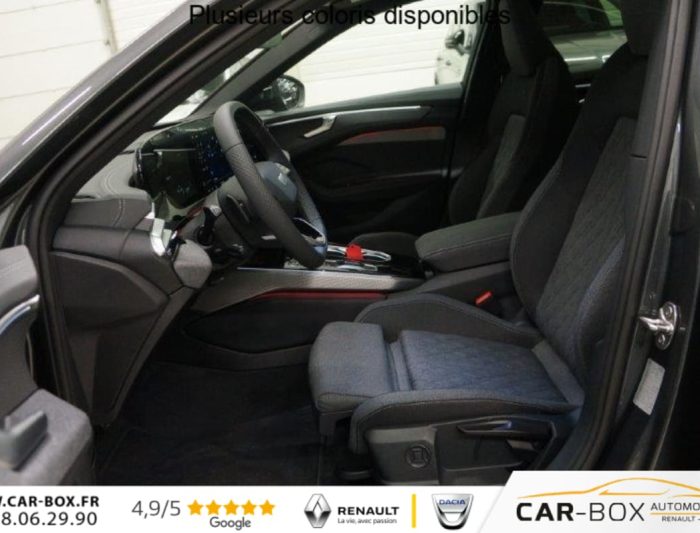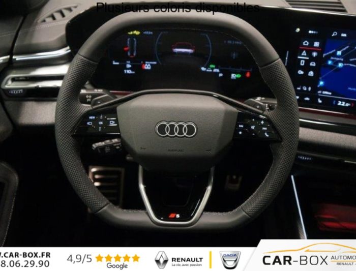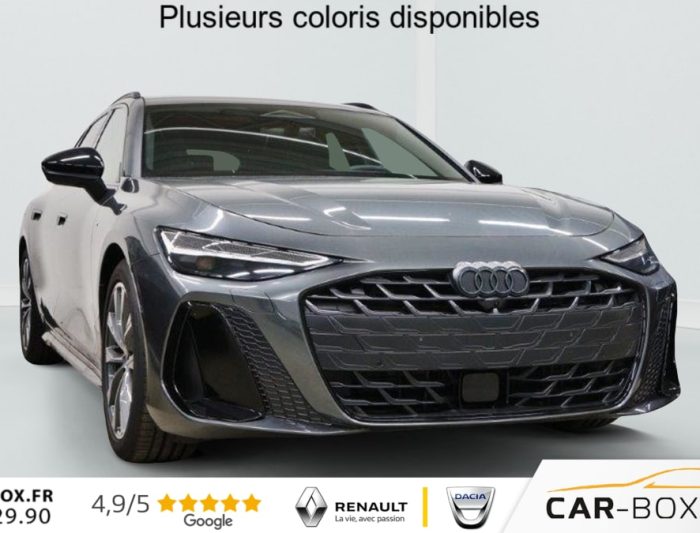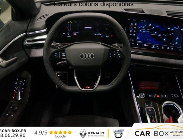 Jantes, style à 5 branches doubles, Gris Graphite, tournées brillantes [C7G], Réception radio numérique (DAB), Système de contrôle de pression des pneus, Hayon de coffre à ouverture et fermeture électrique, Audi Sound System, Alerte de sortie de voie, Clé confort (sans SAFELOCK), Extérieur S line, Filet de séparation, Pédalier et repose-pieds en acier inoxydable, Détecteur de fatigue, Régulateur de vitesse adaptatif, Dispositif d'attelage : option incluse (valeur : 1 500 Eur TTC), Assistant d'évitement et assistant de braquage, Sécurité enfant commandée électrique, Teinte nacrée : option incluse (valeur : 1 300 Eur TTC), Toit panoramique en verre avec transparence activable/désactivable : option incluse (valeur : 2 800 Eur TTC), Réglage du volant manuel, Limiteur de vitesse basé sur la détection de signalisation routière, Détection des panneaux de signalisation par caméra, Assistant d'intersection AV Surveille la zone située devant et sur le côté du véhicule aux intersections et aux sorties de route à l'aide des capteurs radar intégrés à l'AV du véhicule. Dans les limites du système, il détecte les objets en mouvement tels que les voitures qui s'approchent. Le système fonctionne dans une plage de vitesse allant jusqu'à 65 km/h. Dans les situations jugées critiques, le système émet des messages d'avertissement en plusieurs étapes. Tout d'abord, un avertissement visuel et sonore est émis., Assistance au freinage d'urgence à l'AV Scanne la zone située devant le véhicule et peut, en fonction de la situation et de la vitesse, avertir de l'imminence d'une collision et déclencher les mesures de freinage appropriées. Les piétons et les cyclistes peuvent être détectés jusqu'à une vitesse d'environ 85 km/h et les véhicules jusqu'à la vitesse maximale. Si une collision frontale imminente est détectée, le système émet un avertissement visuel, acoustique et haptique. Afin de réduire la vitesse ou d'éviter une collision., Avertissement de contrôle de la banquette AR, Fixation de siège pour enfant i-Size côté passager AV et i-Size et Top Tether pour les sièges AR extérieurs, Sièges Sport avec monogramme S, Seuils de porte avec inserts en aluminium à l'AV, éclairés, avec monogramme S, Pack Tech : Lave projecteurs Projection de logo dans les rétroviseurs extérieurs Projecteurs Matrix LED Fonction Matrix Rétroviseur intérieur à réglage jour/nuit automatique Rétroviseurs extérieurs réglables dégivrants et rabattables électriquement à réglage jour/nuit automatique des 2 côtés Bloc de feux AR à LED pro Climatisation automatique 4 zones Caméras périmétriques, Audi Application Store et smartphone interface, Audi Virtual cockpit plus Combiné d'instruments entièrement numérique de 11,9" avec technologie OLED, Airbags à l'AV, airbag du passager AV désactivable, Kit anti-crevaison, Audi Drive Select, Airbags latéraux à l'AV avec système d'airbags rideaux et airbag central à l'AV, Système d'avertissement acoustique du véhicule, Eclairage intérieur Module de toit à LED AV et AR, y compris liseuses, Miroirs de courtoisie côté conducteur et passager, éclairés, Eclairage du compartiment de rangement sous l'accoudoir central, Eclairage de la boîte à gants, Eclairage de la zone des pieds AV, Eclairage du compartiment à bagages, Éclairage de courtoisie du hayon, Rangement pour téléphone avec fonction de chargement par induction, Audi hold assist: Système d'aide au stationnement plus avec indicateur de distance, Assistant aux manoeuvres de stationnement plus, Volant sport multifonction en cuir avec palettes, Pack Esthétique Noir : Pack Esthétique Noir Plus Poignées de portes noires Embouts de sortie d'échappement chromés foncés Rails de toit noirs Boîtiers de rétroviseurs extérieur noirs : option incluse (valeur : 1 100 Eur TTC), Chauffage et ventilation stationnaires : option incluse (valeur : 1 700 Eur TTC), Pack intérieur S line tissu : Appui lombaires Application intérieures en style aluminium Eléments d'équipement intérieur en haut et en bas avec couture contrastée Eclairage d'ambiance plus 30 couleurs disponibles Pavillon en tissu noir Sièges AV à réglage manuel Inserts décoratifs en aluminium mat brossé avec marquage linéaire Anthracite Sellerie Tissu Kaskade avec surpiqûres en losange et emblème S : option incluse (valeur : 0 Eur TTC), Boîte automatique S Tronic 7 vitesses, Dossier de banquette AR rabattable en 3 parties 40:20 :40 ou complètement, Vitrage Privacy Lunette AR, vitres de portières AR et vitres latérales AR surteintées : option incluse (valeur : 550 Eur TTC), Sièges AV chauffants, Vitres AV électriques, Châssis Sport