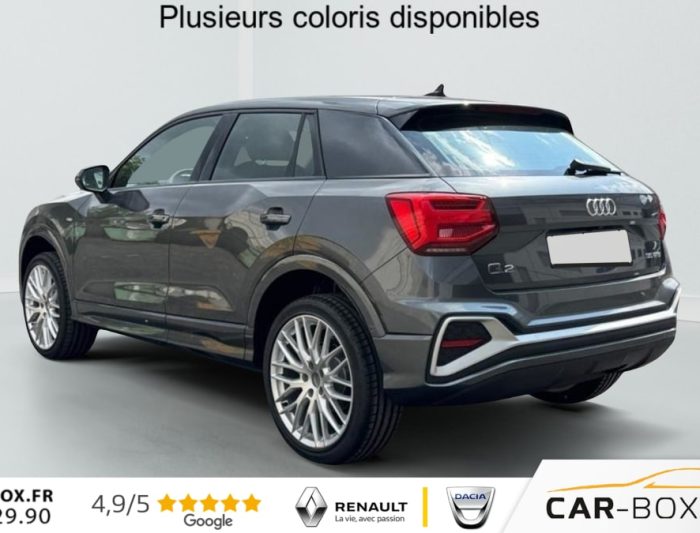 Hors frais de dossier35 TFSI 150 S tronic 7 S line, essence, gris, 31/03/2026, freins à disques avant 15" et arrière 16", MMI radio plus avec MMI touch réception radio de haute qualité, une réception radio numérique, un écran central tactile de 8, 8", une interface Bluetooth pour la connexion d’un téléphone portable ainsi que 2 interfaces USB-C avec fonction de chargement et, sideblades noir brillant, Boîtiers de rétroviseurs extérieurs laqués dans la teinte carrosserie, Système de lecture des panneaux de signalisation par caméra, Régulateur de vitesse, Sièges AV Sport, Volant en cuir style 3 branches avec multifonctions, Audi Smartphone Interface, Audi Sound System avec 10 HP, Réception radio numérique DAB, Sellerie mixte cuir/tissu, Audi Drive Select, Audi Hold Assist, Trousse de secours et triangle de présignalisation, Climatisation automatique 2 zones, Audi Virtual Cockpit, Airbags latéraux AV avec système d’airbags de tête, Rétroviseurs extérieurs réglables, dégivrants et rabattables électriquement, jour/nuit automatiques des deux côtés, Feux AR à LED, Jantes en aluminium Audi Sport Gmbh, 5 doubles branches design trapèzoidale, 7J x 18" avec pneus 215/50 R18, Direction progressive, Détecteur d?occupation de sièges, Audi pre sense front, Avertissement de sortie de voie, Set de réparation pour pneus, Appuis lombaires à 4 axes pour les sièges AV, Tapis de sol à l’AV et à l’AR, Pack Eclairage d’ambiance plus : Rétroéclairage de couleur sur le tableau de bord et sur le repose-genoux de la console centrale : option incluse (valeur : 270 Eur TTC), Pack assistance stationnement : Audi Parking System Plus Caméra de recul, Contrôle de pression de pneus, Audi connect Remote & Control (pour MMI Radio plus), Clé confort sans SAFELOCK, Moulures de seuil avec insert en aluminium et emblème S, éclairées, Applications intérieures en style aluminium, Pack intérieur S line tissu/cuir, Pack extérieur S line en peinture intégrale, Pédalier en acier inoxydable, Sièges AV à réglage manuel, Sécurité enfant électrique, Châssis standard, Clignotants dynamiques à l’AR, Pare-chocs en peinture intégrale, Phares Matrix LED avec clignotants dynamiques à l’AR, Ciel de pavillon en Tissu Noir, Rétroviseur intérieur jour/nuit automatique, Applications décoratives en Aluminium brossé mat