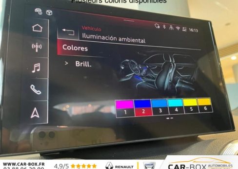 freins à disques avant 15" et arrière 16", jantes alu 19" à 10 branches (U40), Jantes en aluminium Audi Sport Gmbh, 5 doubles branches design trapèzoidale, 7J x 18, MMI radio plus avec MMI touch réception radio de haute qualité, une réception radio numérique, un écran central tactile de 8,8, sideblades gris manhattan, Boîtiers de rétroviseurs extérieurs laqués dans la teinte carrosserie, Système de lecture des panneaux de signalisation par caméra, Régulateur de vitesse, Sièges AV Sport, Volant en cuir style 3 branches avec multifonctions, Audi Smartphone Interface, Audi Sound System avec 10 HP, Réception radio numérique DAB, Sellerie mixte cuir/tissu, Audi Drive Select, Audi Hold Assist, Trousse de secours et triangle de présignalisation, Climatisation automatique 2 zones, Audi Virtual Cockpit, Airbags latéraux AV avec système d'airbags de tête, Rétroviseurs extérieurs réglables, dégivrants et rabattables électriquement, jour/nuit automatiques des deux côtés, Feux AR à LED, Direction progressive, Détecteur d?occupation de sièges, Audi pre sense front, Avertissement de sortie de voie, Set de réparation pour pneus, Appuis lombaires à 4 axes pour les sièges AV, Tapis de sol à l'AV et à l'AR, Pack Eclairage d'ambiance plus : Rétroéclairage de couleur sur le tableau de bord et sur le repose-genoux de la console centrale : option incluse (valeur : 270 Eur TTC), Pack assistance stationnement : Audi Parking System Plus Caméra de recul , Contrôle de pression de pneus, Audi connect Remote & Control (pour MMI Radio plus), Clé confort sans SAFELOCK, Moulures de seuil avec insert en aluminium et emblème S, éclairées, Applications intérieures en style aluminium, Pack intérieur S line tissu/cuir, Pack extérieur S line en peinture intégrale, Pédalier en acier inoxydable, Sièges AV à réglage manuel, Sécurité enfant électrique, Châssis standard, Clignotants dynamiques à l'AR, Pare-chocs en peinture intégrale, Phares Matrix LED avec clignotants dynamiques à l'AR, Ciel de pavillon en Tissu Noir, Rétroviseur intérieur jour/nuit automatique, Applications décoratives en Aluminium brossé mat