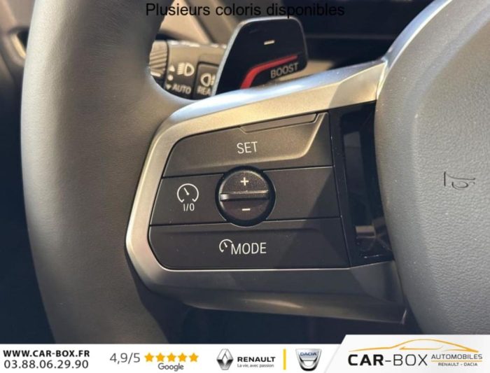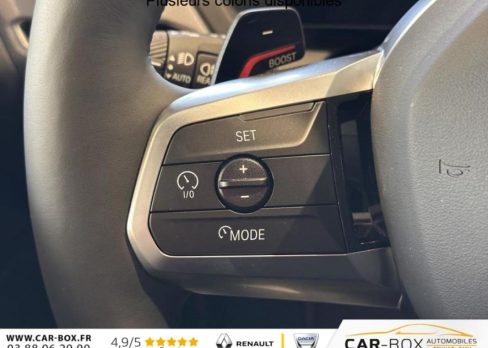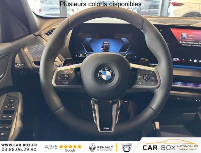 Hors frais de dossierF70 120 170 ch DKG7 M Sport, essence, gris, 22/08/2025, Eléments extérieurs (poignées de portes, baguettes de pare-chocs et de toit) couleur carrosserie, Démarrage sans clé via le bouton Start/Stop, Prise 12 V dans la console centrale, Régulateur de vitesse avec fonction de freinage et limiteur de vitesse, Projecteurs antibrouillard à LED, Régulateur de vitesse avec fonction de freinage dans les descentes, Airbags de tête AV et aux places latérales AR, Airbags latéraux AV, Alarme antivol, Déverrouillage électrique du coffre via la volet de coffre ou la clé radiocommandée, Banquette AR rabattable 60/40, Détecteur de pluie et allumage automatique des projecteurs, Appuis-tête et ceintures de sécurité 3 points à toutes les places, Direction assistée, Airbags frontaux conducteur et passager, BMW Live Cockpit Navigation Plus, 2 porte-gobelets sur la console centrale, ESP, Climatisation automatique 1 zone, Désignation du modèle à droite du hayon, Airbag passager AV déconnectable, Ciel de pavillon M Anthracite, Services Après-vente connectés BMW Teleservices (durée de vie de la voiture), Eclairage de plaque d’immatriculation à LED, Système de détection de somnolence, Eclairage de bienvenue autour du véhicule, Sorties d’échappement non visibles, Projecteurs Full LED, Eléments extérieurs M Sport, Eléments intérieurs M Sport, Suspension Adaptive M, ABS – Système anti blocage des roues, Fonction Start&Stop avec système prédictif via la navigation, BMW Intelligent Personal Assistant, Système Hi-Fi 6 HP, Mesure individuelle de pression des pneumatiques avec 3 niveaux, Connectivité Bluetooth, Teinte de carrosserie métallisée : option incluse (valeur : 990 Eur TTC), BMW Curved Display, Appel d’Urgence Intelligent (durée de vie de la voiture) Appel automatique vers le centre d’assistance BMW en cas d’accident. Touche SOS pour Appel d’Urgence manuel. Les données importantes sont automatiquement transmises aux secours : identification et l, Kit de mobilité BMW Bouteille de mastic pour pneumatiques – compresseur électrique 12 V (connexion à une prise 12V), Shadow Line M brillant Entourage des vitres latérales, les baguettes de bas de glace, les montants centraux ainsi que les pourtours, pieds et triangles des rétroviseurs extérieurs en noir brillant, Calandre avec encadrement en chrome et barreaux verticaux / diagonaux, 3ème feu stop à LED sur la lunette AR, Rétroviseurs extérieurs couleur carrosserie avec rappels de clignotants intégrés, Rétroviseurs extérieurs rabattables électriquement et dégivrants, Accoudoir central AV avec compartiment de rangement, Compartiment à bagages : 2 crochets de sac, filet sur panneau droit, Eclairage intérieur – Lampes de courtoisie – Eclairage habitacle AV et AR, y compris éclairage d’ambiance – Eclairage coffre à bagages sur le coté droit – Eclairage intérieur du compartiement de rangement dans l’accoudoir central – Lampes de lecture à, Inserts décoratifs Aluminium Graphite illuminés, Sièges réglables en hauteur, Tapis de sol anthracite, Jantes en alliage léger 18" style 975 M, à rayons doubles, bicolores Midnight Grey 8 J x 18 / pneus 225/45 R18.Comprennent écrous de roues antivol. Montage chaînes à neige impossible., Sellerie Alcantara / Similicuir Veganza Schwarz avec surpiqûres bleues, Apple CarPlay / Android Auto, BMW "My Modes" (Personal/ Efficient/ Sport), Boîte de vitesses automatique avec palettes à double embrayage DKG7 à 7 rapports, Fixation ISOFIX, Moteur TwinPower Turbo essence 3 cylindres -Turbocompresseur – Valvetronic (modification de la profondeur d’ouverture des soupapes d’admission) – Double VANOS (système de distribution variable) – Technologie BMW High Precision Injection – Filtre à par, 2 ports USB Type C dans la console centrale + 2 à l’AR, Parking Assistant – Caméra de recul – Manoeuvres de stationnemment automatique en créneau et en bataille – Freinage automatique (PDC actif) en marche AR – Assistant de marche AR/Auto-reverse, Active Guard – Avertissement de sortie de voie – Avertissement de collision frontale avec intervention sur les freins – Avertissement de virage à gauche (véhicule) avec fonction de freinage – Indicateur de limitation de vitesse – Assistant d’évitement, Capteurs d’impact – Activation de l’airbag, des feux de détresse, de l’éclairage intérieur – Déverrouillage des portes et légère ouverture des vitres, Contrôle de stabilité dynamique (DSC) avec dotation élargie – Assistant de démarrage en côte – Assistant dynamique de motricité (DTC), Détecteur d’accident (crash sensor) – Allume les feux de détresse – Déverouillage des portes, Driving Assistant – Avertisseur de franchissement de ligne (>70km/h avec vibrations dans le volant) – Avertisseur d’angle mort (>20km/h avec voyant d’alerte) – Avertisseur de risque de collision AV (>15km/h, préconditionnment du freinage >50km/h, assist, Volant M gainé cuir (avec surpiqûres noires) Trois branches. Jante en cuir noir ‘Walknappa’, inserts chrome perlé et repose-pouce dans le volant. Logo M sur la base du volant, Personal eSIM Personal eSIM est la version électronique, intégrée au véhicule, de la carte SIM traditionnelle. Vous l’utilisez via un abonnement souscrit auprès d’un opérateur téléphonique et transformez ainsi votre BMW en périphérique mobile supplémentai, Lève-vitres AV et AR, Verrouillage centralisé, Volant réglable en hauteur et en profondeur, Sièges AV chauffants, Sièges AV Sport