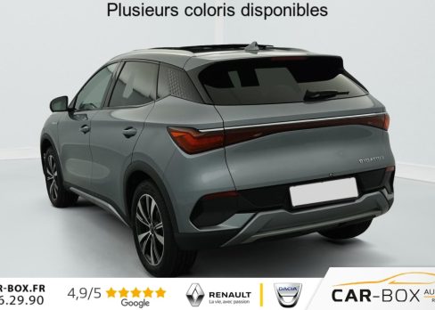 Hors frais de dossier60 5 kWh 204 ch Design, électrique, gris, 29/09/2025, Hayon électrique, Jantes en alliage 18", Phares à LED, Phares à allumage automatique, Feux AR à LED, Feux de jour à LED, Eclairage d’accompagnement, Assistance feux de route, Eclairages de sol dans les rétroviseurs extérieurs, Tablette AR du coffre, Sortie électrique 12 V, Sellerie en similicuir vegan (Bleu & Gris) : option incluse (valeur : 0 Eur TTC), Siège du conducteur avec réglage électrique dans 6 directions, Siège du passager AV avec réglage électrique dans 4 directions, Sièges AV chauffants, Sièges AR rabattables séparément – 40:60, Appuie-tête central des sièges AR, 2 x port de charge USB AV (1 x Type A, 1 x Type C), 2 x port de charge USB AR (1 x Type A, 1 x Type C), Lampe de lecture à LED AV, Lampe de lecture à LED latérale AR, Eclairage d’ambiance rythme multicolore (Poignée de porte), Eclairage d’ambiance rythme multicolore (Panneau de porte et tablette), 4 x lève-vitre à impulsion avec fonction anti-pincement, Rétroviseur à atténuation automatique, Tableau de bord TFT 5" tout LCD, Charge sans fil de smartphone, Radio DAB et Radio FM, Ecran tactile rotatif électrique 15, 6", Système audio à 8 HP, Airbag conducteur, Airbag passager AV avec contacteur de désactivation, Airbag central AV, Airbag latéral AV, Airbag rideau latéral AV, Détection d’angle mort (BSD), Programme électronique de stabilité (ESP), Frein de stationnement intégré (IPB), Système antipatinage (TCS), Distribution électronique de la force de freinage (EBD), Arrêt confort (CST), Contrôle de descente en pente (HDC), Système de frein de stationnement électrique (EPB), Maintien automatique du véhicule (AVH), Avertissement d’ouverture de porte (DOW), Régulateur de vitesse adaptatif (ACC) et régulateur de vitesse intelligent (ICC), Informations intelligentes de limite de vitesse (ISLI) et Contrôle intelligent de limite de vitesse, Reconnaissance des panneaux de signalisation (TSR), Système de freinage anti-blocage (ABS), Avertissement de collision AV (FCW), Freinage d’urgence automatique (AEB), Avertissement de collision AR (RCW), Alerte de trafic transversal AR (RCTA) et Freinage en cas de trafic transversal AR (RCTB), Assistance au maintien sur la voie (LKA), Assistance au changement de voie (LCA), Maintien d’urgence dans la voie (ELK), Verrouillage de sécurité enfant mécanique, Système d’appel d’urgence E-Call, Fonction Véhicule à chargement (V2L), Entrée sans clé et démarrage sans clé, Pompe à chaleur, Chargeur embarqué 11 kW (OBC), Siège conducteur avec appuie-tête intégré, Siège passager AV avec appuie-tête intégré, Peinture métallisée : option incluse (valeur : 750 Eur TTC), Volant multifonction similicuir vegan, 360° caméra, Apple CarPlay / Android Auto, Toit ouvrant panoramique avec fonction anti-pincement, avec pare-soleil à réglage électrique, Rétroviseurs extérieurs réglables électriquement, rabattables électriquement, chauffants, Eclairage de coffre, Eclairages de sol de siège AV, Pare-soleil AV avec éclairage du miroir, Commande vocale intelligente – "Hi, BYD", ISOFIX et i-Size, siège passager AV et sièges AR externes, Système de surveillance de la pression des pneus (TPMS), Radars de stationnement AR, Navigation, Cloud service – BYD APP, 2 x clé intelligente, Eclairages de portes AV à LED, Boîte à gants éclairé, Eclairage de la console centrale, Accoudoir central avec double porte-gobelet, AV et AR, Modes de conduite : Eco, Normal, Sport, Radars de stationnement AV, Toit panoramique en verre, Pneus 235/50 R18