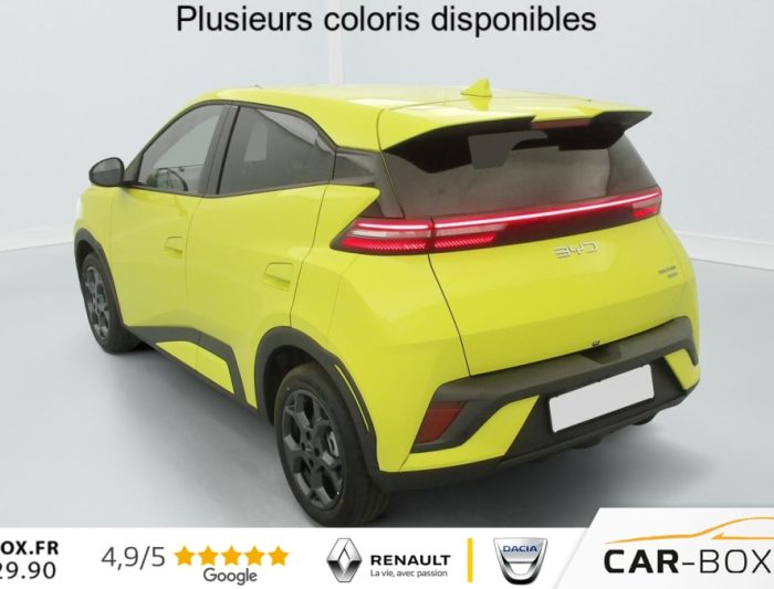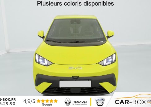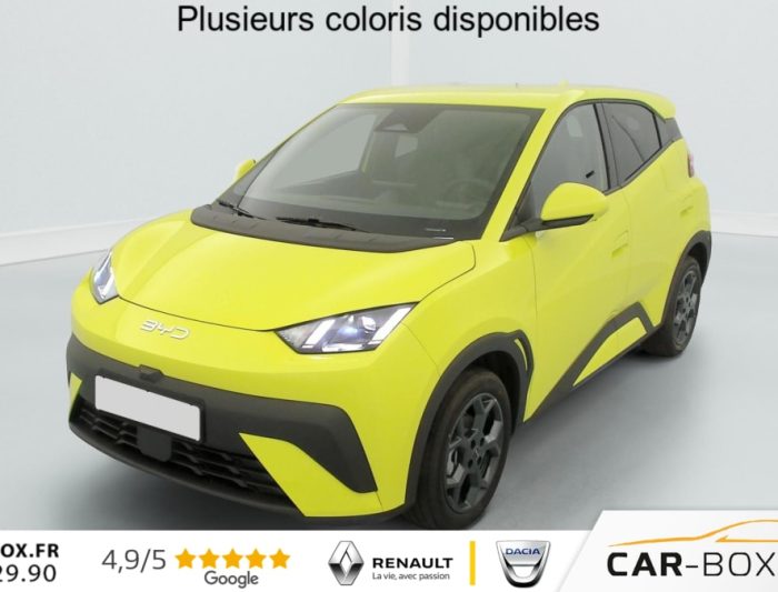 Temps de recharge (avec chargeur rapide) de 10% à 80% seulement en 30 minutes, de 30% à 80% en 22 minutes : option incluse (valeur : 0 Eur TTC), Peinture métallisée : option incluse (valeur : 0 Eur TTC), Navigation, ISOFIX and i-Size, front passenger and outer rear seats, Auto Hold, Keyless entry & keyless start, Android Auto et Apple CarPlay, Ecran tactile rotatif électrique 10,1", Chargeur embarqué 11 kW, Sortie électrique 12 V, Jantes en alliage 16", 2 x clé intelligente, Caméra de vue à 360°, Tableau de bord 7", Régulateur de vitesse adaptatif (ACC) et régulateur de vitesse intelligent (ICC), Système anti bloquage (ABS), Système audio, 4 HP, Freinage d'urgence automatique (AEB), Automat à fonction continue, Verrouillage centralisé, Service Cloud - Appli BYD, Arrêt confort (CST), DAB+ et FM, Siège conducteur, réglable électriquement, 6 directions, Siège conducteur chauffant, Vitre côté conducteur, à impulsion et avec fonction anti-pincement, Airbag conducteur, Modes du conduite: Eco, Normal, Sport, Snow, Frein de stationnement électrique (EPB), Distribution électronique de la force de freinage (EBD), Système de stabilisation éléctronique (ESP), Appel d'urgence, Aide d'urgence au maintien dans la voie (ELKA), Eclairages de sol par les rétroviseurs extérieurs, Rétroviseurs extérieurs, réglables électriquement, rabattables électriquement, chauffants, Follow me home, Avertissement prédictif de collision (PCW), Accoudoir central AV, 2 porte-gobelets, Siège passager AV, réglable électriquement, 4 directions, Siège passager AV, chauffant, Airbag passager AV, contacteur de désactivation, Pare-soleil AV avec éclairage du miroir, Airbags latéraux AV, Ports USB AV, 1 x 18 W type C, 1 x 60 W type C, Pare-brise AV, essuie-glaces à détection de pluie, Gestion de la fatigue du conducteur (DFM) indirecte, Contrôle intelligent des feux de route (IHBC), Freinage intelligent (IPB), Contrôle de limite de vitesse intelligent (ISLC), Commande vocale intelligente - "Hi, BYD", Sellerie, similicuir vegan (Noir& Gris) : option incluse (valeur : 0 Eur TTC), Feux de jour à LED, Assistance au franchissement de ligne (LDA), Lampes de lecture AV à LED, Phares à LED, allumage/extinction automatique, Feux AR à LED, Climatisation manuelle, Sécurité enfant mécanique, Volant multifonction, cuir vegan, Connectivité 4G à bord, Direction assistée, Ceintures de sécurité AV pré-tendues et limitatrices d'effort, Feux antibrouillard AR, Radars de stationnement AR, Vitres AR et lunette AR, verre teinté, Airbags rideaux latéraux, Chargement sans fil pour smartphone, 15 W, Sièges AR rabattables divisés, 50:50, Système de contrôle de traction (TCS), Reconnaissance des panneaux de signalisation (TSR), Système de surveillance de la pression des pneus (TPMS)
