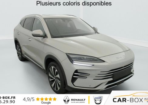 Câbles d'alimentation charge domestique & rapide : option incluse (valeur : 0 Eur TTC), Sellerie similicuir vegan (Black) : option incluse (valeur : 0 Eur TTC), 125 km d'autonomie 100% électrique (cycle mixte WLTP) avec une autonomie totale de plus de 1100 km 177 km d'autonomie 100% électrique en ville (EAER City) : option incluse (valeur : 0 Eur TTC), Hayon électrique, Barres de toit en aluminium, Feux AR à LED, Feux de jour à LED, Eclairages de sol par les rétroviseurs extérieurs, Tablette AR du coffre, Sortie électrique 12V, Sièges AR rabattables séparément - 40:60, Lampe de lecture à LED AV, Lampe de lecture à LED latérale AR, 4 x lève-vitre à impulsion avec fonction anti-pincement, Rétroviseur à atténuation automatique, Ecran tactile rotatif électrique 15,6", Airbag conducteur, Airbag passager AV avec contacteur de désactivation, Airbag central AV, Airbag latéral AV, Détection d'angle mort (BSD), Système antipatinage (TCS), Distribution électronique de la force de freinage (EBD), Arrêt confort (CST), Contrôle de descente en pente (HDC), Avertissement d'ouverture de porte (DOW), Régulateur de vitesse adaptatif (ACC) et régulateur de vitesse intelligent (ICC), Reconnaissance des panneaux de signalisation (TSR), Avertissement de collision AV (FCW), Freinage d'urgence automatique (AEB), Avertissement de collision AR (RCW), Assistance au maintien sur la voie (LKA), Assistance au changement de voie (LCA), Verrouillage de sécurité enfant mécanique, Chargeur embarqué 11 kW (OBC), Phares à LED avec allumage/extinction automatique, Eclairage d'accueil dynamique, Siège conducteur avec appuie-tête intégré, Siège passager AV avec ventilation et chauffage, Siège passager AV avec appuie-tête intégré, Tableau de bord LCD 12,3" tout TFT, Affichage tête haute (HUD), Système de verrouillage automatique, Système antivol, Avertissement de sortie de voie (LDW), Peinture métallisée : option incluse (valeur : 1 100 Eur TTC), Assistance hydraulique au freinage (HBA), Volant multifonction similicuir vegan, Contrôle de la dynamique du véhicule (VDC), Contrôle de maintien en côte (HHC), Décélération contrôlée pour frein de stationnement (CDP), Feux antibrouillard AR, Eclairage d'accompagnement (fonction d'allumage anticipé et d'extinction différée des phares), Caméra à 360°, Frein de stationnement électronique (EPB), Alerte de trafic transversal AV (FCTA) et freinage en cas de trafic transversal AV (FCTB), Alerte de trafic transversal AR (RCTA) et freinage en cas de trafic transversal AR (RCTB), Apple CarPlay / Android Auto, Assistance feux de route (HMA), Toit ouvrant panoramique avec fonction anti-pincement, avec pare-soleil à réglage électrique, Jantes en alliage 19" bicolores avec pneus 235/50 R19, Rétroviseurs extérieurs réglables électriquement, rabattables électriquement, chauffants, Pare-brise AV, protection anti-UV, isolation thermique, insonorisation, Pare-brise AV, essuie-glaces a détection de pluie, Vitres AR et lunette AR, vitrage surteinté, Volant chauffant, Siège conducteur, réglable électriquement, 8 directions, mémoire de position, Siège conducteur, ventilé, chauffant, réglage mémorisé, Siège passager AV réglable éclectriquement, 4 directions, Sièges AR, appuie-tête réglable manuellement, Eclairage ambiant, multicolore, réagissant au rythme, Eclairages de sol de siège AV, Eclairages de porte AV à LED, Pare-soleil AV avec éclairage du miroir, Bouches d'aération AR, Accoudoir central AV, 2 porte-gobelet, Accoudoir AR, 2 porte-gobelets, DAB+ & FM, Système audio Infinity à 10 HP, Commande vocale intelligente - "Hi, BYD", Service Cloud - Appli BYD, Ports USB AV, 1 x 18 W type C, 1 x 60 W type C, Ports USB AR, 2 x 18 W type C, Charge sans fil de smartphone 2x15W, Airbags rideaux, Ceinture de sécurité AV avec prétensionneur et limiteur de force, Ceinture de sécurité à limitation de force de siége AR Médian, ISOFIX et i-Size, siège passager AV et sièges AR externes, Système de surveillance de la pression des pneus (TPMS), Détection de présence d'enfant (CPD), Appel d'urgence, Modes de conduite : Eco, Normal, Sport, Neige, 2 x clé intelligente, Accès et démarrage sans clé, Radars de stationnement AV/AR, Détection de la fatigue du conducteur (DFM) indirecte, Régulateur de limite de vitesse intelligent (ISLC), Assistance d'urgence au maintien dans la voie (ELKA), Avertissement prédictif de collision (PCW), Assistance à la sortie de voie (LDA), Prévention de sortie de voie (LDP), Fonction Auto Hold du freinage, Servo-frein hydraulique (HBB), Système de contrôle anti-renversement (RMI), Système de priorité au freinage sur les pédales (BOS), Fonction Véhicule à chargement (V2L)