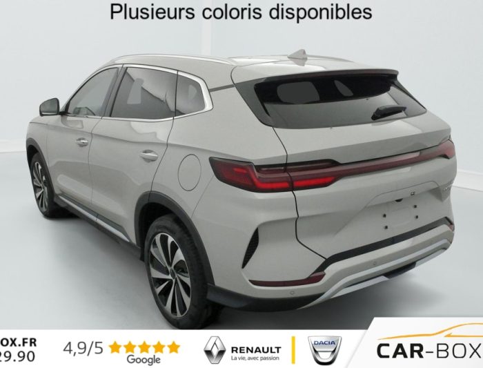 Hors frais de dossier1.5L DM-I 218 CH PHEV COMFORT, hybride, gris, 01/09/2025, Câbles d’alimentation charge domestique & rapide : option incluse (valeur : 0 Eur TTC), Sellerie similicuir vegan (Black & Brown) : option incluse (valeur : 0 Eur TTC), 125 km d’autonomie 100% électrique (cycle mixte WLTP) avec une autonomie totale de plus de 1100 km 177 km d’autonomie 100% électrique en ville (EAER City) : option incluse (valeur : 0 Eur TTC), Hayon électrique, Barres de toit en aluminium, Feux AR à LED, Feux de jour à LED, Eclairages de sol par les rétroviseurs extérieurs, Tablette AR du coffre, Sortie électrique 12V, Sièges AR rabattables séparément – 40:60, Lampe de lecture à LED AV, Lampe de lecture à LED latérale AR, 4 x lève-vitre à impulsion avec fonction anti-pincement, Rétroviseur à atténuation automatique, Ecran tactile rotatif électrique 15, 6", Airbag conducteur, Airbag passager AV avec contacteur de désactivation, Airbag central AV, Airbag latéral AV, Détection d’angle mort (BSD), Système antipatinage (TCS), Distribution électronique de la force de freinage (EBD), Arrêt confort (CST), Contrôle de descente en pente (HDC), Avertissement d’ouverture de porte (DOW), Régulateur de vitesse adaptatif (ACC) et régulateur de vitesse intelligent (ICC), Reconnaissance des panneaux de signalisation (TSR), Avertissement de collision AV (FCW), Freinage d’urgence automatique (AEB), Avertissement de collision AR (RCW), Assistance au maintien sur la voie (LKA), Assistance au changement de voie (LCA), Verrouillage de sécurité enfant mécanique, Chargeur embarqué 11 kW (OBC), Phares à LED avec allumage/extinction automatique, Eclairage d’accueil dynamique, Siège conducteur avec appuie-tête intégré, Siège passager AV avec ventilation et chauffage, Siège passager AV avec appuie-tête intégré, Tableau de bord LCD 12, 3" tout TFT, Affichage tête haute (HUD), Système de verrouillage automatique, Système antivol, Avertissement de sortie de voie (LDW), Peinture métallisée : option incluse (valeur : 1 100 Eur TTC), Assistance hydraulique au freinage (HBA), Volant multifonction similicuir vegan, Contrôle de la dynamique du véhicule (VDC), Contrôle de maintien en côte (HHC), Décélération contrôlée pour frein de stationnement (CDP), Feux antibrouillard AR, Eclairage d’accompagnement (fonction d’allumage anticipé et d’extinction différée des phares), Caméra à 360°, Frein de stationnement électronique (EPB), Alerte de trafic transversal AV (FCTA) et freinage en cas de trafic transversal AV (FCTB), Alerte de trafic transversal AR (RCTA) et freinage en cas de trafic transversal AR (RCTB), Apple CarPlay / Android Auto, Assistance feux de route (HMA), Toit ouvrant panoramique avec fonction anti-pincement, avec pare-soleil à réglage électrique, Jantes en alliage 19" bicolores avec pneus 235/50 R19, Rétroviseurs extérieurs réglables électriquement, rabattables électriquement, chauffants, Pare-brise AV, protection anti-UV, isolation thermique, insonorisation, Pare-brise AV, essuie-glaces a détection de pluie, Vitres AR et lunette AR, vitrage surteinté, Volant chauffant, Siège conducteur, réglable électriquement, 8 directions, mémoire de position, Siège conducteur, ventilé, chauffant, réglage mémorisé, Siège passager AV réglable éclectriquement, 4 directions, Sièges AR, appuie-tête réglable manuellement, Eclairage ambiant, multicolore, réagissant au rythme, Eclairages de sol de siège AV, Eclairages de porte AV à LED, Pare-soleil AV avec éclairage du miroir, Bouches d’aération AR, Accoudoir central AV, 2 porte-gobelet, Accoudoir AR, 2 porte-gobelets, DAB+ & FM, Système audio Infinity à 10 HP, Commande vocale intelligente – "Hi, BYD", Service Cloud – Appli BYD, Ports USB AV, 1 x 18 W type C, 1 x 60 W type C, Ports USB AR, 2 x 18 W type C, Charge sans fil de smartphone 2x15W, Airbags rideaux, Ceinture de sécurité AV avec prétensionneur et limiteur de force, Ceinture de sécurité à limitation de force de siége AR Médian, ISOFIX et i-Size, siège passager AV et sièges AR externes, Système de surveillance de la pression des pneus (TPMS), Détection de présence d’enfant (CPD), Appel d’urgence, Modes de conduite : Eco, Normal, Sport, Neige, 2 x clé intelligente, Accès et démarrage sans clé, Radars de stationnement AV/AR, Détection de la fatigue du conducteur (DFM) indirecte, Régulateur de limite de vitesse intelligent (ISLC), Assistance d’urgence au maintien dans la voie (ELKA), Avertissement prédictif de collision (PCW), Assistance à la sortie de voie (LDA), Prévention de sortie de voie (LDP), Fonction Auto Hold du freinage, Servo-frein hydraulique (HBB), Système de contrôle anti-renversement (RMI), Système de priorité au freinage sur les pédales (BOS), Fonction Véhicule à chargement (V2L)