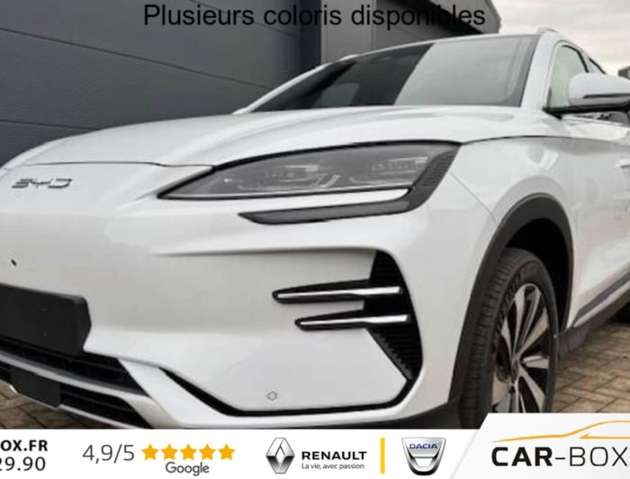 Acces et demarrage sans cle, Accoudoir arriere avec 2 porte-gobelets, Accoudoir central avant avec 2 porte-gobelet, Airbag central avant, Airbag conducteur, Airbag passager avant avec contacteur de desactivation, Airbags lateraux avant, Airbags rideaux, Alerte de trafic transversal arriere (RCTA) et freinage en cas de trafic transversal arriere (RCTB), Alerte de trafic transversal avant (FCTA) et freinage en cas de trafic transversal avant (FCTB), Appel d'urgence, Apple CarPlay/Android Auto, Arret confort (CST), Assistance a la sortie de voie (LDA), Assistance au changement de voie (LCA), Assistance au maintien sur la voie (LKA), Assistance d'urgence au maintien dans la voie (ELKA), Assistance feux de route (HMA), Assistance hydraulique au freinage (HBA), Avertissement de collision arriere (RCW), Avertissement de collision avant (FCW), Avertissement de sortie de voie (LDW), Avertissement d'ouverture de porte (DOW), Avertissement predictif de collision (PCW), Bouches d'aeration arriere, Camera a 360, Ceinture de securite a limitation de force de siege arriere Median, Ceinture de securite arriere externes a pretensionneur, Ceinture de securite avant avec pretensionneur et limiteur de force, Chargeur embarque 11 kW (OBC), Commande de climatisation a double zone, Commande vocale intelligente - ''Hi, BYD'', Connectivite 4G embarquee, Controle de descente en pente (HDC), Controle de la dynamique du vehicule (VDC), Controle de maintien en cote (HHC), DAB+ & FM, Deceleration controlee pour frein de stationnement (CDP), Detection d'angle mort (BSD), Detection de la fatigue du conducteur (DFM) indirecte, Detection de presence d'enfant (CPD), Distribution electronique de la force de freinage (EBD), Eclairage d'accompagnement (fonction d'allumage anticipe et d'extinction differee des phares), Eclairage d'ambiance monochrome, Eclairage de coffre, Eclairages de porte avant a LED, Eclairages de sol de siege avant, Eclairages de sol par les retroviseurs exterieurs, Ecran tactile rotatif electrique 12,8'', Feux antibrouillard arriere, Feux arriere a LED, Feux de jour a LED, Filtre a air PM2.5, Fonction Vehicule a chargement (V2L), Frein de stationnement electronique (EPB), Freinage d'urgence automatique (AEB), Indicateur de charge a LED, Jantes en alliage 19'' bicolores avec pneus 235/50 R19, Lampe de lecture a LED avant et laterale arriere, Maintien automatique, Modes de conduite : Eco, Normal, Sport, Neige, Pare-brise avant, protection anti-UV, isolation thermique, insonorisation, Pare-soleil avant avec eclairage du miroir, Phares a LED avec allumage/extinction automatique, Pompe a chaleur, Ports USB arriere 2 x 18 W type C, Ports USB avant 1 x 18 W type C, 1 x 60 W type C, Prevention de sortie de voie (LDP), Radars de stationnement arriere, Radars de stationnement avant, Reconnaissance des panneaux de signalisation (TSR), Regulateur de limite de vitesse intelligent (ISLC), Regulateur de vitesse adaptatif (ACC) et regulateur de vitesse intelligent (ICC), Retroviseur a attenuation automatique, Retroviseurs exterieurs reglables electriquement, rabattables electriquement, chauffants, Service Cloud - Appli BYD, Servo-frein hydraulique (HBB), Siege conducteur avec appuie-tete integre, Siege conducteur, reglable electriquement, 8 directions, memoire de position, Siege conducteur, ventile, chauffant, reglage memorise, Siege passager avant avec appuie-tete integre, Siege passager avant reglable eclectriquement, 4 directions, Sieges arriere appuie-tete reglable manuellement, Sieges arriere rabattables separement 40:60, Sieges avant avec ventilation et chauffage, Sortie electrique 12V, Systeme antipatinage (TCS), Systeme antivol, Systeme audio, 9 HP, Systeme de controle anti-renversement (RMI), Systeme de priorite au freinage sur les pedales (BOS), Systeme de surveillance de la pression des pneus (TPMS), Systeme de verrouillage automatique, Systeme Isofix, Tableau de bord LCD 12,3'' tout TFT, Tablette arriere du coffre, Toit ouvrant panoramique avec fonction anti-pincement, avec pare-soleil a reglage electrique, Vitres et lunette arriere vitrage surteintees, Volant chauffant, 2 x cle intelligente, 4 x leve-vitre a impulsion avec fonction anti-pincement