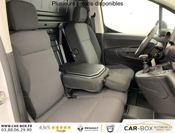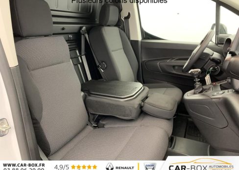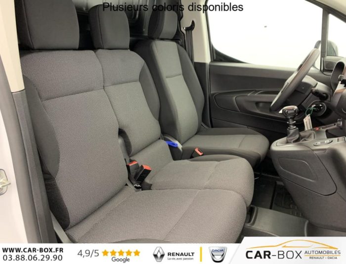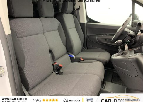 Allumage automatique des feux de croisement, Lève-vitres AV électriques, Détection de sous-gonflage, Capucine, Porte latérale coulissante droite, Commutation automatique des feux de route, Direction assistée, Cloison pleine fixe, Essuie-vitres AV Magic Wash, Volant multifonctions, Frein de stationnement électrique, Portes AR battantes 60/40 tôlées avec ouverture à 180°, Rétroviseurs extérieurs électriques et chauffants, Régulateur - limiteur de vitesse, Climatisation manuelle, Teinte de caisse opaque : option incluse (valeur : 0 Eur TTC), Garnissage Tissus Curitiba Triton Meltem, ABS, AFU, ASR et ESP avec aide au démarrage en pente, Airbags conducteur et passager: frontaux, latéraux et rideaux, Siège passager individuel réglable en inclinaison, appuis tête réglable en hauteur, Connect Box avec Pack SOS, Pack Safety : Reconnaissance des panneaux de vitesse Alerte risque collision & Freinage d'urgence Détection & Alerte somnolence Alerte franchissement de ligne avec correction, Siège conducteur avec réglage en longueur et dossier inclinable, Roue de secours : option incluse (valeur : 192 Eur TTC), Boîte manuelle 6 vitesses, Contrôle de traction (TCS), Condamnation centralisée avec plip HF + 1 clé, Feux EcoLED : feux de route et feux de croisement, Pack Premium Connect : Lève-vitres AV électriques séquentiels Rétroviseurs extérieurs rabattables électriquement Coques de rétroviseurs extérieurs Noir Brillant Revêtement de sol en TPO dans l'habitacle Rangement fermé derrière le combiné côté conducteur Essuie-vitre automatique avec capteur de pluie Isolation acoustique renforcée Boite à gants fermée en partie basse côté passager Projecteurs antibrouillard AV Siège conducteur confort sans accoudoir (réglage en hauteur et réglage lombaire) Cabine Extenso - Banquette passager 2 places - Dossier place centrale rabattable (fonction accoudoir) avec tablette écritoire orientable et rangement sous assise - Place latérale escamotable avec trappe et housse de protection pour charge longue Combiné numérique 10'' couleur Navigation et radio DAB sur tablette tactile 10" couleur HD avec Mirroring Wifi, reconnaissance vocale, Android Auto et Apple CarPlay, Cartographie Europe, ports USB Type-C Pack 3 caméras + Rétroviseur numérique HD + Surveillance D'angles morts Radars AV et latéral, Aide au stationnement AR avec caméra HD, surveillance d'angles morts, vue latérale passager avec caméra SD Boîte à gants Top Box réfrigérée : option incluse (valeur : 2 280 Eur TTC), Jantes tôle 15'' grises avec pneumatiques 195/65 R15 95H -RENFORCE, Volant réglable en hauteur et en profondeur