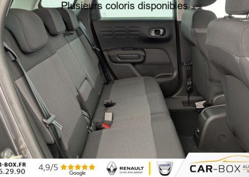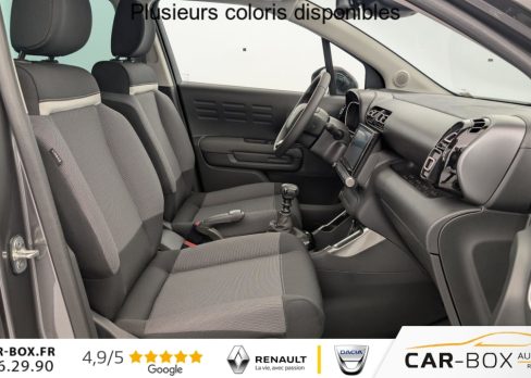 Hors frais de dossierPureTech 110 S BVM6 Shine Pack, essence, gris, 27/07/2023, Kit mains libres Bluetooth et prise USB, Détection de sous-gonflage, ABS avec REF, AFU et ESP, Airbags frontaux AV, latéraux AV et rideaux, Volant croûte de cuir, Feux diurnes à LED, Aide au stationnement AR, Accès et démarrage mains libres, Allumage automatique des feux, Barres de toit Noir Brillant, Banquette AR coulissante, Pack Safety – Active Safety Brake – Alerte active de Franchissement Involontaire de Ligne – Alerte Attention Conducteur – Alerte Risque Collision – Coffee Break Alert – Reconnaissance des panneaux de vitesse et recommandation – Régulateur-limiteur de vitesse – Témoin de non-bouclage des ceintures de sécurité conducteur et passagers : Alerte de Franchissement Involontaire de ligne (AFIL) Coffee Break Alert Témoin de non-bouclage des ceintures de sécurité conducteur et passagers Reconnaissance des panneaux de vitesse et recommandation, Lève-vitres AV et AR électriques et séquentiels, Sabots de protection AV et AR Gris Anthra, Direction assistée, Toit Noir Perla Nera, Pack Safety 2 : Alerte attention conducteur Commutation automatique des feux de route : option incluse (valeur : 200 Eur TTC), Garnissage Tissu Mica Grey, Projecteurs LED, Système audio numérique (DAB) MP3 6 HP, Plancher de coffre escamotable, Active Safety Brake, Projecteurs antibrouillard LED avec éclairage statique d’intersection, Elargisseurs d’ailes et bas de caisse Noir Mat, Jantes alliage 17", Frein à main avec insert chrome, Prise 12 V à l’AR de console centrale, Rétroviseurs extérieurs rabattables électriquement avec éclairage de seuil, Pack Color Shiny Black : Vitrages AR surteintés sauf vitres de custode avec animation Chrome Coques de rétroviseurs extérieurs Noir Brillant, Prise 12 V en AV de console centrale, Ordinateur de bord, Teinte de caisse métallisée bi-ton : option incluse (valeur : 600 Eur TTC), My Citroën Drive : Citroën Connect Nav sur tablette tactile 9" Comprend le système de navigation TomTom, la reconnaissance vocale, Enjoliveurs de projecteurs Noir Onyx Brillant, My Citroën Play – Mirror Screen – Système audio numérique (DAB) – Tablette tactile 9", Pack City Caméra : Caméra de recul avec Top Rear Vision, Pack Auto : Essuie-vitre AV automatique (capteur de pluie) Climatisation automatique, Rétroviseur intérieur électrochrome, Système Stop & Start, Aide au démarrage en pente, Condamnation centralisée avec 2 PLIP HF, Poignées de portes extérieures couleur caisse, Rehausse de siège conducteur, Banquette AR fractionnable 2/3 – 1/3, Kit de dépannage provisoire de pneumatiques