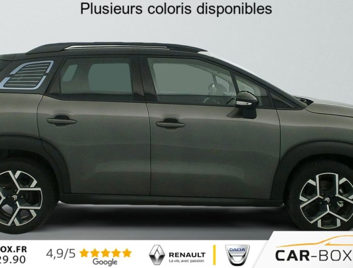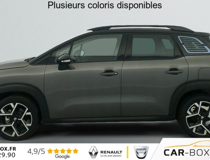 Hors frais de dossierPureTech 110 S BVM6 Shine Pack, essence, gris, 27/07/2023, Kit mains libres Bluetooth et prise USB, Détection de sous-gonflage, ABS avec REF, AFU et ESP, Airbags frontaux AV, latéraux AV et rideaux, Volant croûte de cuir, Feux diurnes à LED, Aide au stationnement AR, Accès et démarrage mains libres, Allumage automatique des feux, Barres de toit Noir Brillant, Banquette AR coulissante, Pack Safety – Active Safety Brake – Alerte active de Franchissement Involontaire de Ligne – Alerte Attention Conducteur – Alerte Risque Collision – Coffee Break Alert – Reconnaissance des panneaux de vitesse et recommandation – Régulateur-limiteur de vitesse – Témoin de non-bouclage des ceintures de sécurité conducteur et passagers : Alerte de Franchissement Involontaire de ligne (AFIL) Coffee Break Alert Témoin de non-bouclage des ceintures de sécurité conducteur et passagers Reconnaissance des panneaux de vitesse et recommandation, Lève-vitres AV et AR électriques et séquentiels, Sabots de protection AV et AR Gris Anthra, Direction assistée, Toit Noir Perla Nera, Pack Safety 2 : Alerte attention conducteur Commutation automatique des feux de route : option incluse (valeur : 200 Eur TTC), Garnissage Tissu Mica Grey, Projecteurs LED, Système audio numérique (DAB) MP3 6 HP, Plancher de coffre escamotable, Active Safety Brake, Projecteurs antibrouillard LED avec éclairage statique d’intersection, Elargisseurs d’ailes et bas de caisse Noir Mat, Jantes alliage 17", Frein à main avec insert chrome, Prise 12 V à l’AR de console centrale, Rétroviseurs extérieurs rabattables électriquement avec éclairage de seuil, Pack Color Shiny Black : Vitrages AR surteintés sauf vitres de custode avec animation Chrome Coques de rétroviseurs extérieurs Noir Brillant, Prise 12 V en AV de console centrale, Ordinateur de bord, Teinte de caisse métallisée bi-ton : option incluse (valeur : 600 Eur TTC), My Citroën Drive : Citroën Connect Nav sur tablette tactile 9" Comprend le système de navigation TomTom, la reconnaissance vocale, Enjoliveurs de projecteurs Noir Onyx Brillant, My Citroën Play – Mirror Screen – Système audio numérique (DAB) – Tablette tactile 9", Pack City Caméra : Caméra de recul avec Top Rear Vision, Pack Auto : Essuie-vitre AV automatique (capteur de pluie) Climatisation automatique, Rétroviseur intérieur électrochrome, Système Stop & Start, Aide au démarrage en pente, Condamnation centralisée avec 2 PLIP HF, Poignées de portes extérieures couleur caisse, Rehausse de siège conducteur, Banquette AR fractionnable 2/3 – 1/3, Kit de dépannage provisoire de pneumatiques