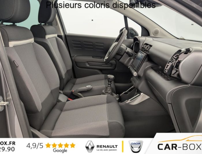 Kit mains libres Bluetooth et prise USB, Détection de sous-gonflage, ABS avec REF, AFU et ESP, Airbags frontaux AV, latéraux AV et rideaux, Volant croûte de cuir, Feux diurnes à LED, Aide au stationnement AR, Accès et démarrage mains libres, Allumage automatique des feux, Barres de toit Noir Brillant, Banquette AR coulissante, Pack Safety - Active Safety Brake - Alerte active de Franchissement Involontaire de Ligne - Alerte Attention Conducteur - Alerte Risque Collision - Coffee Break Alert - Reconnaissance des panneaux de vitesse et recommandation - Régulateur-limiteur de vitesse - Témoin de non-bouclage des ceintures de sécurité conducteur et passagers : Alerte de Franchissement Involontaire de ligne (AFIL) Coffee Break Alert Témoin de non-bouclage des ceintures de sécurité conducteur et passagers Reconnaissance des panneaux de vitesse et recommandation, Lève-vitres AV et AR électriques et séquentiels, Sabots de protection AV et AR Gris Anthra, Direction assistée, Toit Noir Perla Nera, Pack Safety 2 : Alerte attention conducteur Commutation automatique des feux de route : option incluse (valeur : 200 Eur TTC), Garnissage Tissu Mica Grey, Projecteurs LED, Système audio numérique (DAB) MP3 6 HP, Plancher de coffre escamotable, Active Safety Brake, Projecteurs antibrouillard LED avec éclairage statique d'intersection, Elargisseurs d'ailes et bas de caisse Noir Mat, Jantes alliage 17" , Frein à main avec insert chrome, Prise 12 V à l'AR de console centrale, Rétroviseurs extérieurs rabattables électriquement avec éclairage de seuil, Pack Color Shiny Black : Vitrages AR surteintés sauf vitres de custode avec animation Chrome Coques de rétroviseurs extérieurs Noir Brillant, Prise 12 V en AV de console centrale, Ordinateur de bord, Teinte de caisse métallisée bi-ton : option incluse (valeur : 600 Eur TTC), My Citroën Drive : Citroën Connect Nav sur tablette tactile 9" Comprend le système de navigation TomTom, la reconnaissance vocale, Enjoliveurs de projecteurs Noir Onyx Brillant, My Citroën Play - Mirror Screen - Système audio numérique (DAB) - Tablette tactile 9", Pack City Caméra : Caméra de recul avec Top Rear Vision, Pack Auto : Essuie-vitre AV automatique (capteur de pluie) Climatisation automatique, Rétroviseur intérieur électrochrome, Système Stop & Start, Aide au démarrage en pente, Condamnation centralisée avec 2 PLIP HF, Poignées de portes extérieures couleur caisse, Rehausse de siège conducteur, Banquette AR fractionnable 2/3 - 1/3, Kit de dépannage provisoire de pneumatiques