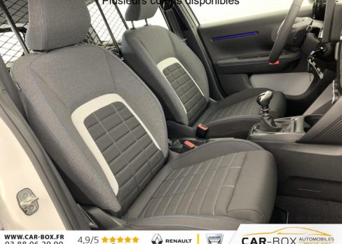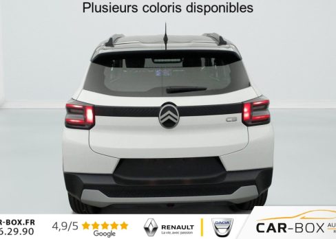 Détection de sous-gonflage, Feux diurnes à LED, Aide au démarrage en pente, Climatisation, Tablette AR cache-bagages, Barres de toit Noir Brillant, Témoin de non-bouclage des ceintures de sécurité conducteur et passagers, Coques de rétroviseurs extérieurs Noir Brillant, Direction assistée, Projecteurs LED, ABS, AFU, ESP, REF, Poignées de portes extérieures Noir Brillant, Recharge sans fil pour smartphone, Suspension Citroën Advanced Comfort, Teinte de caisse opaque : option incluse (valeur : 0 Eur TTC), Boîtier télématique : Appel d'urgence et Citroën Assistance Comprend les services Connect ONE pendant une période de 10 ans, 1 Prise USB-C sur la planche de bord + 2 USB type C en rang 2 (charge rapide 3A)), Citroën Head up Display (affichage tête haute) - TFT, Lève-vitres AV électriques (descente séquentielle), Navigation 3D sur écran 10,25' tactile Apple CarPlay et Android Auto sans fil, Système audio 6 HP (DAB), Commande de la radio sur le volant, Sabots AV et AR, Volant Gainé, Enjoliveur 17" AZURITE, Garnissage Tissu Noir / tissu Asphalt avec Ambiance Urban Grey + Sièges Advanced Comfort - comprend les décors sur les panneaux de portes AV/AR et sur la planche de bord Ultra Blue, le siège conducteur réglable en hauteur, les appui-têtes AV réglables en hauteur, les accoudoirs de porte AV et AR recouverts de textile moussé avec étiquettes « Happy Tags » (messages positifs), et des poches aumônières au dos des sièges AV, Pack Safety : Alerte de Franchissement Involontaire de ligne (AFIL) Régulateur - limiteur de vitesse Alerte attention conducteur Reconnaissance des panneaux de signalisation Active Safety Brake (Freinage automatique d'urgence), Boîte manuelle 6 vitesses, Toit bi-ton Noir Perla Nera : option incluse (valeur : 300 Eur TTC), TCS (Contrôle de la traction), Siège conducteur réglable en hauteur, Volant réglable en hauteur et en profondeur, Essuie-vitres AV automatique (capteur de pluie), Aide au stationnement AR, Condamnation centralisée avec PLIP, Airbags frontaux, latéraux AV et rideaux, Rétroviseurs extérieurs dégivrants rabattables électriquement, Allumage automatique des feux de croisement