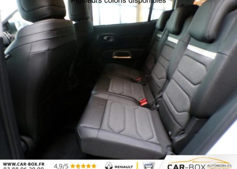 Combiné numérique 12,3, Jantes alliage 18, Navigation 3D sur écran central 10, Projecteurs antibrouillard avec éclairage statique d'intersection, Détection de sous-gonflage, Airbags frontaux AV, latéraux AV et rideaux, Volant croûte de cuir, Accès et démarrage mains libres, Feux AR 3D à LED, Aide au stationnement AR, Allumage automatique des feux de croisement, Coques de rétroviseurs extérieurs Noir Brillant, Barres de toit, Elargisseurs d'aile et bas de caisse Noir Mat, Lève-vitres AV et AR électriques et séquentiels, Vitres et lunette AR surteintées, Caméra de recul avec Top Rear Vision, Direction assistée, 3 sièges AR indépendants, coulissants, inclinables et escamotables, Enjoliveurs de contour de vitres latérales chromés, Essuie-vitres AV automatique Magic Wash, Fixations ISOFIX sur les sièges passager AV et latéraux AR, Sièges conducteur et passager réglables en hauteur, Calandre supérieure Noir Brillant, Volant réglable en hauteur et en profondeur, Custodes AR surteintées, Projecteurs LED, Plancher de coffre escamotable, Poignées de portes extérieures Noir Brillant, ABS + AFU + ESP + REF, Suspension Citroën Advanced Comfort, Siège conducteur avec réglage lombaire, Feux diurnes à LED avec clignotants à LED, Kit mains libres Bluetooth et 3 prises USB, Sabots de protection Aluminium Brillant, Rétroviseurs extérieurs rabattables électriquement avec éclairage d'accueil, Services Connect PLUS pendant 12 mois, Apple CarPlay et Android Auto, Garnissage Tissu Bruneo chine/Toile enduite Noire/Ambiance Metropolitan Black avec Sièges Advanced Comfort, Boîtier télématique : Appel d'urgence et Citroën Assistance les services Connect ONE pendant une période de 10 ans, Prise 12V sur la console centrale, Rétroviseur intérieur électrochrome, Rétroviseurs extérieurs électriques dégivrants, Boîte automatique 8 rapports, TCS (Contrôle de la traction), Verrouillage centralisé, Aide au stationnement AV, Climatisation automatique bi-zone, Frein de stationnement électrique automatique