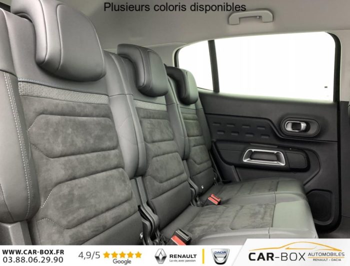 Garnissage Alcantara Noir/Toile enduite Noire/Ambiance Urban Black avec Sièges Advanced Comfort - Siège conducteur électrique (6 voies) : option incluse (valeur : 500 Eur TTC), Véhicule livré sans Kit anti crevaison ni roue de secours, Projecteurs antibrouillard avec éclairage statique d'intersection, Détection de sous-gonflage, Airbags frontaux AV, latéraux AV et rideaux, Volant croûte de cuir, Accès et démarrage mains libres, Feux AR 3D à LED, Aide au stationnement AR, Allumage automatique des feux de croisement, Coques de rétroviseurs extérieurs Noir Brillant, Barres de toit, Elargisseurs d'aile et bas de caisse Noir Mat, Lève-vitres AV et AR électriques et séquentiels, Vitres et lunette AR surteintées, Condamnation centralisée, Caméra de recul avec Top Rear Vision, Direction assistée, 3 sièges AR indépendants, coulissants, inclinables et escamotables, Enjoliveurs de contour de vitres latérales chromés, Essuie-vitres AV automatique Magic Wash, Fixations ISOFIX sur les sièges passager AV et latéraux AR, Sièges conducteur et passager réglables en hauteur, Calandre supérieure Noir Brillant, Combiné numérique 12,3" personnalisable, Volant réglable en hauteur et en profondeur, Custodes AR surteintées, Projecteurs LED, Plancher de coffre escamotable, Poignées de portes extérieures Noir Brillant, ABS + AFU + ESP + REF, Suspension Citroën Advanced Comfort, Siège conducteur avec réglage lombaire, Inserts colorés Noir Brillant sur Airbump et bouclier AV, Feux diurnes à LED avec clignotants à LED, Kit mains libres Bluetooth et 3 prises USB, Sabots de protection Aluminium Brillant, Rétroviseurs extérieurs rabattables électriquement avec éclairage d'accueil, Teinte de caisse nacrée : option incluse (valeur : 0 Eur TTC), Jantes alliage 18" PULSAR Diamantées bi-ton, Apple CarPlay et Android Auto, Navigation 3D sur écran central 10" tactile Comprend le système de navigation TomTom, la reconnaissance vocale avec langage naturel, l'interface personnalisable, et les services Connect PLUS additionnels, Boîtier télématique : Appel d'urgence et Citroën Assistance les services Connect ONE pendant une période de 10 ans, Pack Safety - Active Safety Brake - Alerte active de Franchissement Involontaire de Ligne - Coffee Break Alert - Reconnaissance étendue des panneaux et recommandation de vitesse - Régulateur-limiteur de vitesse : Régulateur-limiteur de vitesse Coffee Break Alert Alerte active de Franchissement Involontaire de ligne Active Safety Brake 2.0 Fonctionne à l'aide d'un Radar de 7 à 140 km/h, même de nuit et détecte les cyclistes Reconnaissance étendue des panneaux et recommandation de vitesse, Pack Safety + Système de surveillance d'angle mort : Système de surveillance d'angle mort, Pack Color Noir Brillant Inserts colorés Noir Brillant sur Airbump et bouclier AV : Inserts colorés Noir Brillant sur Airbump et bouclier AV, Prise 12V sur la console centrale, Pack Drive Assist Aide maintien dans la voie, Alerte Attention Conducteur, Commutation automatique des feux de route, Highway Driver Assist (système de conduite autonome de niveau 2), Régulateur de vitesse adaptatif avec fonction Stop & Go : Alerte attention conducteur Commutation automatique des feux de route Régulateur de vitesse adaptatif avec fonction Stop&Go Highway Driver Assist (système autonome de niveau 2) Aide maintien dans la voie, Rétroviseur intérieur électrochrome, Rétroviseurs extérieurs électriques dégivrants, Boîte automatique 8 rapports, TCS (Contrôle de la traction), Contrôle de la presión des pneus, Vitres électriques, Aide au stationnement AV, Climatisation automatique bizone, Frein de stationnement électrique automatique