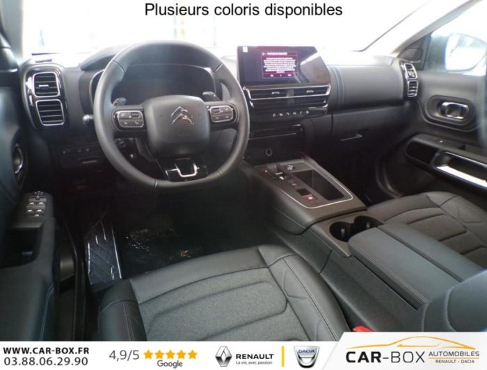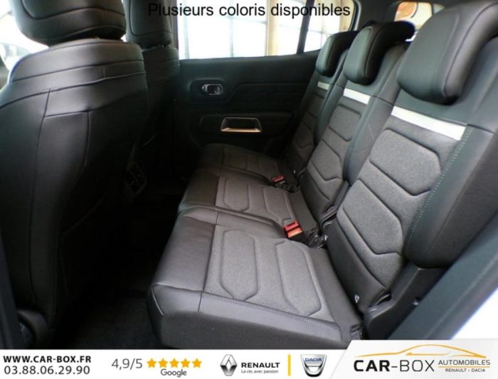 Combiné numérique 12,3, Jantes alliage 18, Navigation 3D sur écran central 10, Projecteurs antibrouillard avec éclairage statique d'intersection, Détection de sous-gonflage, Airbags frontaux AV, latéraux AV et rideaux, Volant croûte de cuir, Accès et démarrage mains libres, Feux AR 3D à LED, Aide au stationnement AR, Allumage automatique des feux de croisement, Coques de rétroviseurs extérieurs Noir Brillant, Barres de toit, Elargisseurs d'aile et bas de caisse Noir Mat, Lève-vitres AV et AR électriques et séquentiels, Vitres et lunette AR surteintées, Caméra de recul avec Top Rear Vision, Direction assistée, 3 sièges AR indépendants, coulissants, inclinables et escamotables, Enjoliveurs de contour de vitres latérales chromés, Essuie-vitres AV automatique Magic Wash, Fixations ISOFIX sur les sièges passager AV et latéraux AR, Sièges conducteur et passager réglables en hauteur, Calandre supérieure Noir Brillant, Volant réglable en hauteur et en profondeur, Custodes AR surteintées, Projecteurs LED, Plancher de coffre escamotable, Poignées de portes extérieures Noir Brillant, ABS + AFU + ESP + REF, Suspension Citroën Advanced Comfort, Siège conducteur avec réglage lombaire, Feux diurnes à LED avec clignotants à LED, Kit mains libres Bluetooth et 3 prises USB, Sabots de protection Aluminium Brillant, Rétroviseurs extérieurs rabattables électriquement avec éclairage d'accueil, Services Connect PLUS pendant 12 mois, Apple CarPlay et Android Auto, Garnissage Tissu Bruneo chine/Toile enduite Noire/Ambiance Metropolitan Black avec Sièges Advanced Comfort, Boîtier télématique : Appel d'urgence et Citroën Assistance les services Connect ONE pendant une période de 10 ans, Prise 12V sur la console centrale, Rétroviseur intérieur électrochrome, Rétroviseurs extérieurs électriques dégivrants, Boîte automatique 8 rapports, TCS (Contrôle de la traction), Verrouillage centralisé, Aide au stationnement AV, Climatisation automatique bi-zone, Frein de stationnement électrique automatique