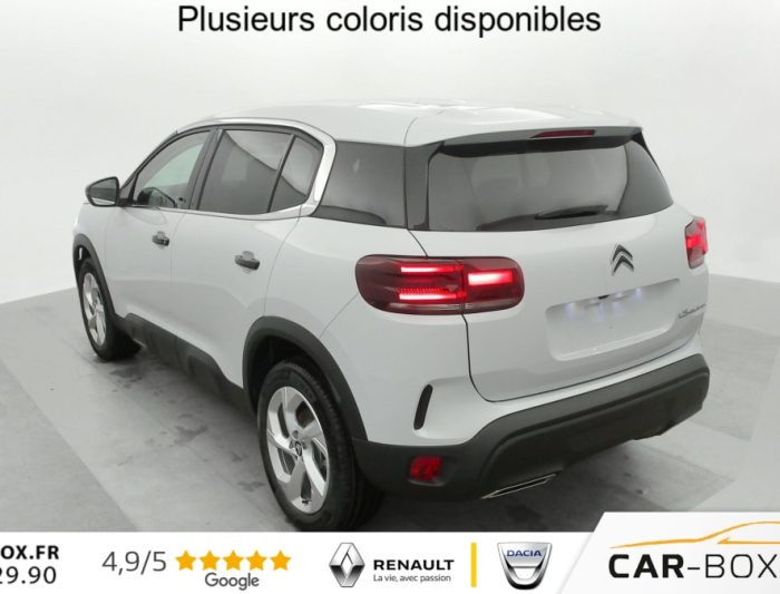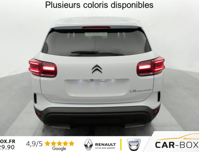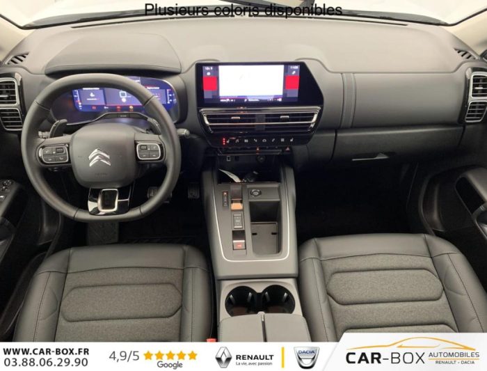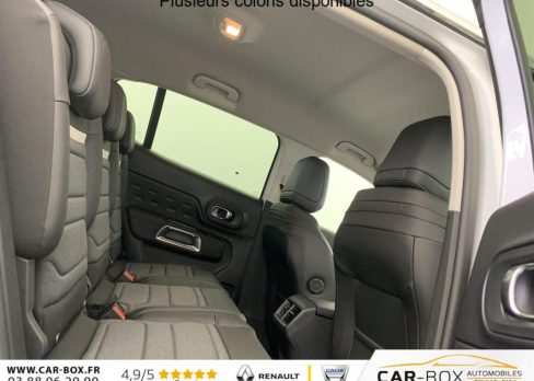 Ambiance Metropolitan Black : option incluse (valeur : 250 Eur TTC), Ni kit ni roue de secours, Sièges AV chauffants : option incluse (valeur : 250 Eur TTC), Détection de sous-gonflage, Airbags frontaux AV, latéraux AV et rideaux, Volant croûte de cuir, Démarrage mains libres, Feux AR 3D à LED, Aide au stationnement AR, Allumage automatique des feux de croisement, Coques de rétroviseurs extérieurs Noir Brillant, Elargisseurs d'aile et bas de caisse Noir Mat, Lève-vitres AV et AR électriques et séquentiels, Vitres et lunette AR surteintées, Caméra de recul avec Top Rear Vision, 3 sièges AR indépendants, coulissants, inclinables et escamotables, Enjoliveurs de contour de vitres latérales chromés, Essuie-vitres AV automatique Magic Wash, Fixations ISOFIX sur les sièges passager AV et latéraux AR, Calandre supérieure Noir Brillant, Combiné numérique 12,3" personnalisable, Volant réglable en hauteur et en profondeur, Custodes AR surteintées, Projecteurs LED, Plancher de coffre escamotable, Jantes alliage 18" SWIRL, Poignées de portes extérieures Noir Brillant, ABS + AFU + ESP + REF, Suspension Citroën Advanced Comfort, Feux diurnes à LED avec clignotants à LED, Kit mains libres Bluetooth et 3 prises USB, Sabot de protection Noir Brillant, Rétroviseurs extérieurs rabattables électriquement, Teinte de caisse métallisée : option incluse (valeur : 700 Eur TTC), Accès mains libres, Apple CarPlay et Android Auto, Navigation 3D sur écran central 10" tactile Comprend le système de navigation TomTom, la reconnaissance vocale avec langage naturel, l'interface personnalisable, et les services Connect PLUS additionnels, Boîtier télématique : Appel d'urgence et Citroën Assistance, Pack Safety - Active Safety Brake - Alerte active de Franchissement Involontaire de Ligne - Coffee Break Alert - Reconnaissance étendue des panneaux et recommandation de vitesse - Régulateur-limiteur de vitesse : Régulateur - limiteur de vitesse Coffee Break Alert Alerte active de Franchissement Involontaire de ligne Active Safety Brake 2.0 Fonctionne à l'aide d'un Radar de 7 à 140 km/h, même de nuit et détecte les cyclistes Reconnaissance étendue des panneaux et recommandation de vitesse, Pack Color Noir Brillant Inserts colorés Noir Brillant sur Airbump et bouclier AV : Inserts colorés Noir Brillant sur Airbump et bouclier AV, Rétroviseurs extérieurs électriques dégivrants, Aide au stationnement AV, Climatisation automatique bizone, Frein de stationnement électrique automatique