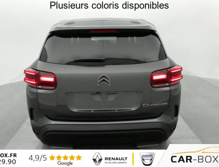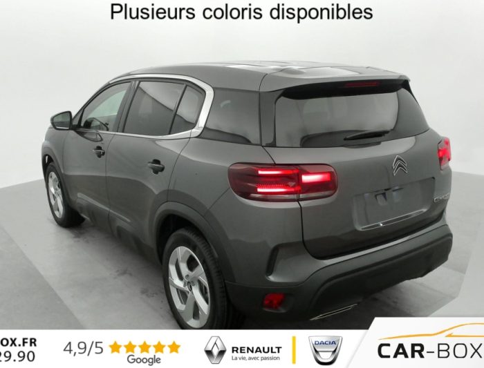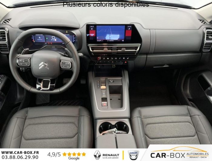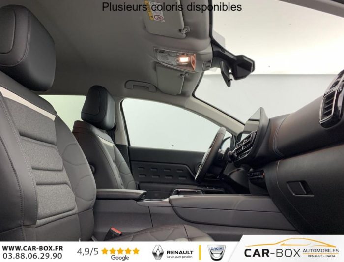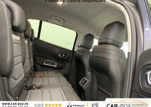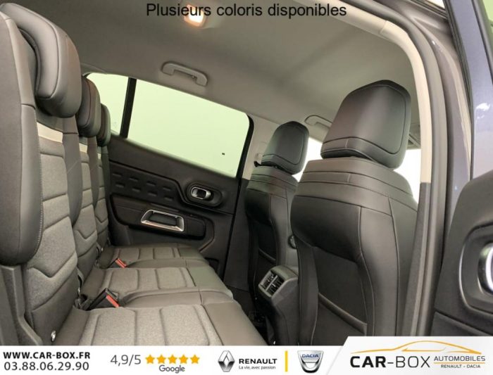 Ambiance Metropolitan Black : option incluse (valeur : 250 Eur TTC), Ni kit ni roue de secours, Sièges AV chauffants : option incluse (valeur : 250 Eur TTC), Détection de sous-gonflage, Airbags frontaux AV, latéraux AV et rideaux, Volant croûte de cuir, Démarrage mains libres, Feux AR 3D à LED, Aide au stationnement AR, Allumage automatique des feux de croisement, Coques de rétroviseurs extérieurs Noir Brillant, Elargisseurs d'aile et bas de caisse Noir Mat, Lève-vitres AV et AR électriques et séquentiels, Vitres et lunette AR surteintées, Caméra de recul avec Top Rear Vision, 3 sièges AR indépendants, coulissants, inclinables et escamotables, Enjoliveurs de contour de vitres latérales chromés, Essuie-vitres AV automatique Magic Wash, Fixations ISOFIX sur les sièges passager AV et latéraux AR, Calandre supérieure Noir Brillant, Combiné numérique 12,3" personnalisable, Volant réglable en hauteur et en profondeur, Custodes AR surteintées, Projecteurs LED, Plancher de coffre escamotable, Jantes alliage 18" SWIRL, Poignées de portes extérieures Noir Brillant, ABS + AFU + ESP + REF, Suspension Citroën Advanced Comfort, Feux diurnes à LED avec clignotants à LED, Kit mains libres Bluetooth et 3 prises USB, Sabot de protection Noir Brillant, Rétroviseurs extérieurs rabattables électriquement, Teinte de caisse métallisée : option incluse (valeur : 700 Eur TTC), Accès mains libres, Apple CarPlay et Android Auto, Navigation 3D sur écran central 10" tactile Comprend le système de navigation TomTom, la reconnaissance vocale avec langage naturel, l'interface personnalisable, et les services Connect PLUS additionnels, Boîtier télématique : Appel d'urgence et Citroën Assistance, Pack Safety - Active Safety Brake - Alerte active de Franchissement Involontaire de Ligne - Coffee Break Alert - Reconnaissance étendue des panneaux et recommandation de vitesse - Régulateur-limiteur de vitesse : Régulateur - limiteur de vitesse Coffee Break Alert Alerte active de Franchissement Involontaire de ligne Active Safety Brake 2.0 Fonctionne à l'aide d'un Radar de 7 à 140 km/h, même de nuit et détecte les cyclistes Reconnaissance étendue des panneaux et recommandation de vitesse, Pack Color Noir Brillant Inserts colorés Noir Brillant sur Airbump et bouclier AV : Inserts colorés Noir Brillant sur Airbump et bouclier AV, Rétroviseurs extérieurs électriques dégivrants, Aide au stationnement AV, Climatisation automatique bizone, Frein de stationnement électrique automatique