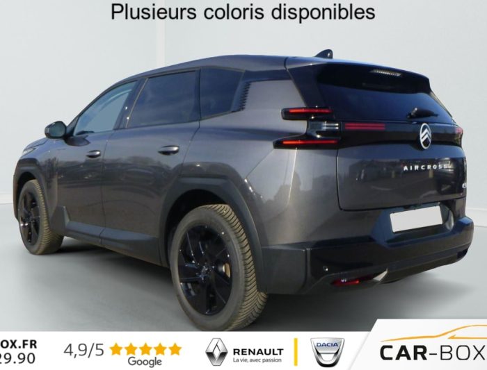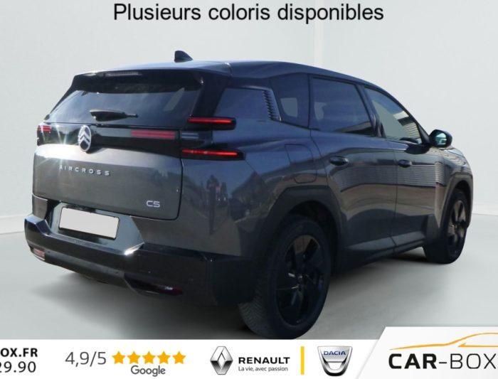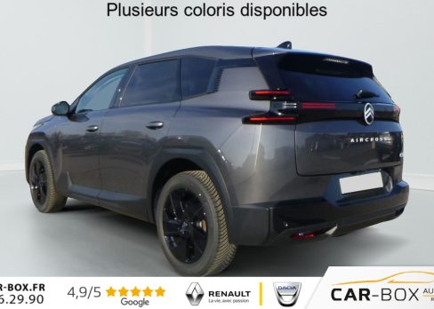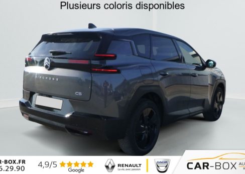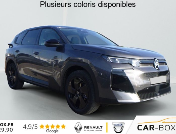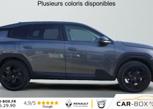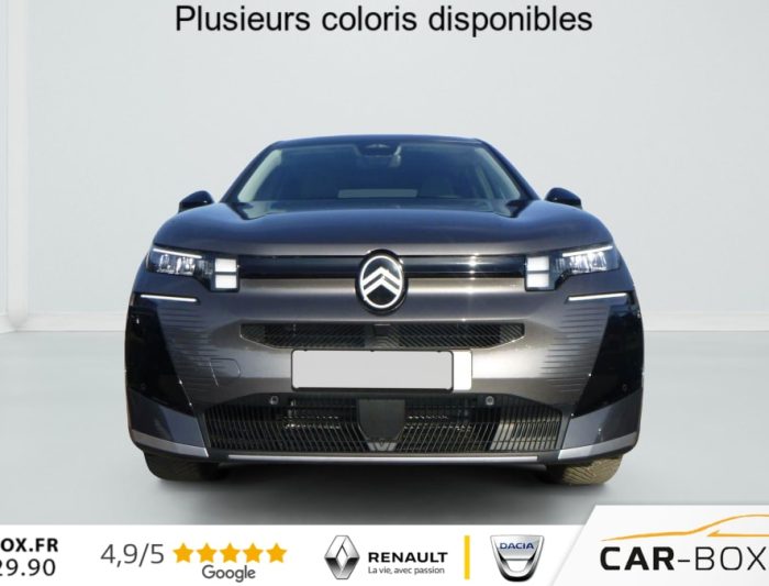 Hors frais de dossierHybride 145 ch e-DCS6 Plus, hybride, gris, 08/03/2026, ABS + AFU + ESP + REF, Acces et demarrage mains libres Proximity, Accoudoir central AV avec rangement ferme et refrigere, Aerateurs de climatisation centraux pour les passagers AR, Aide au demarrage en pente, Aide au stationnement arriere, Aide au stationnement avant avec Camera de recul 180, Airbags frontaux, lateraux avant et rideaux, Allumage automatique des feux de croisement, Appel d’urgence et d’assistance, Apple CarPlay et Android Auto sans fil, Banquette AR avec dossiers inclinables et accoudoir central, Banquette arriere avec dossier rabattable 40/20/40, Bluetooth, Climatisation automatique bi-zones, Combine numerique 10 » personnalisable, Condamnation centralisee avec PLIP, Controle de la pression des pneus, Controle de vitesse en descente, Coques de retroviseurs exterieurs Noir Brillant, Detection de sous-gonflage, Direction assistee, Eclairage d’ambiance etendu, 8 couleurs Eclairage d’ambiance etendu le long de la planche de bord, des tweeters, des panneaux de porte AV et sous l’ecran cascade, Eclairage interieur LED Comprend l’eclairage a LED des plafonniers AV et AR, ainsi que l’eclairage des miroirs de courtoisie., Ecran Cascade avec Navigation 3D Connectee, Ecran central vertical 13 » tactile, Essuie-vitres avant automatique Magic Wash, Feux arriere a LED Citroen Light Wings, Feux diurnes avec clignotants a LED, Fixations ISOFIX et Top Tether sur les sieges lateraux AR, Frein de stationnement electrique, Hayons motorise mains libres : option incluse (valeur : 450 Eur TTC), Jantes alliage 19 » Zircone, Kit de depannage provisoire des pneumatiques : option incluse (valeur : 20 Eur TTC), Leve-vitres electriques avant et arriere sequentiels anti-pincement, Limiteur de vitesse, Pack Design (Decors de pare-chocs AV et AR Noir Brillant, Lame AV peinture satinee), Pack Drive Assist (Camera d’alerte attention conducteur, Regulateur de vitesse adaptatif avec fonction Stop & Go), Pack Drive Assist 2.0 (Aide au positionnement dans la voie, Alerte de trafic en marche arriere, Assistance semi-automatique au changement de voie, Camera d’alerte attention conducteur, Preconisation anticipee des limitations de vitesse, Systeme de surveillance d’angle mort longue distance) : option incluse (valeur : 750 Eur TTC), Pack Hiver etendu + Techno (Grip Control, Pneumatiques 3PMSF, Sieges avant chauffants, Pare-brise chauffant, Volant chauffant) : option incluse (valeur : 750 Eur TTC), Pack Safety (Affichage de la limitation de vitesse, Alerte active de Franchissement Involontaire de ligne, Coffee Break Alert, Reconnaissance etendue des panneaux de signalisation et recommandation de vitesse), Plancher de coffre, Poignees de portes exterieures couleur caisse, Prises 12V avant, arriere et coffre, Projecteurs LED, Recharge sans fil pour smartphone, Regulateur de vitesse adaptatif avec fonction Stop & Go, Retroviseur interieur automatique, Retroviseurs exterieurs electriques degivrants, Retroviseurs exterieurs rabattables electriquement avec eclairage d’accueil a LED, Selecteur de mode de conduite, Siege conducteur a reglage manuel 8 directions (lombaires), Suspension Citroen Advanced Comfort, Systeme audio 6 HP (DAB+), Systeme start and stop, TCS (Controle de la traction), Temoin de non-bouclage des ceintures de securite conducteur et passager, Verrouillage centralise, Vitres arriere surteintees, Volant gaine multifonctions avec decor Noir Brillant, 2 prises USB-C avant + 2 prises USB-C arriere
