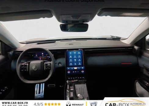 Hybride 145 e-DCS6 Max, hybride, bleu, 21/01/2026, ABS, ESP, Accès et démarrage mains libres Proximity, Accoudoir central avant, Aérateurs de climatisation centraux pour les passagers AR, Affichage Tête Haute Etendu, Aide au stationnement AR, Aide au stationnement AV avec VisioPark 360°, Allumage automatique des feux de croisement, Apple CarPlay et Android Auto sans fil, Banquette AR avec dossier rabattable 40/20/40, Banquette AR avec dossiers inclinables et accoudoir central, Bluetooth (connexion simultanée 2 télephones), Boîte automatique 6 rapports, Boitier télématique: Appel d?urgence et Citroën Assistance, Calandre Noir Mat, Clean Cabin avec détecteur de qualité de l?air, Climatisation automatique bizone étendue, Color Clip Gold Satin, Combiné numérique 10" personnalisable, Contrôle de la presión des pneus, Coques de rétroviseurs extérieurs Noir Brillant, Démarrage mains libres, Direction assistée, Eclairage d?ambiance étendu, 8 couleurs, Eclairage intérieur LED, Ecran Cascade avec Navigation 3D Connectée, Ecran central vertical 13" tactile, Equipements de sécurité, Essuie-vitres AV automatique Magic Wash, Feux AR à LED Citroën Light Wings, Feux diurnes avec clignotants à LED, Frein de stationnement électrique, Garnissage Tissu Blue / Toile enduite Premium Blue, Hayons motorisé mains libres, Jantes alliage 19" ZIRCONE, Lève-vitres électriques AV/AR séquentiels anti-pincement, Navigation 3D, Pack Design, Pack Drive Assist 2.0, Pack Safety, Pare-brise acoustique, Pare-brise feuilleté, Pédalier et repose pieds aluminium, Plancher de coffre modulable à 2 positions, Poignées de maintien couleur chrome, Poignées de portes extérieures couleur caisse, Prédisposition attelage, Projecteurs Citroën Matrix LED, Recharge sans fil pour smartphone, Rétroviseur intérieur électrochrome, Rétroviseurs extérieurs électriques dégivrants, Sélecteur de mode de conduite, Services Connect PLUS, Siège conducteur à réglage électrique (8 directions) avec mémoire de position, Sièges AV chauffants, Suspension Citroën Advanced Comfort, Système audio 6 HP (DAB+), TCS (Contrôle de la traction), Teinte de carrosserie métallisée : option incluse (valeur : 0 Eur TTC), Verrouillage centralisé, Vitres AV électriques, Volant chauffant, Volant gainé multifonctions avec décor Noir Brillant, 1 prise USB type-C rétroéclairées à l?AV (charge), 2 prises USB type-C rétroéclairées à l?AR console centrale (charge), 3 prises 12V