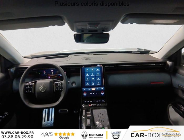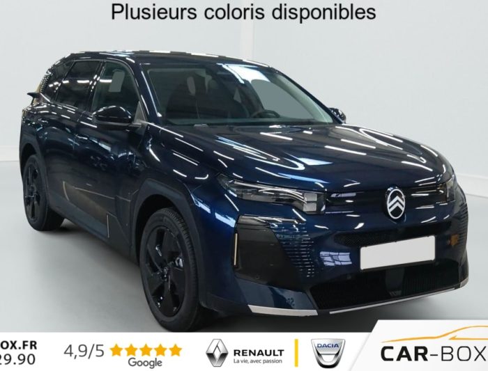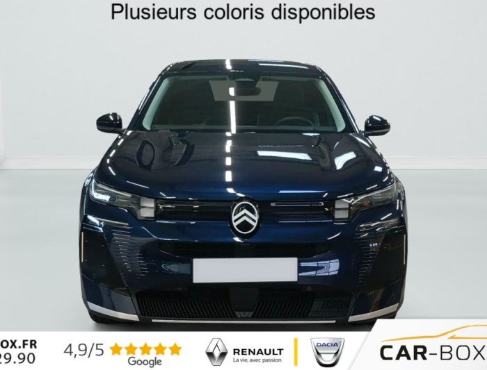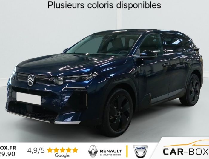 Hybride 145 e-DCS6 Max, hybride, bleu, 21/01/2026, ABS, ESP, Accès et démarrage mains libres Proximity, Accoudoir central avant, Aérateurs de climatisation centraux pour les passagers AR, Affichage Tête Haute Etendu, Aide au stationnement AR, Aide au stationnement AV avec VisioPark 360°, Allumage automatique des feux de croisement, Apple CarPlay et Android Auto sans fil, Banquette AR avec dossier rabattable 40/20/40, Banquette AR avec dossiers inclinables et accoudoir central, Bluetooth (connexion simultanée 2 télephones), Boîte automatique 6 rapports, Boitier télématique: Appel d?urgence et Citroën Assistance, Calandre Noir Mat, Clean Cabin avec détecteur de qualité de l?air, Climatisation automatique bizone étendue, Color Clip Gold Satin, Combiné numérique 10" personnalisable, Contrôle de la presión des pneus, Coques de rétroviseurs extérieurs Noir Brillant, Démarrage mains libres, Direction assistée, Eclairage d?ambiance étendu, 8 couleurs, Eclairage intérieur LED, Ecran Cascade avec Navigation 3D Connectée, Ecran central vertical 13" tactile, Equipements de sécurité, Essuie-vitres AV automatique Magic Wash, Feux AR à LED Citroën Light Wings, Feux diurnes avec clignotants à LED, Frein de stationnement électrique, Garnissage Tissu Blue / Toile enduite Premium Blue, Hayons motorisé mains libres, Jantes alliage 19" ZIRCONE, Lève-vitres électriques AV/AR séquentiels anti-pincement, Navigation 3D, Pack Design, Pack Drive Assist 2.0, Pack Safety, Pare-brise acoustique, Pare-brise feuilleté, Pédalier et repose pieds aluminium, Plancher de coffre modulable à 2 positions, Poignées de maintien couleur chrome, Poignées de portes extérieures couleur caisse, Prédisposition attelage, Projecteurs Citroën Matrix LED, Recharge sans fil pour smartphone, Rétroviseur intérieur électrochrome, Rétroviseurs extérieurs électriques dégivrants, Sélecteur de mode de conduite, Services Connect PLUS, Siège conducteur à réglage électrique (8 directions) avec mémoire de position, Sièges AV chauffants, Suspension Citroën Advanced Comfort, Système audio 6 HP (DAB+), TCS (Contrôle de la traction), Teinte de carrosserie métallisée : option incluse (valeur : 0 Eur TTC), Verrouillage centralisé, Vitres AV électriques, Volant chauffant, Volant gainé multifonctions avec décor Noir Brillant, 1 prise USB type-C rétroéclairées à l?AV (charge), 2 prises USB type-C rétroéclairées à l?AR console centrale (charge), 3 prises 12V