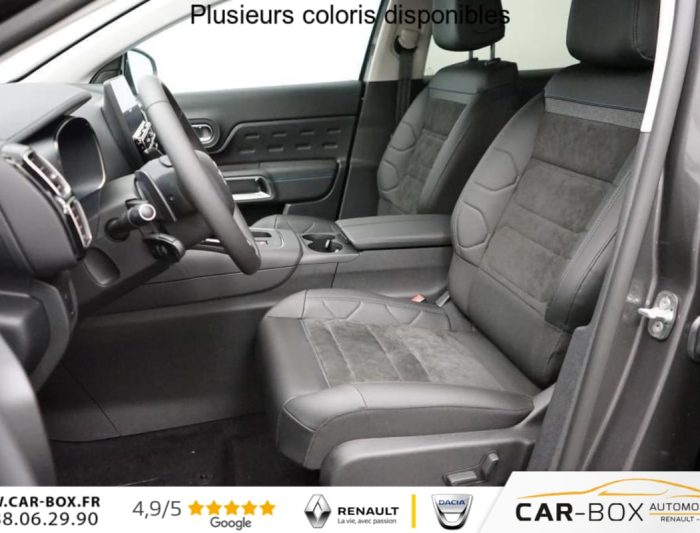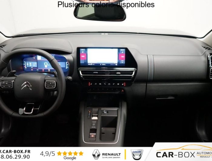 Hybride 145 e-DCS6 Max, hybride, gris, 10/07/2025, Garnissage Alcantara Noir/Tissu effet cuir Noir/Ambiance Urban Black avec Sièges Advanced Comfort : option incluse (valeur : 500 Eur TTC), Sièges AV chauffants : option incluse (valeur : 250 Eur TTC), Projecteurs antibrouillard avec éclairage statique d’intersection, Détection de sous-gonflage, Airbags frontaux AV, latéraux AV et rideaux, Volant croûte de cuir, Accès et démarrage mains libres, Feux AR 3D à LED, Aide au stationnement AR, Allumage automatique des feux de croisement, Coques de rétroviseurs extérieurs Noir Brillant, Barres de toit, Elargisseurs d’aile et bas de caisse Noir Mat, Lève-vitres AV et AR électriques et séquentiels, Vitres et lunette AR surteintées, Condamnation centralisée, Caméra de recul avec Top Rear Vision, Direction assistée, 3 sièges AR indépendants, coulissants, inclinables et escamotables, Enjoliveurs de contour de vitres latérales chromés, Essuie-vitres AV automatique Magic Wash, Fixations ISOFIX sur les sièges passager AV et latéraux AR, Sièges conducteur et passager réglables en hauteur, Calandre supérieure Noir Brillant, Combiné numérique 12, 3" personnalisable, Volant réglable en hauteur et en profondeur, Custodes AR surteintées, Projecteurs LED, Plancher de coffre escamotable, Poignées de portes extérieures Noir Brillant, ABS + AFU + ESP + REF, Suspension Citroën Advanced Comfort, Siège conducteur avec réglage lombaire, Inserts colorés Noir Brillant sur Airbump et bouclier AV, Feux diurnes à LED avec clignotants à LED, Kit mains libres Bluetooth et 3 prises USB, Sabots de protection Aluminium Brillant, Rétroviseurs extérieurs rabattables électriquement avec éclairage d’accueil, Teinte de caisse métallisée : option incluse (valeur : 700 Eur TTC), Jantes alliage 18" PULSAR Diamantées bi-ton, Services Connect PLUS pendant 12 mois, Apple CarPlay et Android Auto, Navigation 3D sur écran central 10" tactile Comprend le système de navigation TomTom, la reconnaissance vocale avec langage naturel, l’interface personnalisable, et les services Connect PLUS additionnels, Boîtier télématique : Appel d’urgence et Citroën Assistance les services Connect ONE pendant une période de 10 ans, Pack Safety – Active Safety Brake – Alerte active de Franchissement Involontaire de Ligne – Coffee Break Alert – Reconnaissance étendue des panneaux et recommandation de vitesse – Régulateur-limiteur de vitesse : Active Safety Brake 2.0 Fonctionne à l’aide d’un Radar de 7 à 140 km/h, même de nuit et détecte les cyclistes Alerte active de Franchissement Involontaire de ligne Coffee Break Alert Reconnaissance étendue des panneaux et recommandation de vitesse Régulateur-limiteur de vitesse, Pack Safety + Système de surveillance d’angle mort : Système de surveillance d’angle mort, Kit de dépannage provisoire des pneumatiques : option incluse (valeur : 20 Eur TTC), Pack Color Noir Brillant Inserts colorés Noir Brillant sur Airbump et bouclier AV : Inserts colorés Noir Brillant sur Airbump et bouclier AV, Prise 12V sur la console centrale, Pack Drive Assist Aide maintien dans la voie, Alerte Attention Conducteur, Commutation automatique des feux de route, Highway Driver Assist (système de conduite autonome de niveau 2), Régulateur de vitesse adaptatif avec fonction Stop & Go : Aide maintien dans la voie Alerte attention conducteur Commutation automatique des feux de route Highway Driver Assist (système autonome de niveau 2) Régulateur de vitesse adaptatif avec fonction Stop&Go, Rétroviseur intérieur électrochrome, Rétroviseurs extérieurs électriques dégivrants, Boîte automatique 6 rapports, TCS (Contrôle de la traction), Contrôle de la presión des pneus, Vitres électriques, Aide au stationnement AV, Climatisation automatique bizone, Frein de stationnement électrique automatique