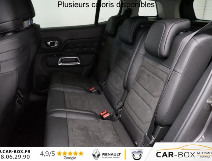 Garnissage Alcantara Noir/Tissu effet cuir Noir/Ambiance Urban Black avec Sièges Advanced Comfort : option incluse (valeur : 500 Eur TTC), Sièges AV chauffants : option incluse (valeur : 250 Eur TTC), Projecteurs antibrouillard avec éclairage statique d'intersection, Détection de sous-gonflage, Airbags frontaux AV, latéraux AV et rideaux, Volant croûte de cuir, Accès et démarrage mains libres, Feux AR 3D à LED, Aide au stationnement AR, Allumage automatique des feux de croisement, Coques de rétroviseurs extérieurs Noir Brillant, Barres de toit, Elargisseurs d'aile et bas de caisse Noir Mat, Lève-vitres AV et AR électriques et séquentiels, Vitres et lunette AR surteintées, Condamnation centralisée, Caméra de recul avec Top Rear Vision, Direction assistée, 3 sièges AR indépendants, coulissants, inclinables et escamotables, Enjoliveurs de contour de vitres latérales chromés, Essuie-vitres AV automatique Magic Wash, Fixations ISOFIX sur les sièges passager AV et latéraux AR, Sièges conducteur et passager réglables en hauteur, Calandre supérieure Noir Brillant, Combiné numérique 12,3" personnalisable, Volant réglable en hauteur et en profondeur, Custodes AR surteintées, Projecteurs LED, Plancher de coffre escamotable, Poignées de portes extérieures Noir Brillant, ABS + AFU + ESP + REF, Suspension Citroën Advanced Comfort, Siège conducteur avec réglage lombaire, Inserts colorés Noir Brillant sur Airbump et bouclier AV, Feux diurnes à LED avec clignotants à LED, Kit mains libres Bluetooth et 3 prises USB, Sabots de protection Aluminium Brillant, Rétroviseurs extérieurs rabattables électriquement avec éclairage d'accueil, Teinte de caisse métallisée : option incluse (valeur : 700 Eur TTC), Jantes alliage 18" PULSAR Diamantées bi-ton, Services Connect PLUS pendant 12 mois, Apple CarPlay et Android Auto, Navigation 3D sur écran central 10" tactile Comprend le système de navigation TomTom, la reconnaissance vocale avec langage naturel, l'interface personnalisable, et les services Connect PLUS additionnels, Boîtier télématique : Appel d'urgence et Citroën Assistance les services Connect ONE pendant une période de 10 ans, Pack Safety - Active Safety Brake - Alerte active de Franchissement Involontaire de Ligne - Coffee Break Alert - Reconnaissance étendue des panneaux et recommandation de vitesse - Régulateur-limiteur de vitesse : Active Safety Brake 2.0 Fonctionne à l'aide d'un Radar de 7 à 140 km/h, même de nuit et détecte les cyclistes Alerte active de Franchissement Involontaire de ligne Coffee Break Alert Reconnaissance étendue des panneaux et recommandation de vitesse Régulateur-limiteur de vitesse , Pack Safety + Système de surveillance d'angle mort : Système de surveillance d'angle mort , Kit de dépannage provisoire des pneumatiques : option incluse (valeur : 20 Eur TTC), Pack Color Noir Brillant Inserts colorés Noir Brillant sur Airbump et bouclier AV : Inserts colorés Noir Brillant sur Airbump et bouclier AV , Prise 12V sur la console centrale, Pack Drive Assist Aide maintien dans la voie, Alerte Attention Conducteur, Commutation automatique des feux de route, Highway Driver Assist (système de conduite autonome de niveau 2), Régulateur de vitesse adaptatif avec fonction Stop & Go : Aide maintien dans la voie Alerte attention conducteur Commutation automatique des feux de route Highway Driver Assist (système autonome de niveau 2) Régulateur de vitesse adaptatif avec fonction Stop&Go , Rétroviseur intérieur électrochrome, Rétroviseurs extérieurs électriques dégivrants, Boîte automatique 6 rapports, TCS (Contrôle de la traction), Contrôle de la presión des pneus, Vitres électriques, Aide au stationnement AV, Climatisation automatique bizone, Frein de stationnement électrique automatique