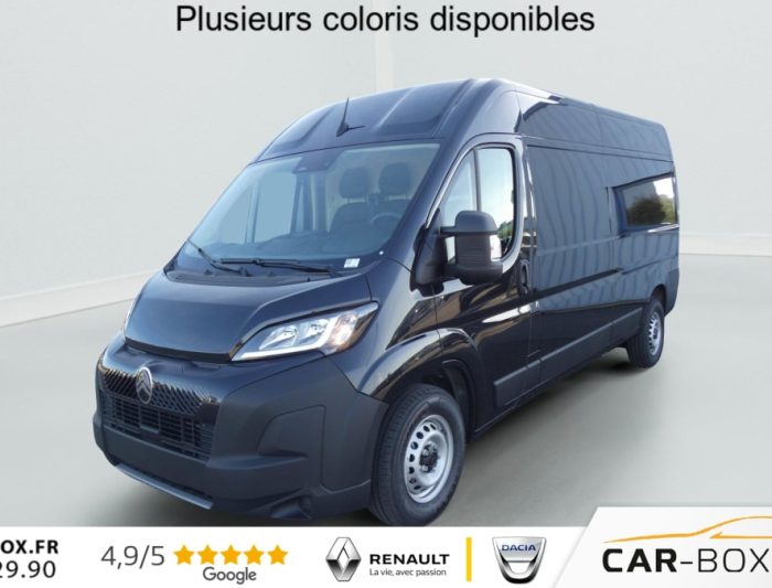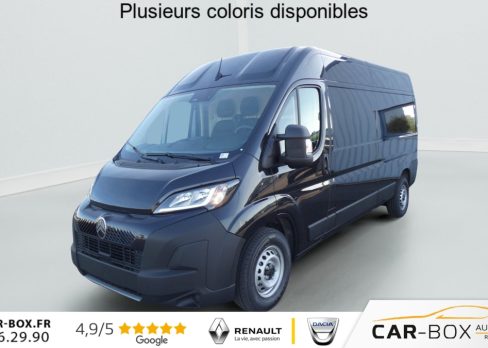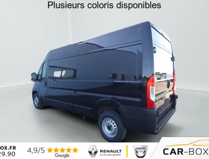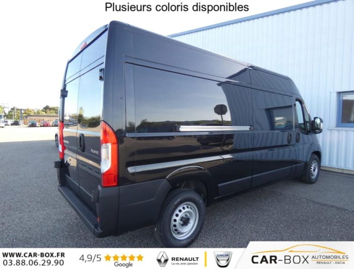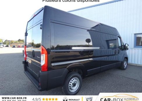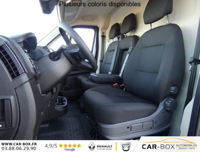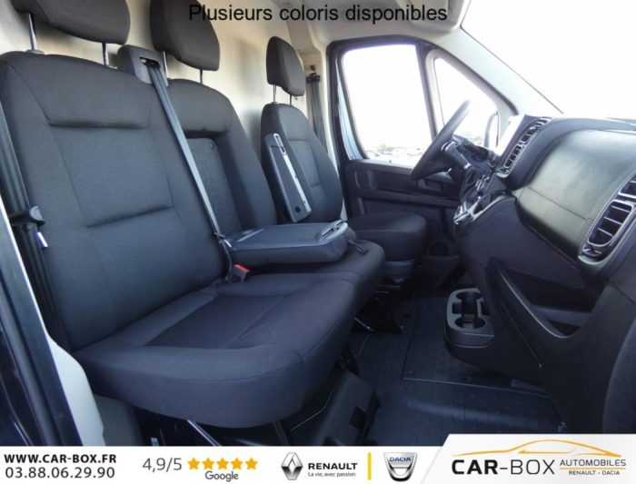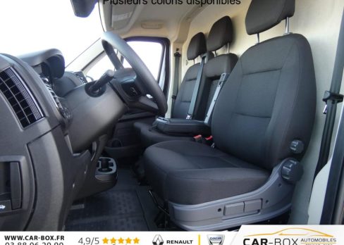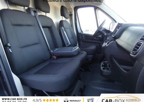 Vitres AR électriques, Condamnation centralisée avec plip, Lève-vitres AV électriques, Airbag conducteur, Aide au démarrage en pente, Airbag passager, Porte latérale coulissante droite tôlée, ABS, AFU, ASR et ESP (ESC amélioré avec assistance en cas de vent latéral, contrôle de stabilité de la remorque, et freinage après collision), Rétroviseurs extérieurs électriques et dégivrants, Régulateur - limiteur de vitesse, Climatisation manuelle, Banquette passager biplace, Avertisseur sonore de marche AR, Capteurs de pression des pneumatiques (TPMS indirect), Boitier télématique Autonome (BTA), Crochets d'arrimage latéraux dans l'espace de chargement, Direction assistée électrique, Pack Sécurité : Freinage d'urgence autonome avec détection pieton / cycliste (AEBS) Reconnaissance des panneaux de signalisation Aide au maintien dans la voie Détecteur de fatigue ou d'inattention (attention assist) Adaptation intelligente de la vitesse, Pare-choc AV grainé, Porte-gobelets au milieu du tableau de bord, Projecteurs halogène avec feux de circulation diurne, Rappel de bouclage des ceintures de sécurité, Cloison tôlée, Portes AR a 2 battantes tôlées, Aide au stationnement AR avec avertisseur sonore pour piétons, Pack Roue de secours : Roue de secours Support roue de secours : option incluse (valeur : 240 Eur TTC), Teintes Métallisées : option incluse (valeur : 840 Eur TTC), Réservoir d'ADBlue 19 litres, Antenne radio numérique, Alternateur standard (180 A), Batterie standard (95 Ah), Système audio 5" avec radio numérique (DAB) + Bluetooth + 1 port USB, Sellerie en tissu crêpe noir + appuie-tête pleins, Roues en acier 15'', Boîte manuelle 6 vitesses, Contrôle de la pression des pneus, Contrôle de traction (TCS), Verrouillage centralisé, Volant réglable en hauteur, Réservoir 90l, Siège conducteur avec réglage en hauteur, réglagle lombaire et accoudoir