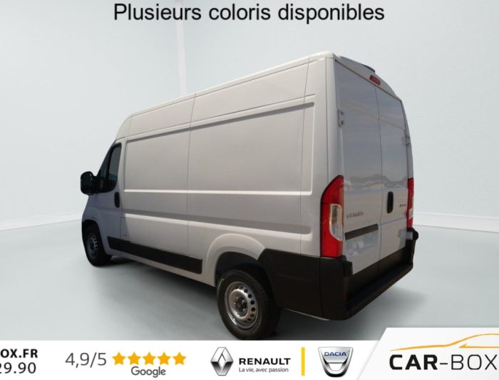 Hors frais de dossierFourgon TOLE 35 L2H2 180 S BVA8, diesel, blanc, 01/08/2025, Vitres AR électriques, Condamnation centralisée avec plip, Lève-vitres AV électriques, Airbag conducteur, Aide au démarrage en pente, Airbag passager, Porte latérale coulissante droite tôlée, ABS, AFU, ASR et ESP (ESC amélioré avec assistance en cas de vent latéral, contrôle de stabilité de la remorque, et freinage après collision), Rétroviseurs extérieurs électriques et dégivrants, Régulateur – limiteur de vitesse, Climatisation manuelle, Banquette passager biplace, Avertisseur sonore de marche AR, Capteurs de pression des pneumatiques (TPMS indirect), Boitier télématique Autonome (BTA), Crochets d’arrimage latéraux dans l’espace de chargement, Direction assistée électrique, Pack Sécurité : Freinage d’urgence autonome avec détection pieton / cycliste (AEBS) Reconnaissance des panneaux de signalisation Aide au maintien dans la voie Détecteur de fatigue ou d’inattention (attention assist) Adaptation intelligente de la vitesse, Pare-choc AV grainé, Porte-gobelets au milieu du tableau de bord, Projecteurs halogène avec feux de circulation diurne, Rappel de bouclage des ceintures de sécurité, Cloison tôlée, Portes AR a 2 battantes tôlées, Aide au stationnement AR avec avertisseur sonore pour piétons, Pack Roue de secours : Roue de secours Support roue de secours : option incluse (valeur : 240 Eur TTC), Réservoir d’ADBlue 19 litres, Antenne radio numérique, Batterie standard (95 Ah), Sellerie en tissu crêpe noir + appuie-tête pleins, Roues en acier 16 », Pack Techno 7 : Double Port USB (A & C) Système multimedia écran tactile 7 » avec Apple CarPlay et Android Auto sans fil : option incluse (valeur : 540 Eur TTC), Boîte automatique 8 vitesses, Contrôle de la pression des pneus, Contrôle de traction (TCS), Verrouillage centralisé, Volant réglable en hauteur, Réservoir 90l, Siège conducteur avec réglage en hauteur, réglagle lombaire et accoudoir