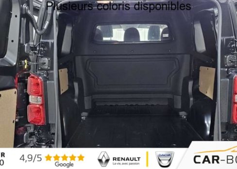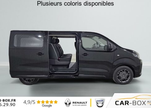 Airbags frontaux conducteur et passager, Régulateur - limiteur de vitesse, Aide au stationnement AR, Porte latérale coulissante droite, Airbags latéraux AV tête-thorax en rang 1, Siège passager individuel avec accoudoir (configuration 2 places AV) : option incluse (valeur : 0 Eur TTC), Porte latérale gauche coulissante : option incluse (valeur : 480 Eur TTC), Direction assistée, Rétroviseurs extérieurs électriques et dégivrants, Prédisposition "temoin de non-bouclage R2" (faisceau + afficheur), sans ceintures, Climatisation manuelle régulée en température, Jeu de clefs: 2 plips HF 3 boutons avec fonction selectivité, Kit de regonflage pneumatiques (Compresseur 12V + Cartouche de produit de colmatage), Pack Sécurité, Pack Sécurité : Assistance au maintien dans la voie Commutation automatique des feux de route Détection inattention conducteur Freinage automatique d'urgence avec alerte risque de collision Reconnaissance des panneaux de vitesse et recommandation , Pare-brise feuilleté acoustique, Revêtement de sol TPO en rangs 1 et 2, Cloison pleine PVC avec vitre plexiglass, Anneaux d'arrimage 4 répartis uniformément sur la zone de chargement, Détection de sous-gonflage indirecte, Siège conducteur individuel avec appui-tête réglable en hauteur et avec accoudoir Réglage : longueur, inclinaison, réhausse et rabattable (si 1 PLC) ou lombaire (si 2 PLC), Allumage automatique des feux de croisement et des essuie-vitres AV, Teinte métallisée : option incluse (valeur : 648 Eur TTC), ABS, AFU, ASR et ESP avec aide au démarrage en pente, Combiné numérique LCD noir et blanc, Lève-vitres AV électriques impulsionnels, Panneaux de garniture de type Isorel en rang 2 et 3, Garnitures pavillon habitacle en rang 2, Rétroviseur intérieur prismatique, Prise 12V (1200 W max) dans la boîte à gants, Sécurité enfants mécanique, Boucliers, Poignées de portes extérieures, Enjoliveur(s) de rail de porte latérale coulissante Baguettes latérales et Coques de rétroviseurs extérieurs noirs teintés masse, Portes AR battantes 50/50 tôlées à ouverture à 180°, Projecteurs halogène (H15) avec feux diurnes intégrés, Radio DAB Bluetooth avec écran tactile 5'' monochrome + 4 HP (2 tweeters + 2 woofers) + 1 prise USB-A, Sellerie Tissu bi-ton noir-gris, Pack Look extérieur : Baguettes latérales et coques de rétroviseurs extérieurs couleur Noir Perla Nera Boucliers couleur caisse Enjoliveur(s) de rail de porte latérale coulissante couleur caisse Jantes tôle 17" noires avec enjoliveurs Poignées de portes extérieures couleur caisse Prise 12V (120W max) dans la zone de chargement Projecteurs antibrouillard Rétroviseurs extérieurs rabattables électriquement : option incluse (valeur : 600 Eur TTC), Boîte automatique 8 vitesses, Commandes au volant du système audio et du régulateur-limiteur de vitesse, Boitier télématique appel d'urgence et d'assistance géolocalisés + offres de services connectés), Pack Caméra : Apple CarPlay et Android Auto sans fil Caméra de recul 180° avec affichage sur écran tactile 10'' HD couleur Ecran tactile 10'' HD couleur Planche de bord avec bandeau décor Liquid Palladium : option incluse (valeur : 960 Eur TTC), Pack Connectivité : Apple CarPlay et Android Auto sans fil Combiné numérique 10'' HD couleur Ecran tactile 10'' HD couleur Navigation 3D connectée avec reconnaissance vocale Cartographie Europe, Services de Navigation connectée TomTom (TomTomTraffic, Prix Carburant, Parkings, Météo, Recherche Locale) et Alertes Zones de Danger,Compatible avec Android Auto et Apple CarPlay) Planche de bord avec bandeau décor Liquid Palladium Prise 12V (120W max) dans la zone de chargement Projecteurs antibrouillard Reconnaissance vocale Rétroviseurs extérieurs rabattables électriquement : option incluse (valeur : 1 320 Eur TTC), Banquette fixe 3 places en rang 2 avec appui-tête réglables et 2 accoudoirs, position unique conforme à la réglementation fiscale, avec coffre de rangement sous les 3 assises accessible depuis la cabine et avec espace pour charge longue sous les 3 assises, Pack Visibilité : Prise 12V (120W max) dans la zone de chargement Projecteurs antibrouillard Rétroviseurs extérieurs rabattables électriquement : option incluse (valeur : 240 Eur TTC), Volant réglable en hauteur et en profondeur