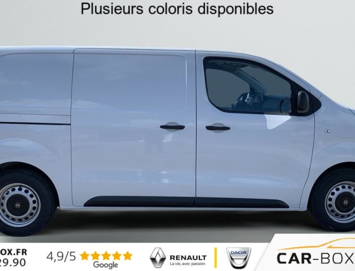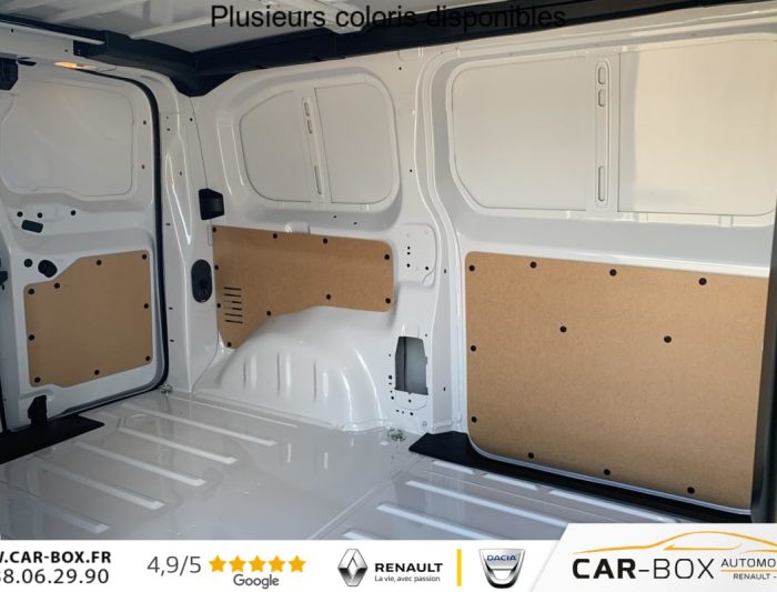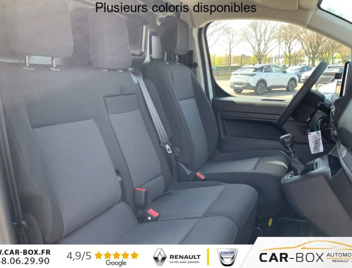 Airbags frontaux conducteur et passager, Régulateur - limiteur de vitesse, Aide au stationnement AR, Porte latérale coulissante droite, Cloison pleine tôlée, Revêtement de sol TPO dans l'habitacle, Direction assistée, Rétroviseurs extérieurs électriques et dégivrants, Climatisation manuelle régulée en température, Jeu de clefs: 2 plips HF 3 boutons avec fonction selectivité, Pack Sécurité : Reconnaissance des panneaux de vitesse et recommandation Freinage automatique d'urgence avec alerte risque de collision Assistance au maintien dans la voie Commutation automatique des feux de route Détection inattention conducteur, Pare-brise feuilleté acoustique, Siège conducteur individuel avec appui-tête réglable en hauteur et avec accoudoir Réglage : longueur, inclinaison, réhausse et lombaire, Roue de secours homogène (jante tôle noire) : option incluse (valeur : 216 Eur TTC), Banquette passager 2 places avec appuis-têtes réglables en hauteur avec rangement sous assise, Teinte de caisse opaque, Détection de sous-gonflage indirecte, Allumage automatique des feux de croisement et des essuie-vitres AV, Pack Visibilité : Rétroviseurs extérieurs rabattables électriquement Projecteurs antibrouillard : option incluse (valeur : 240 Eur TTC), ABS, AFU, ASR et ESP avec aide au démarrage en pente, Anneaux d'arrimage 6 répartis uniformément sur la zone de chargement, Lève-vitres AV électriques impulsionnels, Jantes tôle 16" grises avec cabochon noir, Pack Moduwork : Tablette écritoire Siège latéral droit relevable Trappe de charge longue sous banquette passagers Banquette passager 2 places avec appuis-têtes réglables en hauteur avec rangement sous assise : option incluse (valeur : 480 Eur TTC), Portes AR battantes 50/50 tôlées à ouverture à 180°, Projecteurs halogène (H15) avec feux diurnes intégrés, Sellerie Tissu bi-ton noir-gris, Pack Caméra : Caméra de recul 180° avec affichage sur écran tactile 10'' HD couleur : option incluse (valeur : 960 Eur TTC), Pack Connectivité : Reconnaissance vocale Mirror Screen (compatible avec Android Auto et Apple CarPlay) Navigation 3D connectée avec reconnaissance vocale Cartographie Europe Ecran tactile 10'' HD couleur : option incluse (valeur : 1 320 Eur TTC), Contrôle de la pression des pneus, Commandes au volant du système audio et du régulateur-limiteur de vitesse, Boitier télématique appel d'urgence, Volant réglable en hauteur et en profondeur, Condamnation centralisée des portes