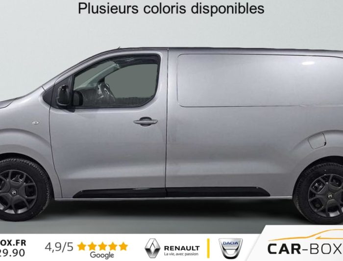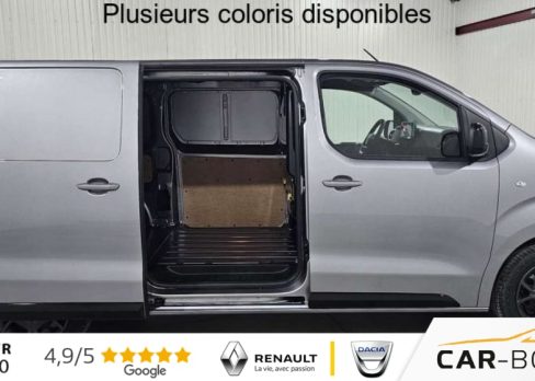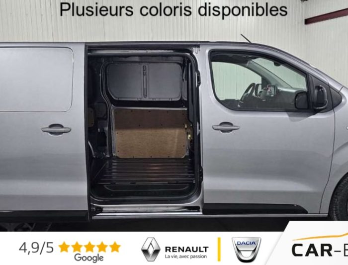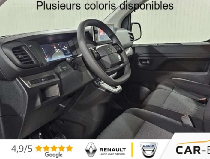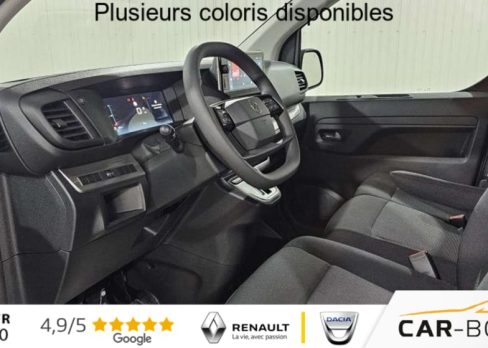 Airbags frontaux conducteur et passager, Régulateur - limiteur de vitesse, Aide au stationnement AR, Porte latérale coulissante droite, Cloison pleine tôlée, Revêtement de sol TPO dans l'habitacle, Direction assistée, Rétroviseurs extérieurs électriques et dégivrants, Climatisation manuelle régulée en température, Jeu de clefs: 2 plips HF 3 boutons avec fonction selectivité, Pack Sécurité, Pack Sécurité : Assistance au maintien dans la voie Commutation automatique des feux de route Détection inattention conducteur Freinage automatique d'urgence avec alerte risque de collision Reconnaissance des panneaux de vitesse et recommandation , Pare-brise feuilleté acoustique, Siège conducteur individuel avec appui-tête réglable en hauteur et avec accoudoir Réglage : longueur, inclinaison, réhausse et lombaire, Roue de secours homogène (jante tôle noire) : option incluse (valeur : 216 Eur TTC), Banquette passager 2 places avec appuis-têtes réglables en hauteur avec rangement sous assise, Détection de sous-gonflage indirecte, Allumage automatique des feux de croisement et des essuie-vitres AV, Teinte métallisée : option incluse (valeur : 648 Eur TTC), Pack Visibilité : Projecteurs antibrouillard Rétroviseurs extérieurs rabattables électriquement : option incluse (valeur : 240 Eur TTC), ABS, AFU, ASR et ESP avec aide au démarrage en pente, Anneaux d'arrimage 6 répartis uniformément sur la zone de chargement, Combiné numérique LCD noir et blanc, Lève-vitres AV électriques impulsionnels, Panneaux de garniture de type Isorel en rang 2 et 3, Prise 12V (1200 W max) dans la boîte à gants, Boucliers, Poignées de portes extérieures, Enjoliveur(s) de rail de porte latérale coulissante Baguettes latérales et Coques de rétroviseurs extérieurs noirs teintés masse, Pack Moduwork : Banquette passager 2 places avec appuis-têtes réglables en hauteur avec rangement sous assise Siège latéral droit relevable Tablette écritoire Trappe de charge longue sous banquette passagers : option incluse (valeur : 480 Eur TTC), Portes AR battantes 50/50 tôlées à ouverture à 180°, Projecteurs halogène (H15) avec feux diurnes intégrés, Radio DAB Bluetooth avec écran tactile 5'' monochrome + 4 HP (2 tweeters + 2 woofers) + 1 prise USB-A, Sellerie Tissu bi-ton noir-gris, Pack Look extérieur : Baguettes latérales et coques de rétroviseurs extérieurs couleur caisse Boucliers couleur caisse Enjoliveur(s) de rail de porte latérale coulissante couleur caisse Jantes tôle 17" noires avec enjoliveurs Poignées de portes extérieures couleur caisse Prise 12 V dans la zone de chargement Projecteurs antibrouillard Rétroviseurs extérieurs rabattables électriquement : option incluse (valeur : 600 Eur TTC), Contrôle de la pression des pneus, Commandes au volant du système audio et du régulateur-limiteur de vitesse, Pack Urbain + Caméra : Aide au stationnement AV, AR et latéral (Flank-Guard) + Système de surveillance d'angle mort Caméra de recul 180° avec affichage sur écran tactile 10'' HD couleur Mirror Screen (compatible avec Android Auto et Apple CarPlay) Prise 12V (120W max) dans la zone de chargement Projecteurs antibrouillard Rétroviseurs extérieurs rabattables électriquement : option incluse (valeur : 1 200 Eur TTC), Volant réglable en hauteur et en profondeur, Condamnation centralisée des portes