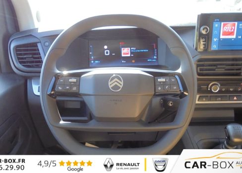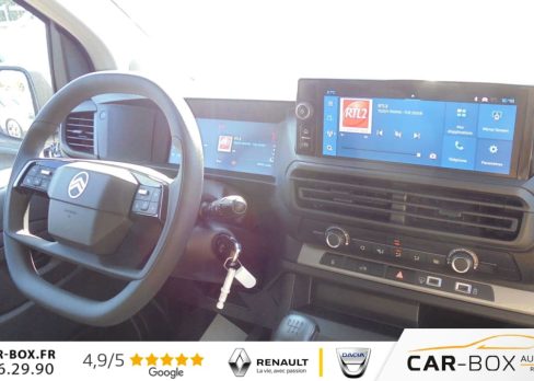 ABS, AFU, ASR et ESP avec aide au demarrage en pente, Aide au stationnement arriere, Airbags frontaux conducteur et passager, Airbags lateraux avant tete-thorax en rang 1, Allumage automatique des feux de croisement + Essuie-vitre avant auto, Anneaux d'arrimage 8 repartis uniformement sur la zone de chargement, Banquette passager 2 places avec appuis-tetes reglables en hauteur avec fonction Moduwork : option incluse (valeur : 480 Eur TTC), Boucliers avant et arriere teintes masse, Charge utile majoree, Climatisation manuelle, Cloison pleine tolee, Commandes radio au volant, Connectivite via BTA (appel d'urgence et d'assistance localisees + offres services connectes), Detection de sous-gonflage indirecte, Jantes acier 16'' avec cabochon noir, Kit de regonflage pneumatiques, Leve-vitres avant electriques impulsionnels, Mirror Screen , Pack Camera (Combine numerique 10'' couleur, VisioPark1 (vue zenithale arriere a 180) avec affichage sur ecran tactile + Aide au stationnement arriere) : option incluse (valeur : 1 080 Eur TTC), Pack Securite (Assistance au maintien dans la voie, Commutation automatique des feux de route, Detection inattention conducteur, Freinage automatique d'urgence avec alerte risque de collision, Reconnaissance des panneaux de vitesse et recommandation), Pack Visibilite (Projecteurs antibrouillard, Retroviseurs exterieurs rabattables electriquement) : option incluse (valeur : 240 Eur TTC), Porte laterale coulissante droite, Portes arriere battantes 50/50 tolees a ouverture a 180 avec verrou sur porte gauche uniquement, Prises 12V: dans la boite a gants et dans l'espace de chargement - Longueur 7m, Projecteurs antibrouillard, Projecteurs halogenes , Radio RCE (DAB), ecran tactile + Bluetooth , Regulateur et limiteur de vitesse, Retroviseurs exterieurs electriques et degivrants, Revetement de sol TPO dans l'habitacle, Siege conducteur avec reglage lombaires , Siege conducteur individuel avec appui-tete reglable en hauteur et avec accoudoir, Volant reglable en hauteur et en profondeur, 2 prises USB-C avant