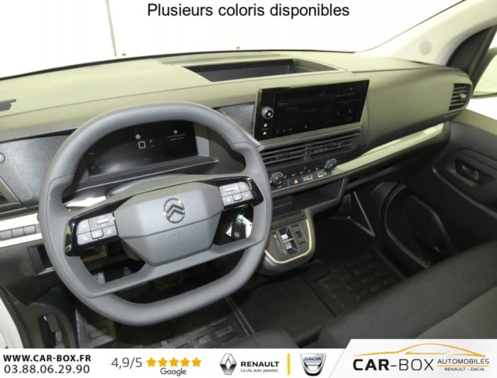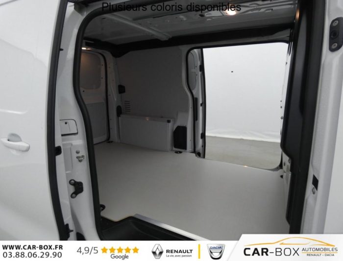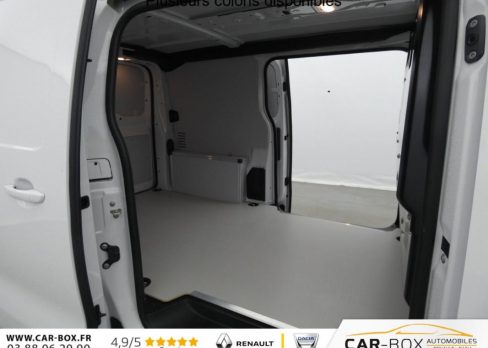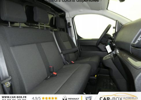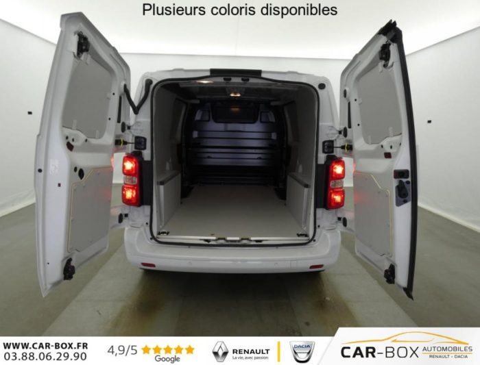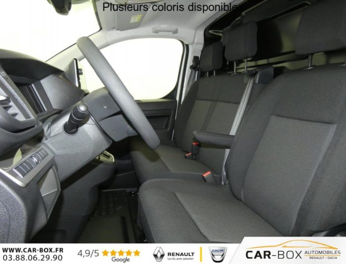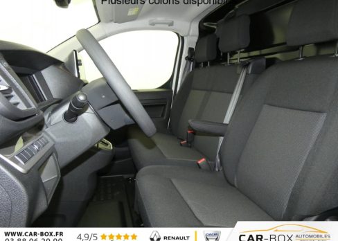 Airbags frontaux conducteur et passager, Régulateur - limiteur de vitesse, Aide au stationnement AR, Porte latérale coulissante droite, Cloison pleine tôlée, Porte latérale gauche coulissante : option incluse (valeur : 480 Eur TTC), Revêtement de sol TPO dans l'habitacle, Direction assistée, Rétroviseurs extérieurs électriques et dégivrants, Plancher bois anti-dérapant 9 mm avec baguette aluminium et habillages latéraux et coffrage des passages de roue en bois revêtu 6 mm : option incluse (valeur : 840 Eur TTC), Climatisation manuelle régulée en température, Jeu de clefs: 2 plips HF 3 boutons avec fonction selectivité, Pack Sécurité Freinage automatique d'urgence avec alerte risque de collision, Assistance au maintien dans la voie, Commutation automatique des feux de route, Détection inattention conducteur Reconnaissance des panneaux de vitesse et recommandation : Reconnaissance des panneaux de vitesse et recommandation Freinage automatique d'urgence avec alerte risque de collision Assistance au maintien dans la voie Commutation automatique des feux de route Détection inattention conducteur, Pare-brise feuilleté acoustique, Siège conducteur individuel avec appui-tête réglable en hauteur et avec accoudoir Réglage : longueur, inclinaison, réhausse et lombaire, Roue de secours homogène (jante tôle noire) : option incluse (valeur : 216 Eur TTC), Banquette passager 2 places avec appuis-têtes réglables en hauteur avec rangement sous assise, Teinte de caisse opaque : option incluse (valeur : 0 Eur TTC), Détection de sous-gonflage indirecte, Allumage automatique des feux de croisement et des essuie-vitres AV, Projecteurs full LED avec feux diurnes à LED : option incluse (valeur : 480 Eur TTC), ABS, AFU, ASR et ESP avec aide au démarrage en pente, Anneaux d'arrimage 6 répartis uniformément sur la zone de chargement, Combiné numérique LCD noir et blanc, Lève-vitres AV électriques impulsionnels, Panneaux de garniture de type Isorel en rang 2 et 3, Prise 12V (1200 W max) dans la boîte à gants, Pack Connectivité + Caméra : Rétroviseurs extérieurs rabattables électriquement Projecteurs antibrouillard Prise 12 V dans la zone de chargement Reconnaissance vocale Mirror Screen (compatible avec Android Auto et Apple CarPlay) Navigation 3D connectée avec reconnaissance vocale Cartographie Europe, Services de Navigation connectée TomTom (TomTomTraffic, Prix Carburant, Parkings, Météo, Recherche Locale) et Alertes Zones de Danger,Compatible avec Android Auto et Apple CarPlay) Ecran tactile 10'' HD couleur Caméra de recul 180° avec affichage sur écran tactile 10'' HD couleur : option incluse (valeur : 1 620 Eur TTC), Boucliers, Poignées de portes extérieures, Enjoliveur(s) de rail de porte latérale coulissante Baguettes latérales et Coques de rétroviseurs extérieurs teintés masse, Portes AR battantes 50/50 tôlées à ouverture à 180°, Sellerie Tissu bi-ton noir-gris, Pack Look extérieur: Poignées de portes extérieures couleur caisse Boucliers et baguettes latérales couleur caisse (bouclier AR demi-peint) Coques de rétroviseurs extérieurs peintes Noir Perla Nera Jantes tôle 17" noires avec enjoliveurs : option incluse (valeur : 600 Eur TTC), Contrôle de la pression des pneus, Commandes au volant du système audio et du régulateur-limiteur de vitesse, Boitier télématique appel d'urgence et d'assistance géolocalisés + offres de services connectés), Volant réglable en hauteur et en profondeur, Condamnation centralisée des portes