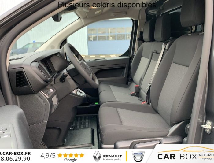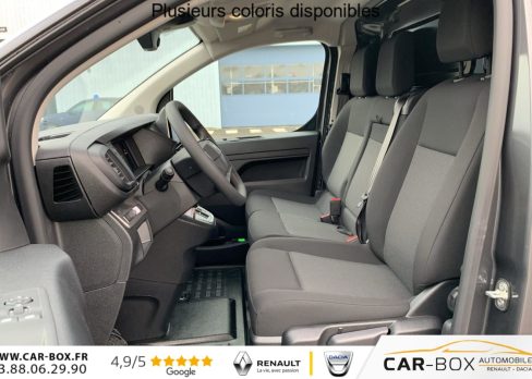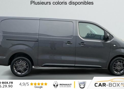 Airbags frontaux conducteur et passager, Régulateur - limiteur de vitesse, Aide au stationnement AR, Porte latérale coulissante droite, Cloison pleine tôlée, Revêtement de sol TPO dans l'habitacle, Direction assistée, Rétroviseurs extérieurs électriques et dégivrants, Charge utile majorée, Climatisation manuelle régulée en température, Jeu de clefs: 2 plips HF 3 boutons avec fonction selectivité, Kit de regonflage pneumatiques (Compresseur 12V + Cartouche de produit de colmatage), Pack Sécurité Freinage automatique d'urgence avec alerte risque de collision, Assistance au maintien dans la voie, Commutation automatique des feux de route, Détection inattention conducteur Reconnaissance des panneaux de vitesse et recommandation : Reconnaissance des panneaux de vitesse et recommandation Freinage automatique d'urgence avec alerte risque de collision Assistance au maintien dans la voie Commutation automatique des feux de route Détection inattention conducteur, Siège conducteur individuel avec appui-tête réglable en hauteur et avec accoudoir Réglage : longueur, inclinaison, réhausse et lombaire, Détection de sous-gonflage indirecte, Allumage automatique des feux de croisement et des essuie-vitres AV, Teinte métallisée : option incluse (valeur : 648 Eur TTC), ABS, AFU, ASR et ESP avec aide au démarrage en pente, Combiné numérique LCD noir et blanc, Lève-vitres AV électriques impulsionnels, Panneaux de garniture de type Isorel en rang 2 et 3, Anneaux d'arrimage 8 répartis uniformément sur la zone de chargement, Prise 12V (1200 W max) dans la boîte à gants, Pack Connectivité + Caméra - Pack Connectivité - Pack Caméra Combiné numérique 10'', Prise 12V dans la zone de chargement, Projecteurs antibrouillard et Rétroviseurs extérieurs rabattables électriquement : Rétroviseurs extérieurs rabattables électriquement Projecteurs antibrouillard Prise 12 V dans la zone de chargement Reconnaissance vocale Mirror Screen (compatible avec Android Auto et Apple CarPlay) Navigation 3D connectée avec reconnaissance vocale Cartographie Europe, Services de Navigation connectée TomTom (TomTomTraffic, Prix Carburant, Parkings, Météo, Recherche Locale) et Alertes Zones de Danger,Compatible avec Android Auto et Apple CarPlay) Ecran tactile 10'' HD couleur Caméra de recul 180° avec affichage sur écran tactile 10'' HD couleur : option incluse (valeur : 1 620 Eur TTC), Boucliers, Poignées de portes extérieures, Enjoliveur(s) de rail de porte latérale coulissante Baguettes latérales et Coques de rétroviseurs extérieurs noirs teintés masse, Pack Moduwork - Banquette passager 2 places modulable (Les appui-têtes réglable en hauteur et le rangement sous assise centrale., Siège latéral droit relevable : +0,5 m³ de volume utile - Tablette écritoire - Trappe de charge longue (sous banquette passagers : +1,16 m de longeur utile) . : Tablette écritoire Siège latéral droit relevable Trappe de charge longue sous banquette passagers Banquette passager 2 places avec appuis-têtes réglables en hauteur avec rangement sous assise : option incluse (valeur : 480 Eur TTC), Portes AR battantes 50/50 tôlées à ouverture à 180°, Projecteurs halogène (H15) avec feux diurnes intégrés, Sellerie Tissu bi-ton noir-gris, Pack Look extérieur - Boucliers (bouclier AR demi-peint) - Enjoliveur(s) de rail de porte latérale coulissante et Poignées de portes extérieures couleur caisse - Baguettes latérales et coques de rétroviseurs extérieurs Noir Perla Nera - Jantes tôle noires 17'' avec enjoliveur - Prise 12V dans la zone de chargement, - Projecteurs antibrouillard et Rétroviseurs extérieurs rabattables électriquement : Rétroviseurs extérieurs rabattables électriquement Projecteurs antibrouillard Prise 12 V dans la zone de chargement Bouclier AR demi-peint Boucliers et baguettes latérales couleur caisse (bouclier AR demi-peint) Jantes tôle 17" noires avec enjoliveurs Enjoliveur(s) de rail de porte latérale coulissante couleur caisse Baguettes latérales et coques de rétroviseurs extérieurs couleur caisse : option incluse (valeur : 600 Eur TTC), Contrôle de la pression des pneus, Commandes au volant du système audio et du régulateur-limiteur de vitesse, Boitier télématique appel d'urgence et d'assistance géolocalisés + offres de services connectés), Volant réglable en hauteur et en profondeur, Condamnation centralisée des portes