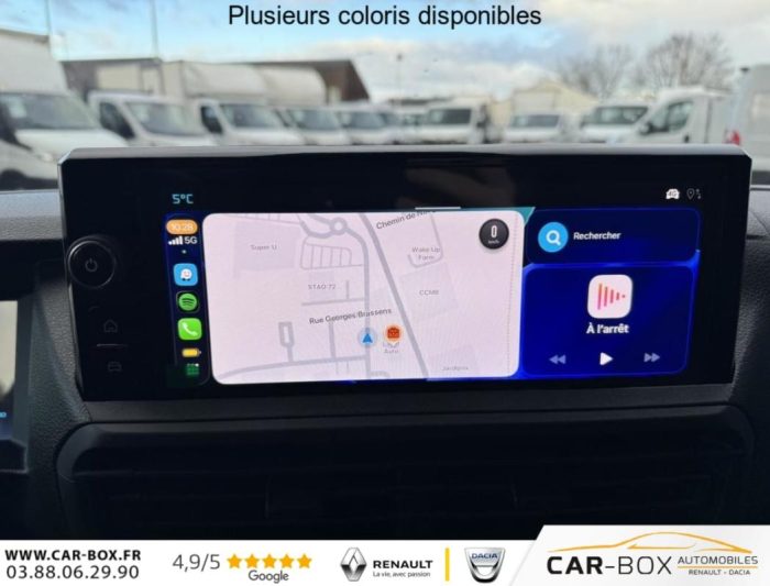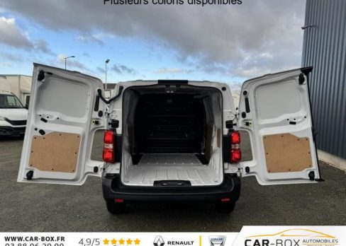 Aide au démarrage en côte, Aide au stationnement arrière, Airbag frontaux conducteur et passager, Anti-patinage (ASR), Baguettes latérales noires teintées masse, Boîtier de connectivité télématique, Boucliers avant et arrière teintés masse, Climatisation manuelle, Cloison tôlée, Combiné numérique LCD noir et blanc, Commandes au volant (audio+régulateur vitesse), Coques de rétroviseurs extérieurs teintées masse, Détection de sous-gonflage des pneumatiques, Enjoliveur(s) de rail de porte latérale coulissante teintés masse, Essuie-glaces avant automatique avec détecteur de pluie et allumage automatique des feux, Kit anticrevaison (compresseur et produit de colmatage), Lève-vitres avant électriques séquentiels, Pack Connectivité + Caméra, Pack Moduwork, Pack Sécurité, Panneaux de garniture de type Isorel en rang 2 et 3, Pare-brise feuilleté et acoustique, Peinture opaque Blanc Icy, Poignées de portes teintés masse, Porte latérale droite coulissante tôlée, Portes battantes arrière tôlées 50/50 à ouverture 180°, Preventive Maintenance (abonnement 4 ans inclus), Prise 12v dans la boîte à gants, Projecteurs halogènes avec feux diurnes intégrés, Radio DAB Bluetooth avec écran tactile 5 monochrome + 4 HP (2 tweeters + 2 woofers) + 1 prise USB-A, Rang 1 : banquette passager 2 places avec appuie-têtes réglables en hauteur et rangement sous assise, Régulateur et limiteur de vitesse, Rétroviseurs extérieurs électriques et dégivrants, Revêtement de sol en TPO dans lhabitacle, Roues tôles peintes grises 16" avec cabochon noir, Sellerie Tissu bi-ton Noir et Gris, Service connecté Pack Connect One (inclus pendant 10 ans), Service connecté Pack Connect Plus (inclus pendant 12 mois), Siège conducteur individuel avec appui-tête réglable en hauteur et avec accoudoir - Réglage longueur, inclinaison, réhausse et lombaire, Système de contrôle de trajectoire (ESP), Antiblocage des roues (ABS) et Assistance au freinage durgence (AFU), Volant réglable en hauteur et en profondeur, 2 plips HF 3 boutons avec fonction selectivité, 6 anneaux darrimage en zone de chargement
