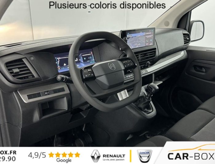 Allumage automatique des feux et des essuie-glaces, Banquette passager 2 places avec fonction Moduwork : : option incluse (valeur : 480 Eur TTC), Citroën Connect Box et Pack SOS, Climatisation manuelle, Cloison de compartiment tôlée, Commutation des feux de route, Jantes en acier 16", Lève-vitres AV électriques, Pack Connectivité + Caméra : : option incluse (valeur : 1 800 Eur TTC), Porte latérale droite coulissante tôlée, Portes arrière doubles 50/50 tôlées, Radars AR, Radio DAB sur écran 10", Reconnaissance panneaux de signalisation, Régulateur / Limiteur de vitesse, Rétroviseurs électrique et dégivrant, Revêtement de sol intérieur en plastique, Système de freinage d'urgence automatique avec alerte de collision avant