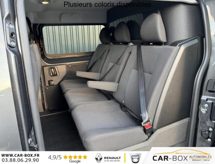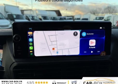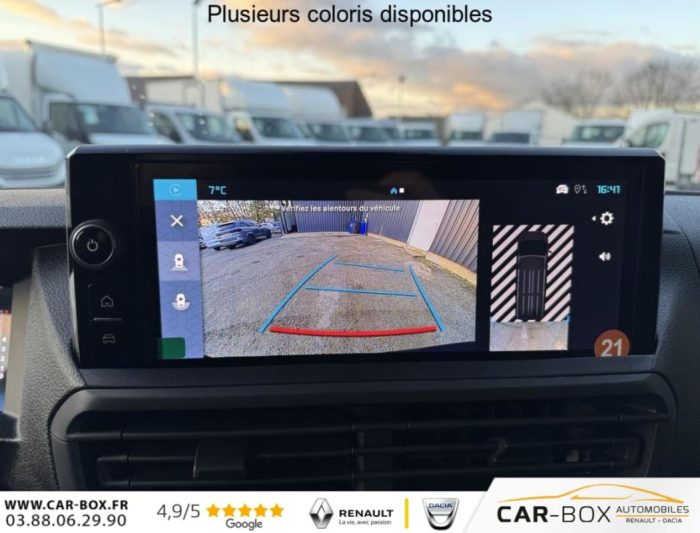 Aide au démarrage en côte, Aide au stationnement arrière, Airbag frontaux conducteur et passager, Airbags latéraux AV thorax, Airbags rideaux, Anti-patinage (ASR), Baguettes latérales noires teintées masse, Banquette fixe 3 places en rang 2 avec appui-tête réglables et 2 accoudoirs, avec coffre de rangement amovible sous assises gauche et centrale et avec zone pour charge longue sous assise droite, Boîtier de connectivité télématique, Boucliers avant et arrière teintés masse, Charge utile majorée, Climatisation manuelle, Cloison pleine PVC avec vitre plexiglass, Combiné numérique LCD noir et blanc, Commandes au volant (audio+régulateur vitesse), Coques de rétroviseurs extérieurs teintées masse, Détection de sous-gonflage des pneumatiques, Enjoliveur(s) de rail de porte latérale coulissante teintés masse, Essuie-glaces avant automatique avec détecteur de pluie et allumage automatique des feux, Garnitures pavillon habitacle en rang 2, ISOFIX & Top Tether au rang 2, Kit anticrevaison (compresseur et produit de colmatage), Lève-vitres avant électriques séquentiels, Pack Connectivité + Caméra, Pack Look extérieur, Pack Sécurité, Panneaux de garniture de type Isorel en rang 2 et 3, Pare-brise feuilleté et acoustique, Peinture opaque Blanc Icy, Poignées de portes teintés masse, Poignée(s) intérieure(s) de porte(s) latérale(s) coulissante(s), Porte latérale coulissante droite vitrée, Porte latérale coulissante gauche, Portes battantes arrière tôlées 50/50 à ouverture 180°, Prédisposition "témoin de non-bouclage R2" (faisceau + afficheur), sans ceintures, Preventive Maintenance (abonnement 4 ans inclus), Prise 12v dans la boîte à gants, Projecteurs halogènes avec feux diurnes intégrés, Radio DAB Bluetooth avec écran tactile 5 monochrome + 4 HP (2 tweeters + 2 woofers) + 1 prise USB-A, Rang 1 : banquette passager 2 places avec appuie-têtes réglables en hauteur et rangement sous assise, Régulateur et limiteur de vitesse, Rétroviseur intérieur prismatique, Rétroviseurs extérieurs électriques et dégivrants, Revêtement de sol Rangs 1 et 2 revêtu TPO, Roues tôles peintes grises 16" avec cabochon noir, Sécurité enfants manuelle, Sellerie Tissu bi-ton Noir et Gris, Service connecté Pack Connect One (inclus pendant 10 ans), Service connecté Pack Connect Plus (inclus pendant 12 mois), Siège conducteur individuel avec appui-tête réglable en hauteur et avec accoudoir - Réglage : longueur, inclinaison, réhausse et rabattable (si 1 PLC) ou lombaire (si 2 PLC), Système de contrôle de trajectoire (ESP), Antiblocage des roues (ABS) et Assistance au freinage durgence (AFU), Vitres latérales fixes surteintées acoustiques en rang 2, Volant réglable en hauteur et en profondeur, 2 plips HF 3 boutons avec fonction selectivité, 6 anneaux darrimage en zone de chargement