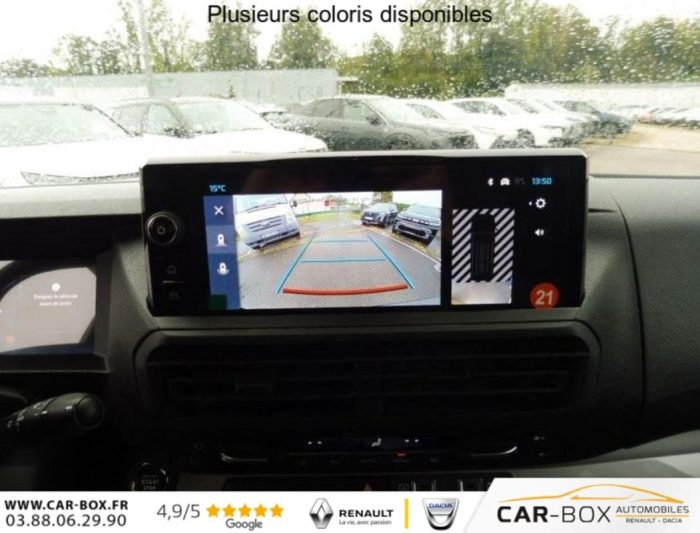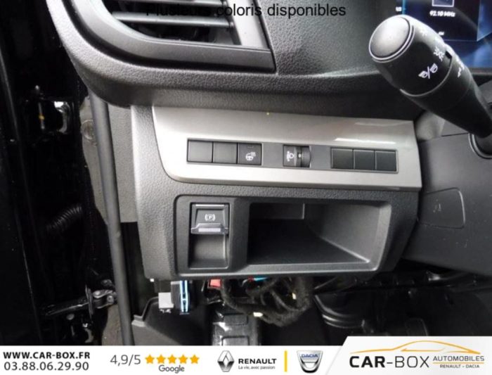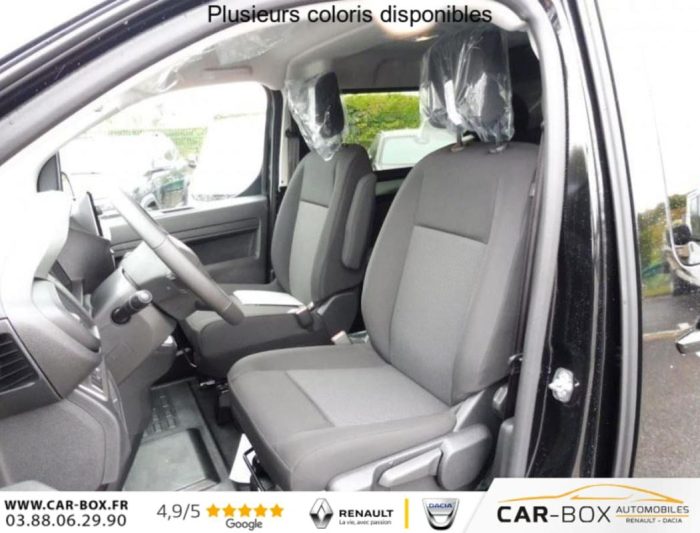 ABS, AFU, ASR et ESP avec aide au démarrage en pente, Aide au stationnement AR, Airbags frontaux conducteur et passager, Airbags latéraux AV tête-thorax en rang 1 et airbags rideau pour tête, Allumage automatique des feux de croisement et des essuie-vitres AV, Anneaux d'arrimage 6 répartis uniformément sur la zone de chargement, Banquette fixe 3 places en rang 2 avec appui-tête réglables et 2 accoudoirs, position unique conforme aux réglementations fiscales pays, avec coffre de rangement amovible sous assises gauche et centrale (accessible depuis habitacle) et avec zone pour charge longue sous assise droite (accessible par la zone de chargement), Boitier télématique appel d'urgence et d'assistance géolocalisés + offres de services connectés), Boucliers, Poignées de portes extérieures, Enjoliveur(s) de rail de porte latérale coulissante Baguettes latérales et Coques de rétroviseurs extérieurs teintés masse, Charge utile majorée, Cloison pleine PVC avec vitre plexiglass, Combiné numérique LCD noir et blanc, Commandes au volant du système audio et du régulateur-limiteur de vitesse, Condamnation centralisée des portes, Contrôle de la pression des pneus, Détection de sous-gonflage indirecte, Direction assistée, Jeu de clefs: 2 plips HF 3 boutons avec fonction selectivité, Lève-vitres AV électriques impulsionnels, Pack Confort - Accès et démarrage mains libres - Climatisation automatique - Frein de stationnement électrique Boîte à gant inférieur fermée et rangement central supérieur fermé, Chargeur sans fil, ,Prise 12V dans la zone de chargement, Projecteurs antibrouillard, Rétroviseurs extérieurs rabattables électriquement : option incluse (valeur : 1 080 Eur TTC), Pack Connectivité - Navigation 3D connectée avec reconnaissance vocale - Ecran tactile 10'' HD - Mirror Screen (compatible avec Android Auto et Apple CarPlay) - Combiné numérique 10'', Prise 12V dans la zone de chargement, Projecteurs antibrouillard et Rétroviseurs extérieurs rabattables électriquement : option incluse (valeur : 1 320 Eur TTC), Pack Look extérieur - Boucliers (bouclier AR demi-peint) - Enjoliveur(s) de rail de porte latérale coulissante et Poignées de portes extérieures couleur caisse - Baguettes latérales et coques de rétroviseurs extérieurs Noir Perla Nera - Jantes tôle noires 17'' avec enjoliveur - Prise 12V dans la zone de chargement, - Projecteurs antibrouillard et Rétroviseurs extérieurs rabattables électriquement : option incluse (valeur : 600 Eur TTC), Pack Sécurité Freinage automatique d'urgence avec alerte risque de collision, Assistance au maintien dans la voie, Commutation automatique des feux de route, Détection inattention conducteur Reconnaissance des panneaux de vitesse et recommandation, Pack 3 Caméras + Rétroviseur numérique - Aide au stationnement AV, AR et latéral + Système de surveillance d'angle mort - Caméra de recul 180° avec affichage sur écran tactile 10'' HD couleur - Système de rétrovision AR et latérale droite par 2 caméras avec affichage sur rétroviseur intérieur numérique - Apple CarPlay et Android auto sans fil - Combiné numérique 10'' HD couleur - Prise 12V dans la zone de chargement - Projecteurs antibrouillard et Rétroviseurs extérieurs rabattables électriquement : option incluse (valeur : 1 440 Eur TTC), Panneaux de garniture de type Isorel en rang 2 et 3, Peinture métallisée : option incluse (valeur : 648 Eur TTC), Porte latérale coulissante droite, Porte latérale gauche coulissante : option incluse (valeur : 480 Eur TTC), Portes AR battantes 50 50 tôlées à ouverture à 180°, Prise 12V (1200 W max) dans la boîte à gants, Projecteurs halogène (H15) avec feux diurnes intégrés, Radio DAB Bluetooth avec écran tactile 5'' monochrome + 4 HP (2 tweeters + 2 woofers) + 1 prise USB-A, Régulateur - limiteur de vitesse, Rétroviseur intérieur prismatique, Rétroviseurs extérieurs électriques et dégivrants, Revêtement de sol TPO en rangs 1 et 2, Roue de secours : option incluse (valeur : 216 Eur TTC), Sellerie Tissu bi-ton noir-gris, Siège conducteur individuel avec appui-tête réglable en hauteur et avec accoudoir Réglage : longueur, inclinaison et réhausse, Sièges Passager individuel avec appui-tête réglable en hauteur et avec accoudoir Réglage : longueur, inclinaison, Vitres latérales fixes surteintées acoustiques en rang 2, Volant réglable en hauteur et en profondeur