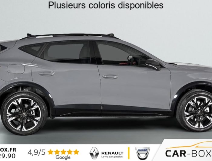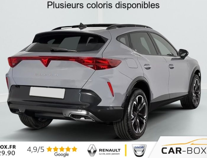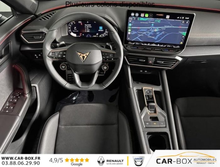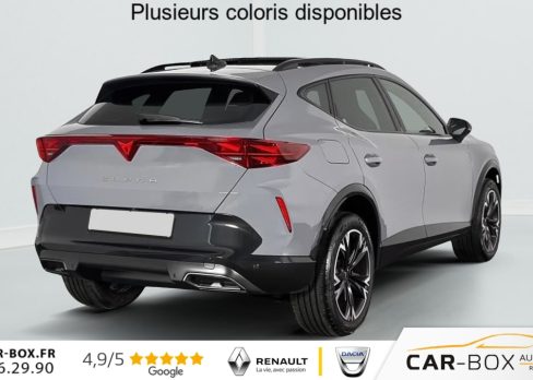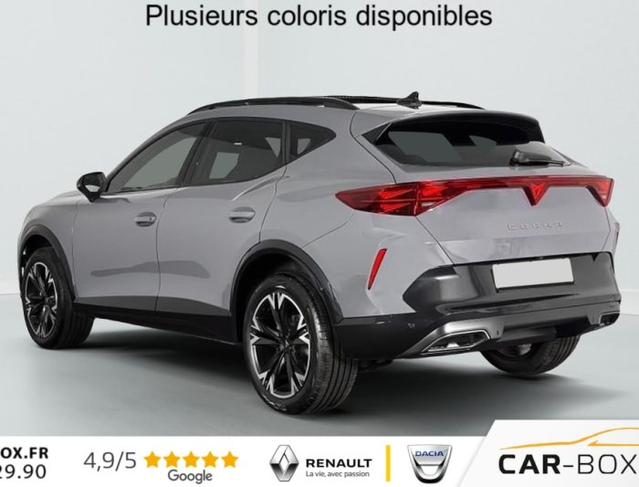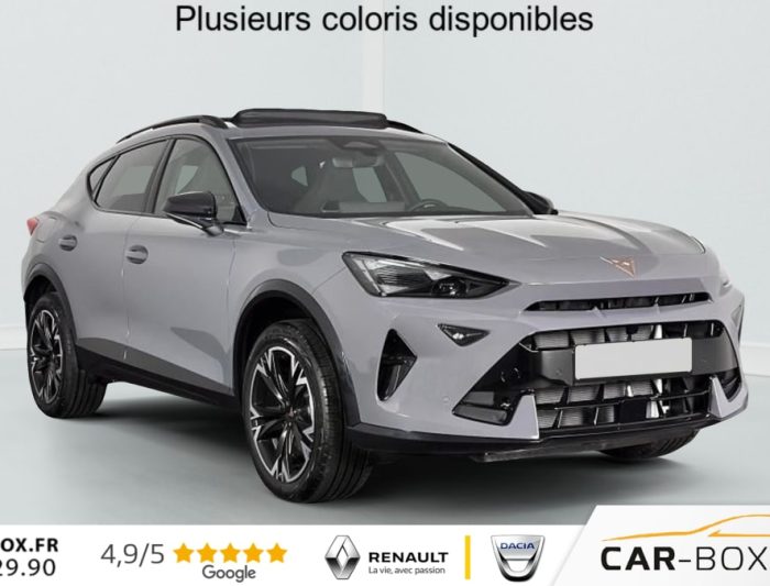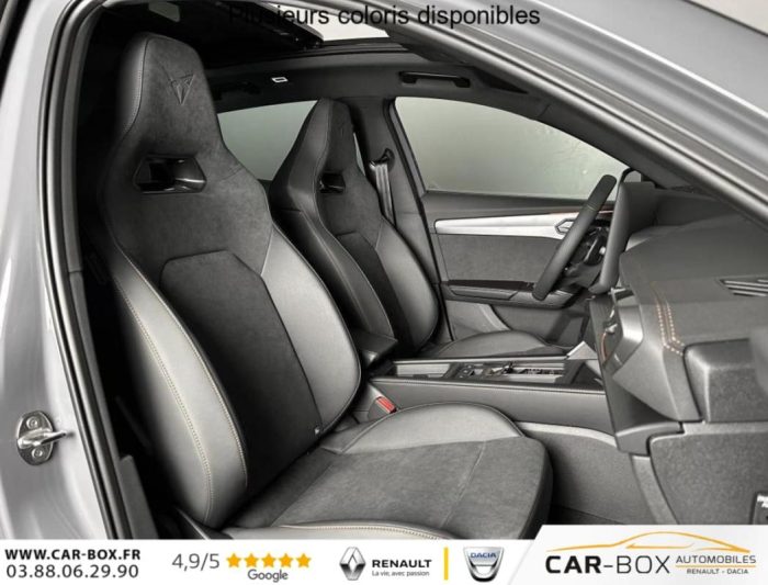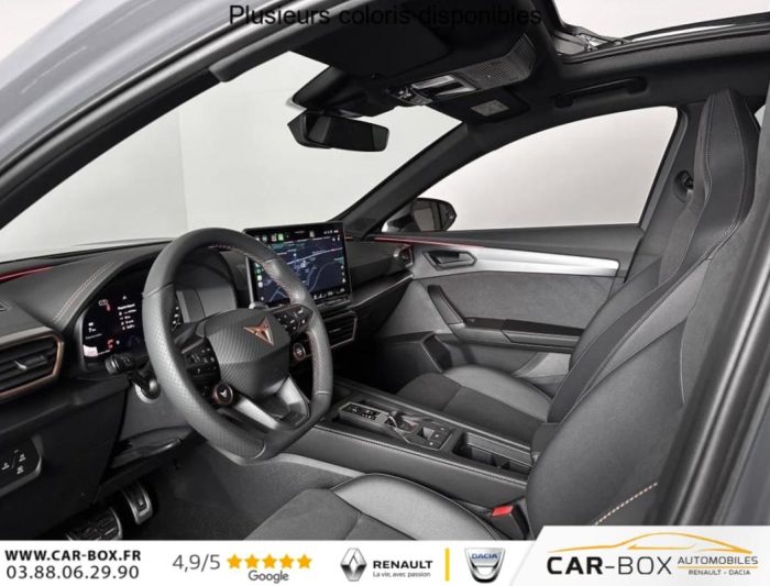 Hors frais de dossier2.0 TDI 150 ch DSG7 V, diesel, gris, 18/12/2025, Climatisation automatique tri-zone, Digital Cockpit 10, 25, Jantes alliage 18, Jantes en alliage 18, Roue de secours compacte 18, Système d’info-divertissement avec écran tactile HD 12, 9, Hayon électrique mains-libres »Virtual Pedal », Capteur de pluie et de luminosité, Vitres AR surteintées, Seuils de porte CUPRA rétro-éclairés, Ciel de pavillon Noir, Radio numérique DAB, Lane Assist Plus, Extension de garantie 1an / 30 000 km : option incluse (valeur : 328 Eur TTC), Caméra de recul, CUPRA Box, Toit ouvrant panoramique : option incluse (valeur : 1 150 Eur TTC), Pare-soleils avec miroirs de courtoisie éclairés, eCall – appel d’urgence, Fixations ISOFIX avec Top-Tether à l’AR, Direction dynamique, Aide au stationnement AV/AR, Rétroviseur intérieur électrochrome, Airbags latéraux, rideaux et central, Double sortie d’échappement Noire stylisée, Régulateur de vitesse adaptatif ACC, Smart Ambient Light (éclairage d’ambiance intérieur intelligent), Accès et démarrage mains-libres, CUPRA Connect, Kit de sécurité CUPRA, Front Assist avec détection des piétons et des cyclistes, Sign Assist – reconnaissance des panneaux de signalisation, Entourage de vitres et rails de toit Noir Piano, Peinture métallisée : option incluse (valeur : 800 Eur TTC), Peinture vernie, Full Link sans fil ( Android Auto + Apple CarPlay), Lampes de lecture LED à l’AV et à l’AR, Feux de route intelligents (Light Assist), Connectivité 4x USB-C et Bluetooth, Projecteurs full LED avec signature lumineuseTri-LED, Détection de fatigue et somnolence, Bandeau AR »Infinite Light » intégrant le logo CUPRA lumineux, avec signature lumineuse Tri-LED et cérémonie de bienvenue, Volant Supersports CUPRA en cuir avec boutons satellites, chauffant, avec palettes de changement de rapport, Système audio à 6 HP avec contrôle vocal, Pack Intérieur Dark Alu avec inserts cuivrés, Couleur contrastante Noir Obsidien (bas de caisses, entrées d’air AV, diffuseur, élargisseurs d’ailes et coques de rétroviseurs), Design intérieur Pure – Sièges sports bimatière textile et TEP Noir Asphalte – Planche de bord noire surpiquée avec inserts Dark Alu – Contre-portes en TEP noir surpiqués – Sièges conducteur et passager avec réglage manuel en hauteur et lombaire, Aide au maintien dans la voie (Lane Assist), Dossiers AR rabattables 2/3 – 1/3 et trappe à skis, Eclairage de bienvenue avec projection du logo CUPRA au sol et éclairage d’accompagnement, Projecteurs anti-brouillard triangulaires avec éclairage d’intersection, Connectivity Box – Amplification du signal et chargeur à induction, ABS, Boîte de vitesse séquentielle, Système de contrôle de la pression des pneus, Verrouillage centralisée, Vitres électriques AV, Contrôle de la traction (TCS), Accoudoir central AV réglable en hauteur et profondeur, Assistant d’intersection (Cross Traffic Assist)