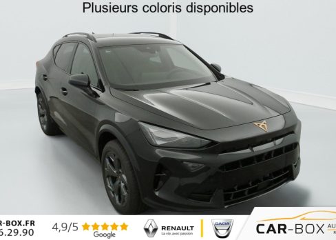 Accès et démarrage mains-libres, Aide au maintien dans la voie (Lane Assist), Aide au stationnement avant et arrière avec Caméra de recul, Bandeau arrière "Infinite Light" intégrant le logo CUPRA lumineux, avec signature lumineuse Tri-LED, Capteur de pluie et de luminosité, Climatisation automatique tri-zone « Climatronic », Connectivity Box avec chargeur à induction, Couleur contrastante Noir Obsidien, Digital Cockpit 10,25", Double-sortie d'échappement noire stylisée (version thermique), eCall - appel d'urgence, Éclairage de bienvenue avec projection du logo CUPRA au sol, Feux de route intelligents (Light Assist), Front Assist avec détetion de piétons et cyclistes, Full Link sans fil (Apple CarPlay® et Android Auto®), Hayon électrique mains-libres, Jantes 18" Tempest, Pack intérieur Dark Alu avec inserts cuivrés, Peinture métallisée : : option incluse (valeur : 760 Eur TTC), Projecteurs anti-brouillard triangulaires avec éclairage d'intersection, Projecteurs Full LED avec signature lumineuse Tri-LED, Rails de toit et entourages de vitres Noir Piano, Reconnaissance des panneux de signalisation (Sign Assist), Régulateur de vitesse adaptatif ACC, Rétroviseur intérieur électrochrome, Seuils de porte CUPRA rétro-éclairés, Smart Ambient Light - éclairage d'ambiance intérieur intelligent, Système d'info-divertissement avec écran tactile HD 12,9" (avec Radio DAB), Vitres arrière surteintées, Volant Supersports CUPRA en cuir avec boutons satellites, chauffant, avec palettes
