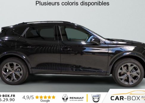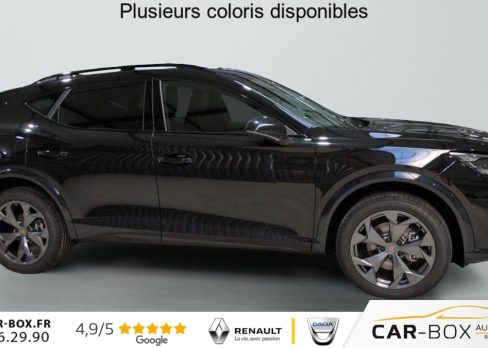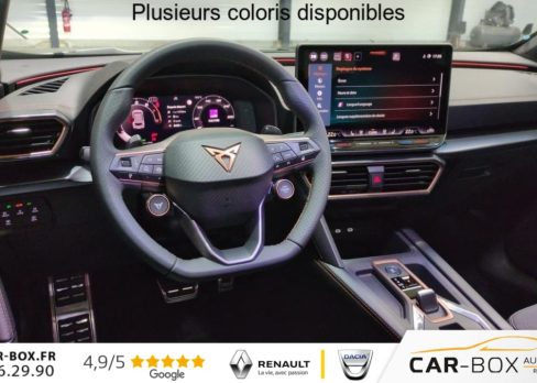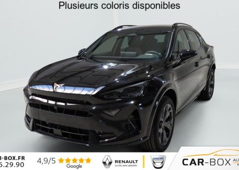 NOUVEAU 1.5 eTSI Hybrid 150 ch DSG7 V, essence, noir, 07/08/2025, ABS, Accès et démarrage mains-libres, Accoudoir central AV réglable en hauteur et profondeur, Aide au maintien dans la voie (Lane Assist), Aide au stationnement AV et AR, Airbags latéreaux, rideaux et central, Alarme antivol, Assistant d’intersection (Cross Traffic Assist), Bandeau AR  »Infinite Light » intégrant le logo CUPRA lumineux avec signature lumineuse Tri-LED et cérémonie de bienvenue, Boîte de vitesse séquentielle, Caméra de recul, Capteur de pluie et de luminosité, Ciel de pavillon Noir, Climatisation automatique tri-zone "Climatronic", Connectivité 4x USB-C et Bluetooth, Connectivity Box – Amplification du signal et chargeur à induction, Contrôle de la traction (TCS), Contrôle électronique de la trajectoire, Couleur contrastante Noir Obsidien (bas de caisses, entrées d’air AV, diffuseur, élargisseurs d’ailes et coques de rétroviseurs), CUPRA Box, CUPRA Connect, Design intérieur Pure – Sièges sports bimatière textile et TEP Noir Asphalte – Planche de bord noire surpiquée avec inserts Dark Alu – Contre-portes en TEP noir surpiqués – Sièges conducteur et passager avec réglage manuel en hauteur et lombaire, Détection de fatigue et somnolence, Digital Cockpit 10, 25 », Direction dynamique, Dossiers AR rabattables 2/3 – 1/3 et trappe à skis, Double sortie d’échappement Noire stylisée, eCall – appel d’urgence, Eclairage de bienvenue avec projection du logo CUPRA au sol et éclairage d’accompagnement, Entourage de vitres et rails de toit Noir Piano, Extension de garantie 3 ans / 100 000 km, Feux de route intelligents (Light Assist), Fixations ISOFIX avec Top-Tether à l’AR, Front Assist avec détection des piétons et des cyclistes, Full Link sans fil ( Android Auto + Apple CarPlay), Hayon électrique mains-libres  »Virtual Pedal », Jantes alliage 18" Tempest, Kit de sécurité CUPRA, Lampes de lecture LED à l’AV et à l’AR, Lane Assist Plus, Pack Intérieur Dark Alu avec inserts cuivrés, Pare-soleils avec miroirs de courtoisie éclairés, Peinture métallisée Noir Minuit, Pré-installation pour attelage, Projecteurs anti-brouillard triangulaires avec éclairage d’intersection, Projecteurs full LED avec signature lumineuseTri-LED, Radio numérique DAB, Régulateur de vitesse adaptatif ACC, Rétroviseur intérieur électrochrome, Rétroviseurs extérieurs électriques, dégivrants, et rabbattales électriquement, Seuils de porte CUPRA rétro-éclairés, Sièges avant chauffants, Sign Assist – reconnaissance des panneaux de signalisation, Smart Ambient Light (éclairage d’ambiance intérieur intelligent), Système audio à 6 HP avec contrôle vocal, Système de contrôle de la pression des pneus, Système d’info-divertissement avec écran tactile HD 12, 9 » et touches de commandes tactiles rétro-éclairées, Verrouillage centralisée, Vitres AR surteintées, Vitres électriques AV, Volant Supersports CUPRA en cuir avec boutons satellites, chauffant avec palettes de changement de rapport, Peinture métallisée : option incluse (valeur : 760 Eur TTC)