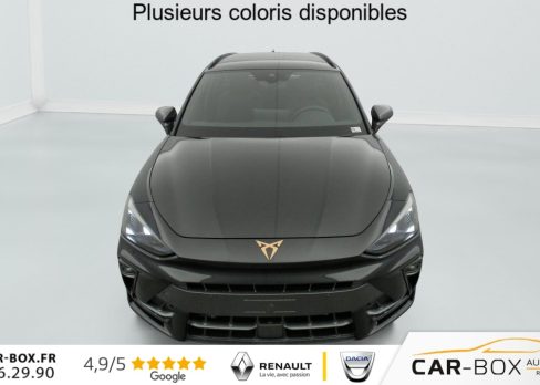 Pack "Hiver" : Sièges AV chauffants : option incluse (valeur : 395 Eur TTC), Système d'alarme antivol, dispositif de surveillance de l'habitacle, Back-up- Horn et protection antiremorquage, Hayon électrique mains-libres ''Virtual Pedal'', Capteur de pluie et de luminosité, Vitres AR surteintées, Seuils de porte CUPRA rétro-éclairés, Lane Assist - aide au maintien dans la voie, Ciel de pavillon Noir, Radio numérique DAB, Pré-installation pour attelage : option incluse (valeur : 190 Eur TTC), Caméra de recul, Pare-soleils avec miroirs de courtoisie éclairés, eCall - appel d'urgence, Fixations ISOFIX avec Top-Tether à l'AR, Direction dynamique, Climatisation automatique tri-zone "Climatronic", Aide au stationnement AV et AR, Rétroviseur intérieur électrochrome, Airbags latéreaux, rideaux et central, Double sortie d'échappement Noire stylisée, Régulateur de vitesse adaptatif ACC, Smart Ambient Light (éclairage d'ambiance intérieur intelligent), Accès et démarrage mains-libres, CUPRA Connect, Front Assist avec détection des piétons et des cyclistes, Sign Assist - reconnaissance des panneaux de signalisation, Digital Cockpit 10,25'', Entourage de vitres et rails de toit Noir Piano, Peinture métallisée : option incluse (valeur : 760 Eur TTC), Full Link sans fil ( Android Auto + Apple CarPlay), Lampes de lecture LED à l'AV et à l'AR, Feux de route intelligents (Light Assist), Connectivité 4x USB-C et Bluetooth, Projecteurs full LED avec signature lumineuseTri-LED, Accoudoir central AV, Jantes alliage 18" Tempest, Détection de fatigue et somnolence, Bandeau AR ''Infinite Light'' intégrant le logo CUPRA lumineux avec signature lumineuse Tri-LED et cérémonie de bienvenue, Volant Supersports CUPRA en cuir avec boutons satellites, chauffant avec palettes de changement de rapport, Système audio à 6 HP avec contrôle vocal, Pack Intérieur Dark Alu avec inserts cuivrés, Couleur contrastante Noir Obsidien (bas de caisses, entrées d'air AV, diffuseur, élargisseurs d'ailes et coques de rétroviseurs), Système d'info-divertissement avec écran tactile HD 12,9'' et touches de commandes tactiles rétro-éclairées, Design intérieur Pure - Sièges sports bimatière textile et TEP Noir Asphalte - Planche de bord noire surpiquée avec inserts Dark Alu - Contre-portes en TEP noir surpiqués - Sièges conducteur et passager avec réglage manuel en hauteur et lombaire, Dossiers AR rabattables 2/3 - 1/3 , Eclairage de bienvenue avec projection du logo CUPRA au sol et éclairage d'accompagnement, Projecteurs anti-brouillard triangulaires avec éclairage d'intersection, Connectivity Box - Amplification du signal et chargeur à induction